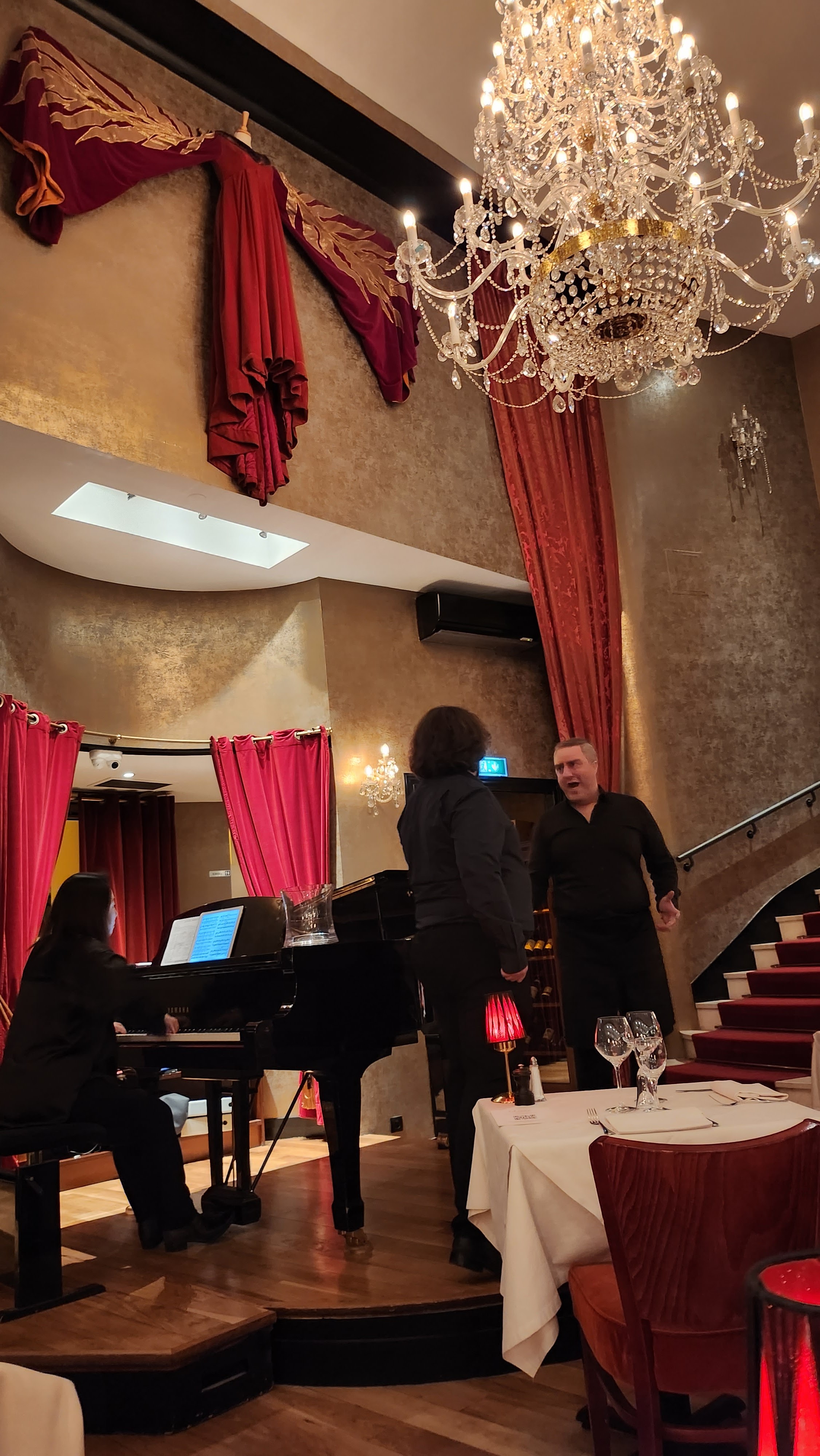 Moment exeptionnel ou le mariage bel canto et le restaurant- atmosphere theatre vous emporte jusqu'à la dernière chanson...surprise, les serveuses et serveurs sont aussi les artistes ! Soirée inoubliable Francis