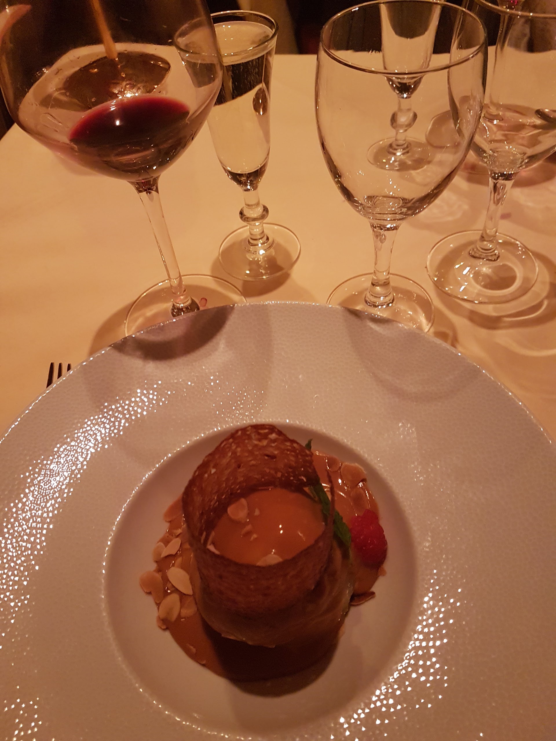 cadre excellent (ancien théâtre), personnel chaleureux, repas maîtrisé, sans surprise mais bon et bien présenté. Légèrement cher mais c'est une expérience unique (quoique nous y sommes allés 3 fois).