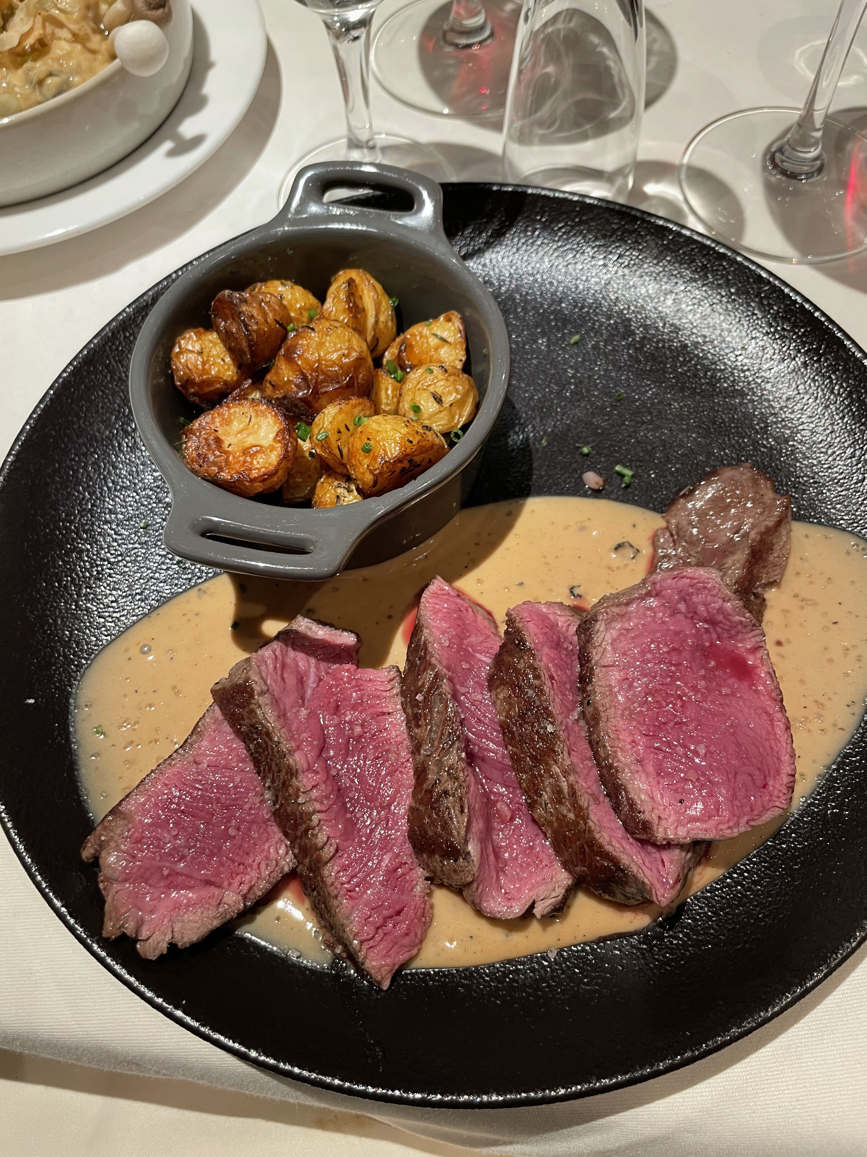 Une soirée exceptionnelle. Que dire de ce restaurant si ce n'est qu'il est superbe, une proposition de plats raffinés et bien cuisinés, les chansons lyriques en live accompagnées au piano, un salle spacieuse et superbe, tout comme la ravissante cantatrice... seul petit bémol, les allers-retours en cuisine des serveurs avec une porte qui n'a fait que grincer, dommage, mais pas non plus de quoi gacher une si belle soirée.Je recommande vivement.