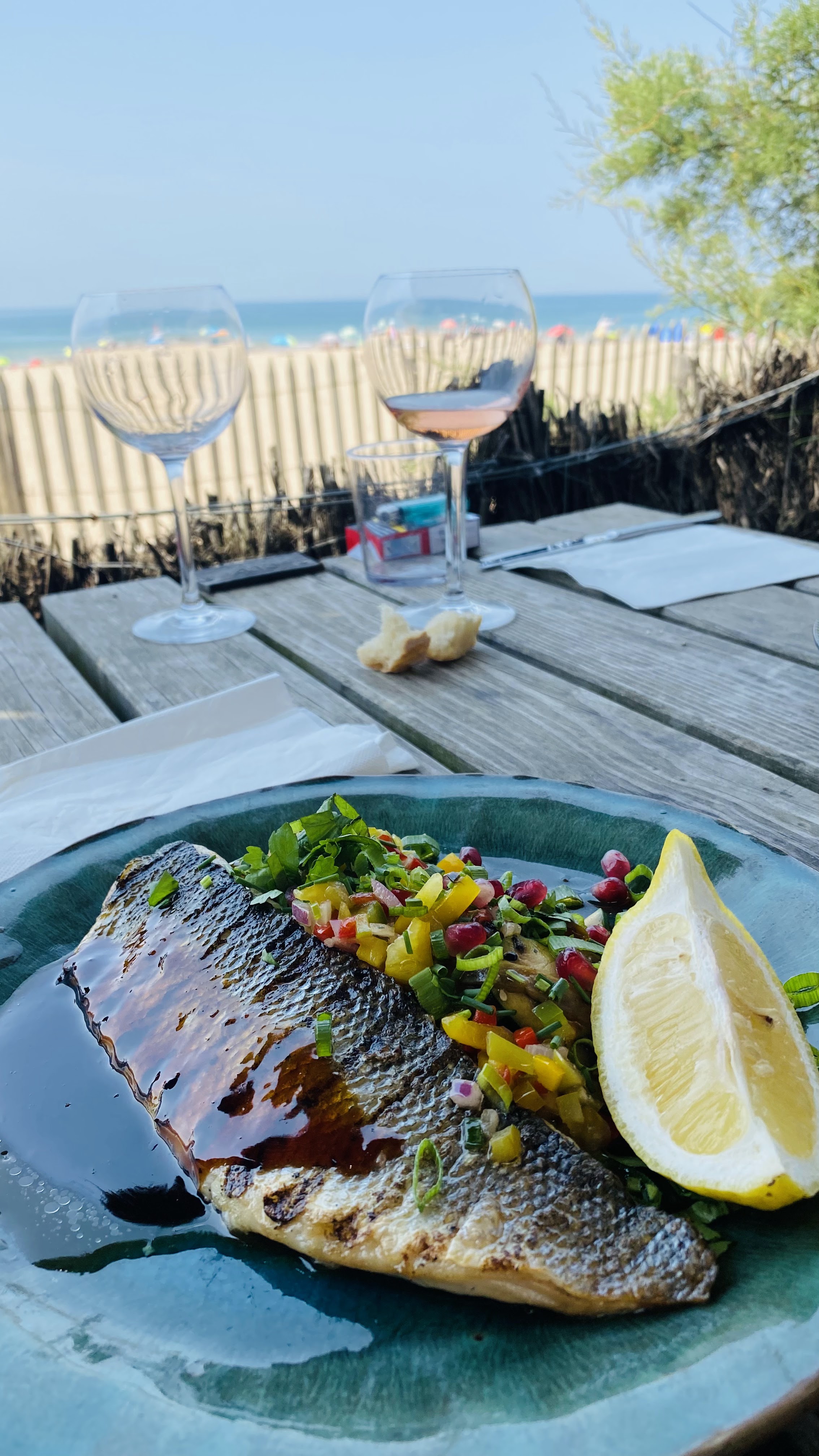 Cadre magnifique avec pieds dans le sable et superbe vue. Équipe et gérant accueillants. Néanmoins, il y a des bémols et points négatifs. Mon assiette de tartare de thon que mon compagnon a commandé n’était probablement pas fraîche. En effet, il a été malade deux heures après le repas avec brûlures d’estomac, vomissements, etc… Prix assez onéreux par ailleurs.