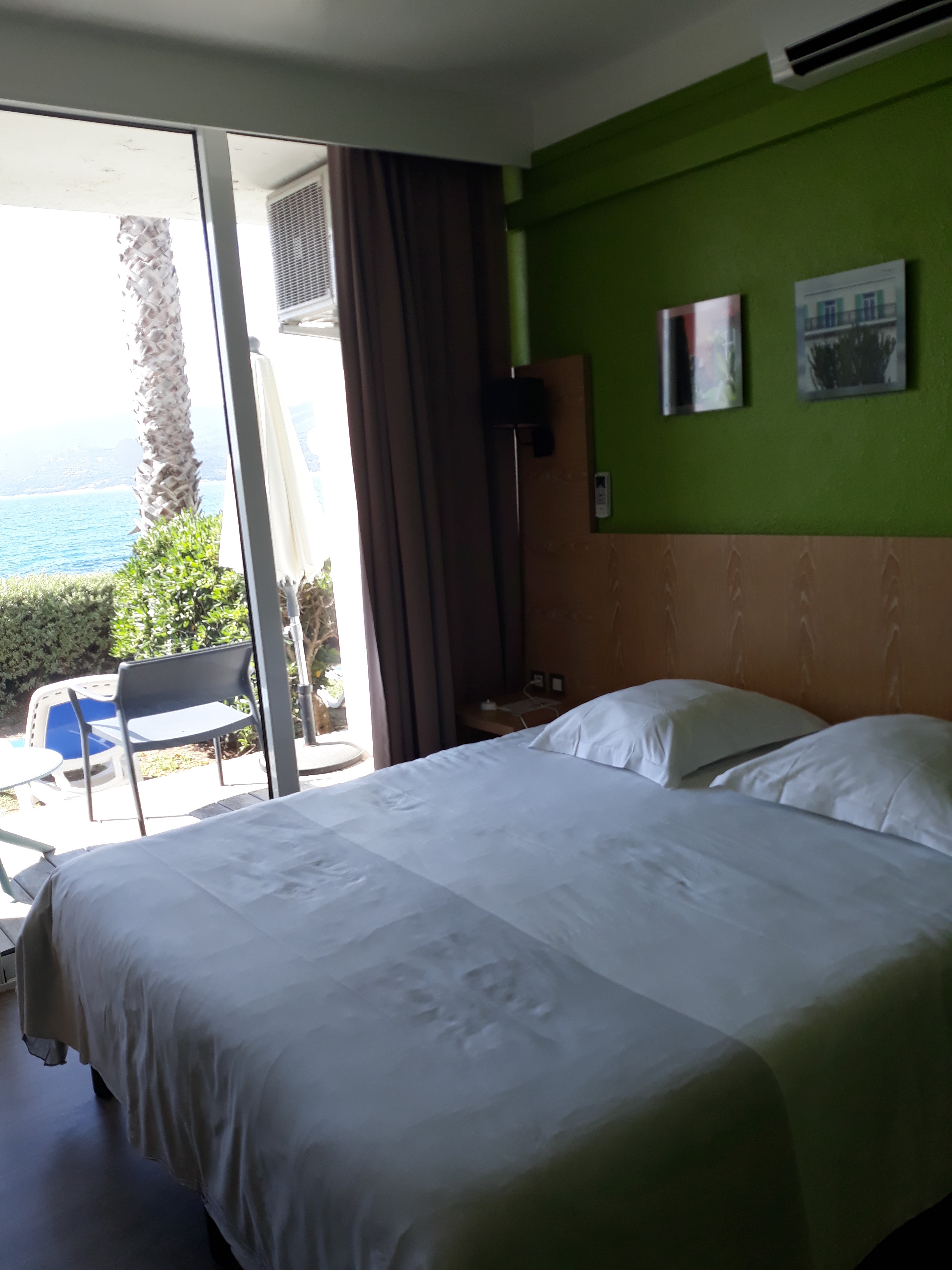 Que dire de la vue de l'hôtel ! Juste exceptionnelle !!! On en a pris plein la vue ! Situé vraiment en bord de mer (5m de l'eau) Nous avions pris une chambre avec vu imprenable et sincèrement on ne s'attendait pas à ce que ce soit aussi magnifique ! Le couché de soleil depuis la chambre avec la mer et les montagnes en paysage c'était magique. La chambre est très spacieuse, nous étions ma femme un enfant de 4ans, un bébé et moi même et c'est largement suffisant. Le personnel de l'hôtel est au petit soin, rien à dire. Le ménage était fait tous les jours et bien fait. Idéalement situé pour visiter la Corse du Sud. Séjour parfait ! On reviendra c'est sur!