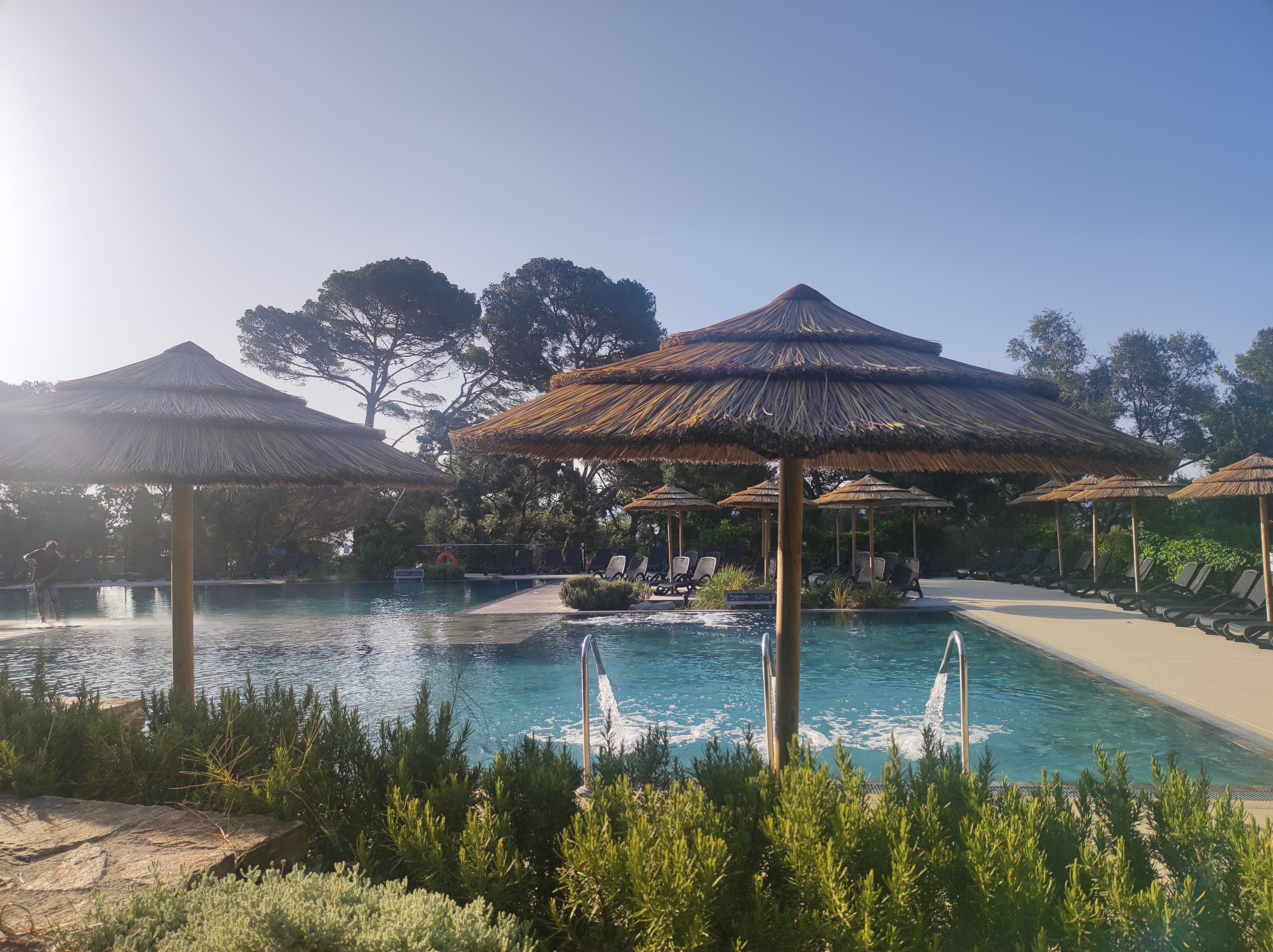 Cadre agréable mais complexe très vaste et beaucoup de marche à prévoir pour tout (accès aux criques, réception, restaurant, tout est loin). Les criques sont petites et sauvages donc baignades pas toujours agréables (galets, algues et rochers), il faut prévoir des sandales. Une piscine manque cruellement. La restauration est tout à fait médiocre sauf le petit déjeuner qui est très correct. La salle de restauration est bruyante mais la salle climatisée au fond entourée de pins est agréable. Les animateurs sont sympas. Côté hébergement nous avions une chambre quadruple avec 2 chambres séparées dont la taille est très correcte. Par contre la 2ème chambre n’a pas de climatisation donc hyper chaud malgré le petit ventilateur mis à disposition. En résumé : très cher pour des prestations très moyennes.
