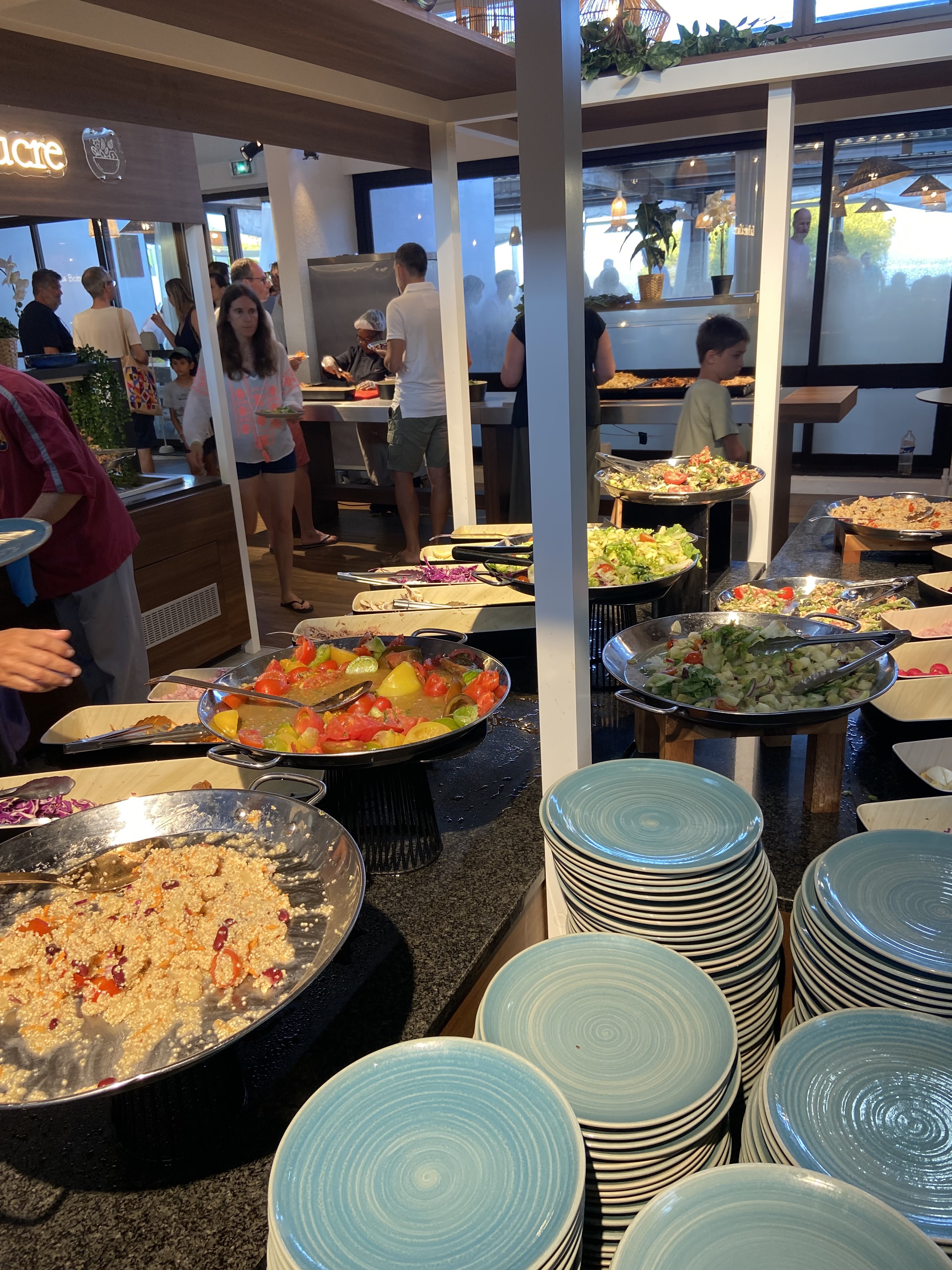 Très bel emplacement, facile d'accès. le check in à 17h est une catastrophe - énormément d'attente. les infos données à ce moment sont brèves et cordiales. la chambre familiale (2 adultes - 2 enfants) étaient correctes. nous avons apprécié les 2 balcons. Bémol sur la clim qui n'est pas générale à tout le logement : nous étions dans la chambre qui n'était pas équipée de clim et avons souffert de la chaleur chaque nuit. le buffet à volonté était très bien : dommage qu'il n'y ai pas un peu plus de personnel au atelier proposé : exemple Atelier Espadon en découpe devant le client magnifique , le moins : une seule plancha pour cuire les pièces découpées... dommage. les animateurs sont tous très sympathiques. ambiance vacances sans excès le club enfant très bien - le moins : manque d'échanges avec les parents, même si des panneaux d'informations indique le programme général de la semaine. En arrivant sur le point de rencontre , un après midi qui était à la plage, personne ne s'est manifesté pour nous accueillir.... je peux comprendre que d'avoir une quinzaine d'enfant depuis le matin et n'être que 2 ce n'est pas évident de voir arriver d'autres tête blonde l'après midi.... le club Ado géniale La piscine magnifique, les transats bien prisés mais on arrive à se faire une place. Beaucoup d'attente pour obtenir son apéritif ou cocktail du soir. Manque de personnel pour ma part. Lieu magnifique. je recommande malgré les points cités à améliorer