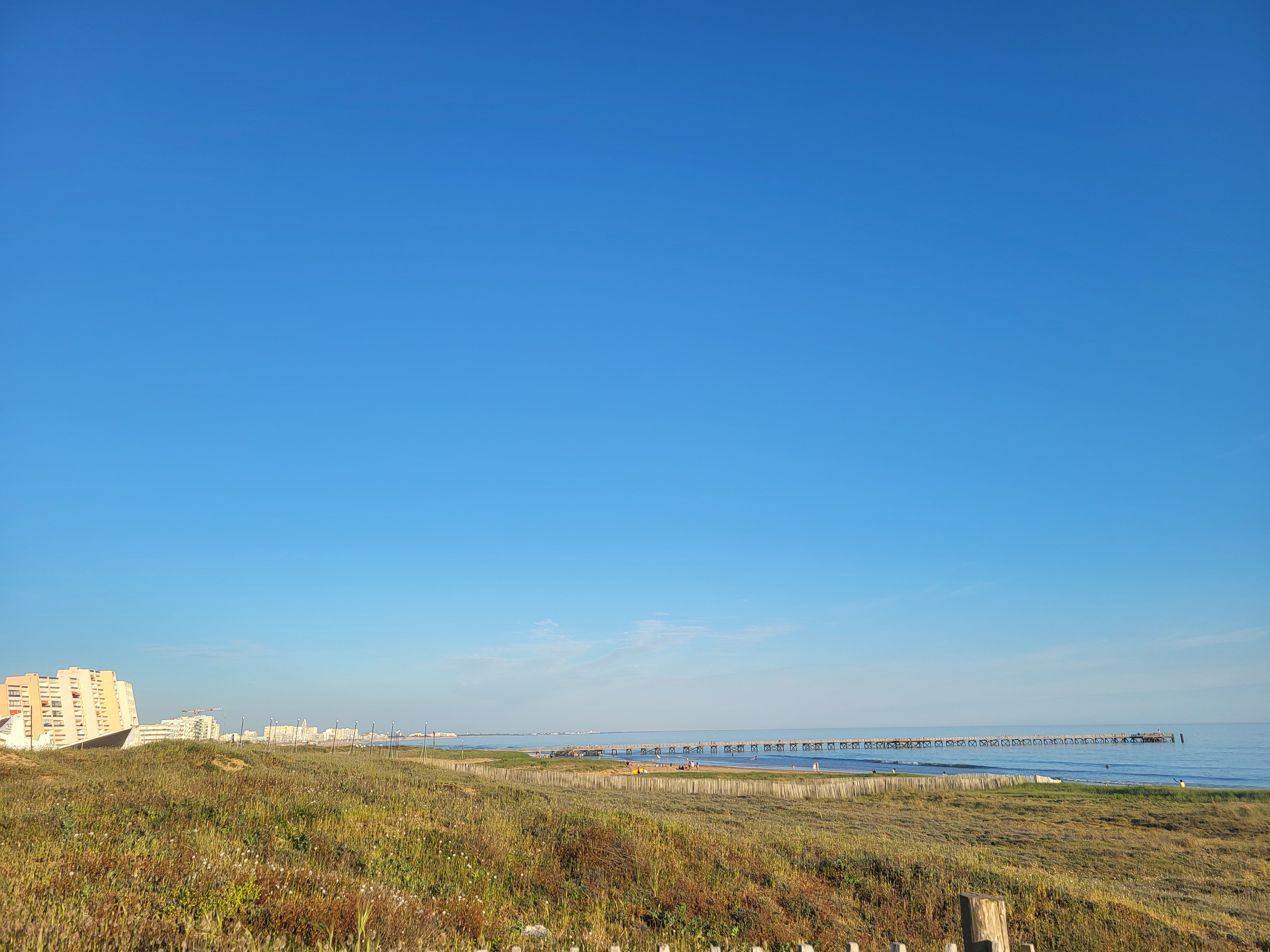 Le lieu est beau, le personnel sympathique, les locaux propres, les animations nombreuses. La note est basse car les logements sont conçus a l'économie, comme souvent dans ces résidences : pas de place (nous sommes pourtant 4 dans un logement pour 5), salles d'eau minuscules (mais il y en a deux, une pour chaque chambre), lave-mains ridicules, lave-vaisselle bas de gamme ultra bruyant. La ville est une station balnéaire avec ses glaciers et ses restaurants, quelques maisons typiques mais pas mal d'immeubles classiques du bord de mer. Même le poisson est a prix touristique dans les supermarchés. Heureusement, la plage de sable fin est immense, propre, on ne marche pas sur ses voisins, le rivage descend en pente douce dans l'océan, et c'est pour ça qu'on vient.