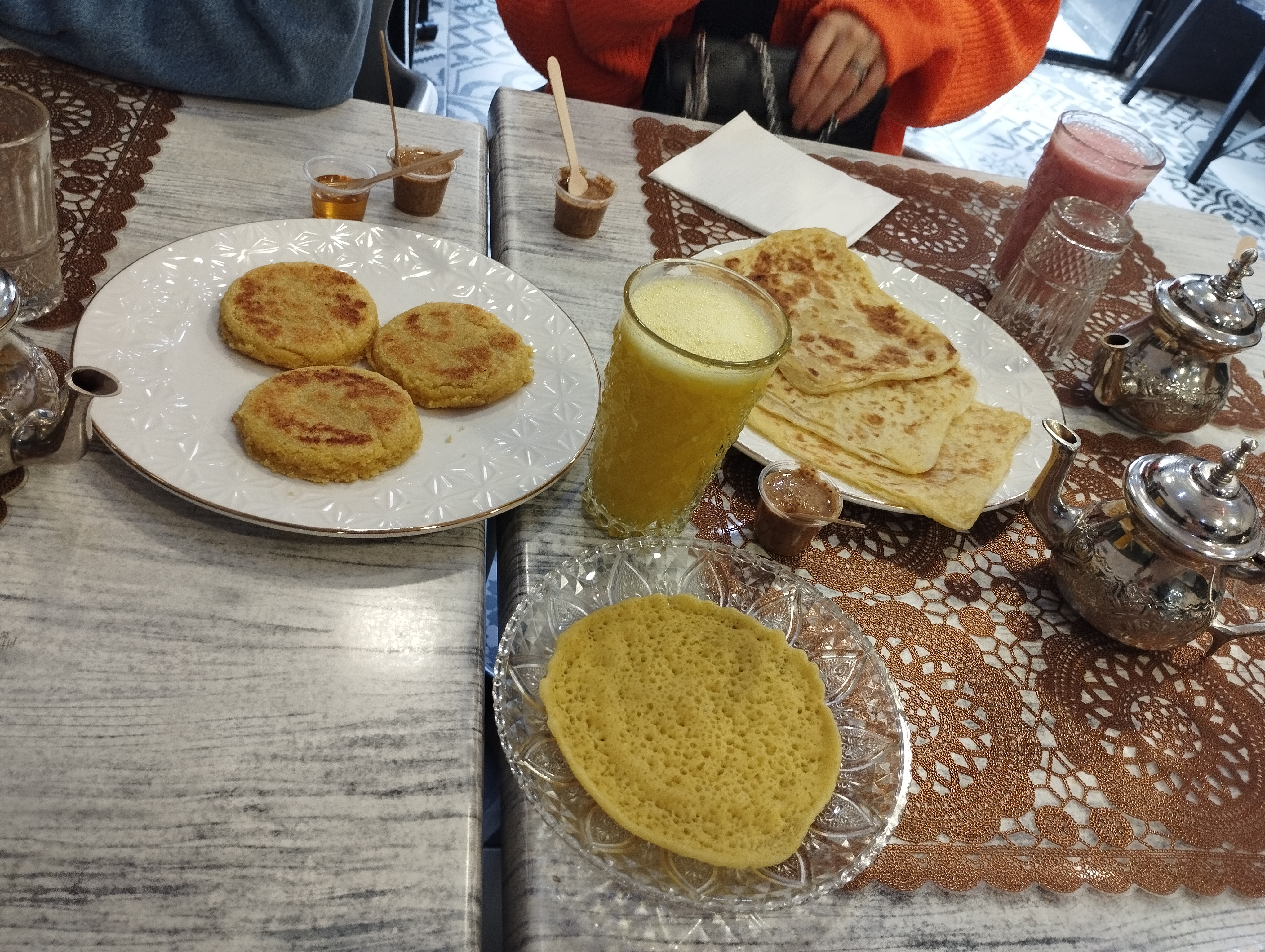 J'ai bien aimé les œufs et le jus, et la petite galette semoule, le msemen trop élastique et baghrir était complètement froid et le thé faible en goût . Peut mieux faire. Sinon l'accueil très bien mais petite salle.