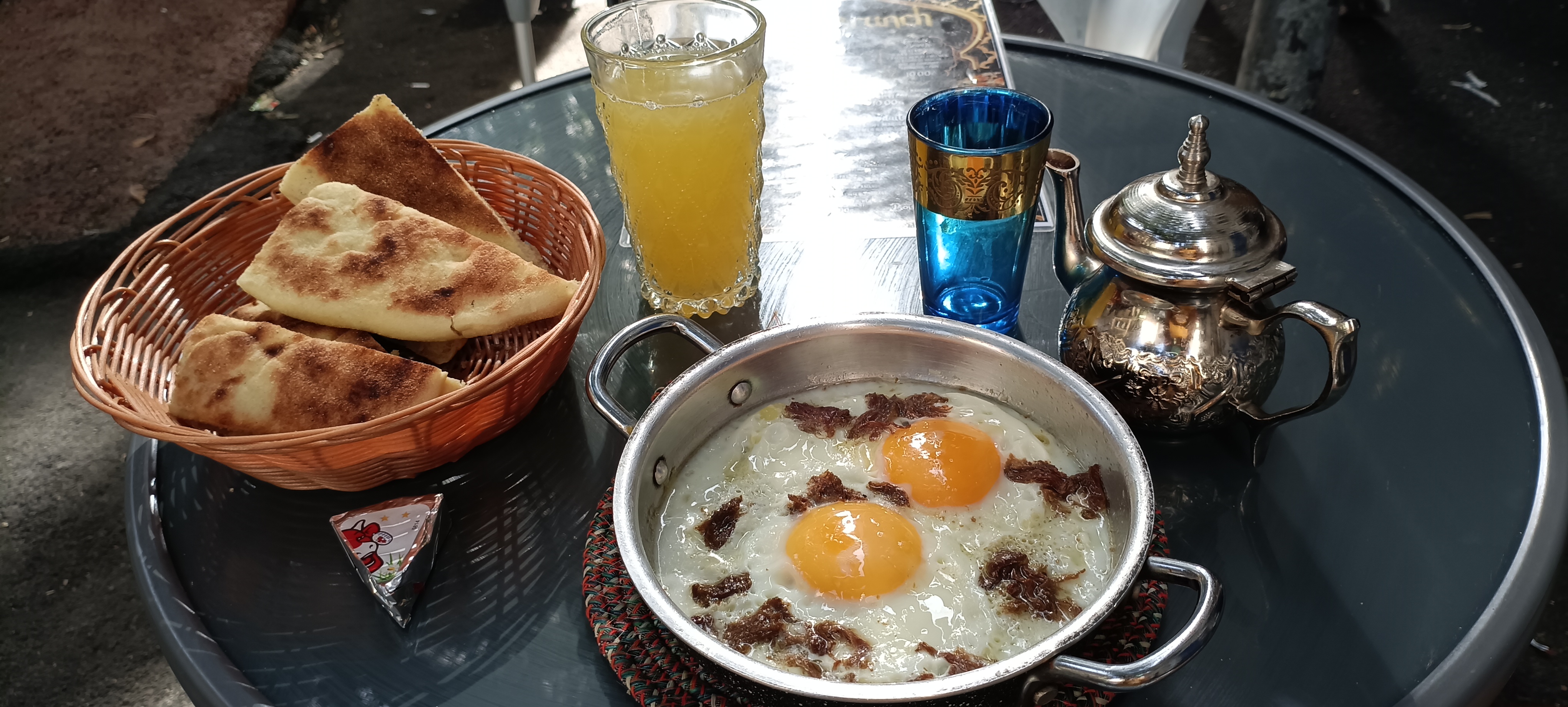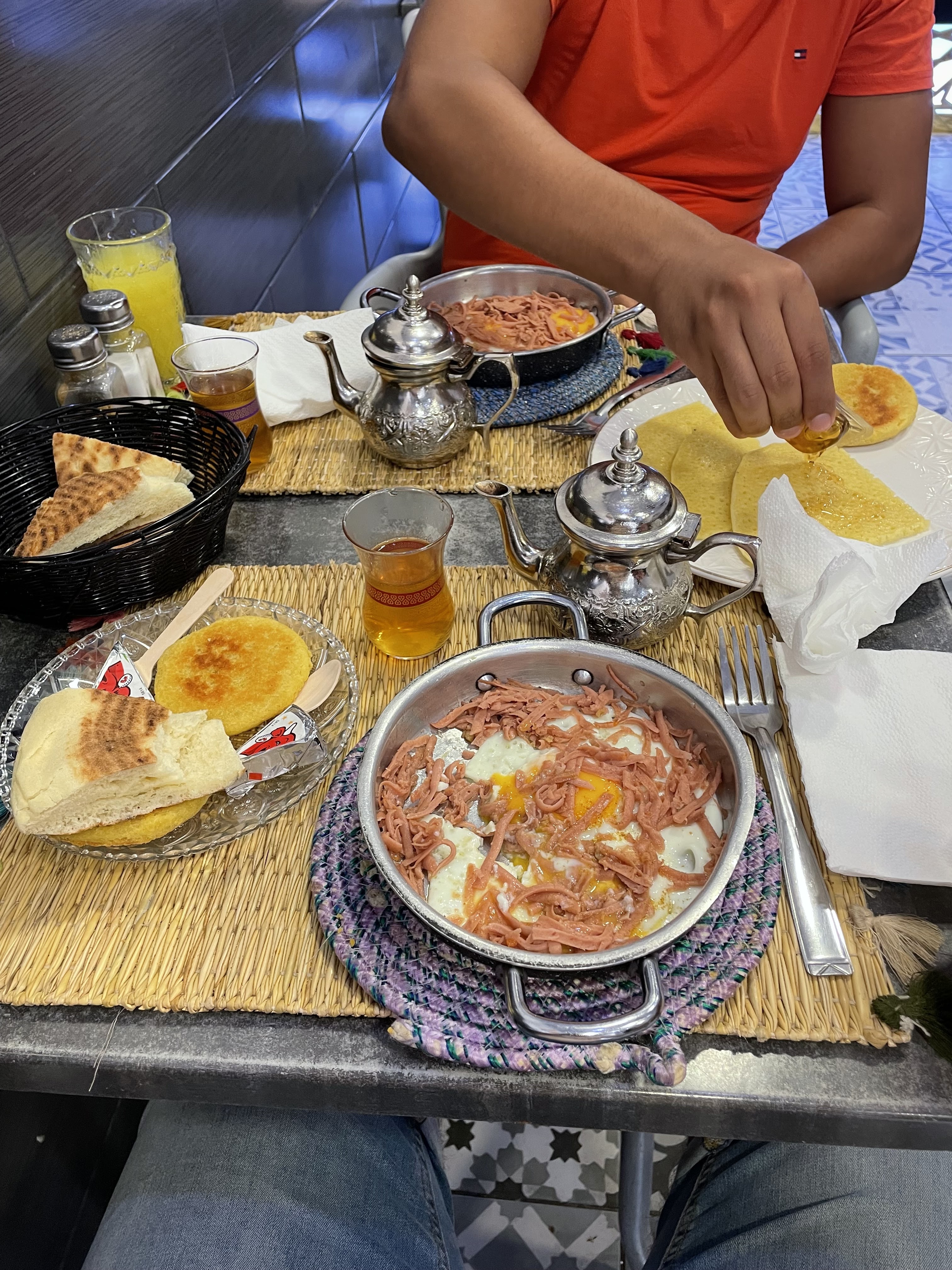 Petit déjeuner marocain traditionnel délicieux, frais et fait maison service au petit soin. Allez y les yeux fermés !!!