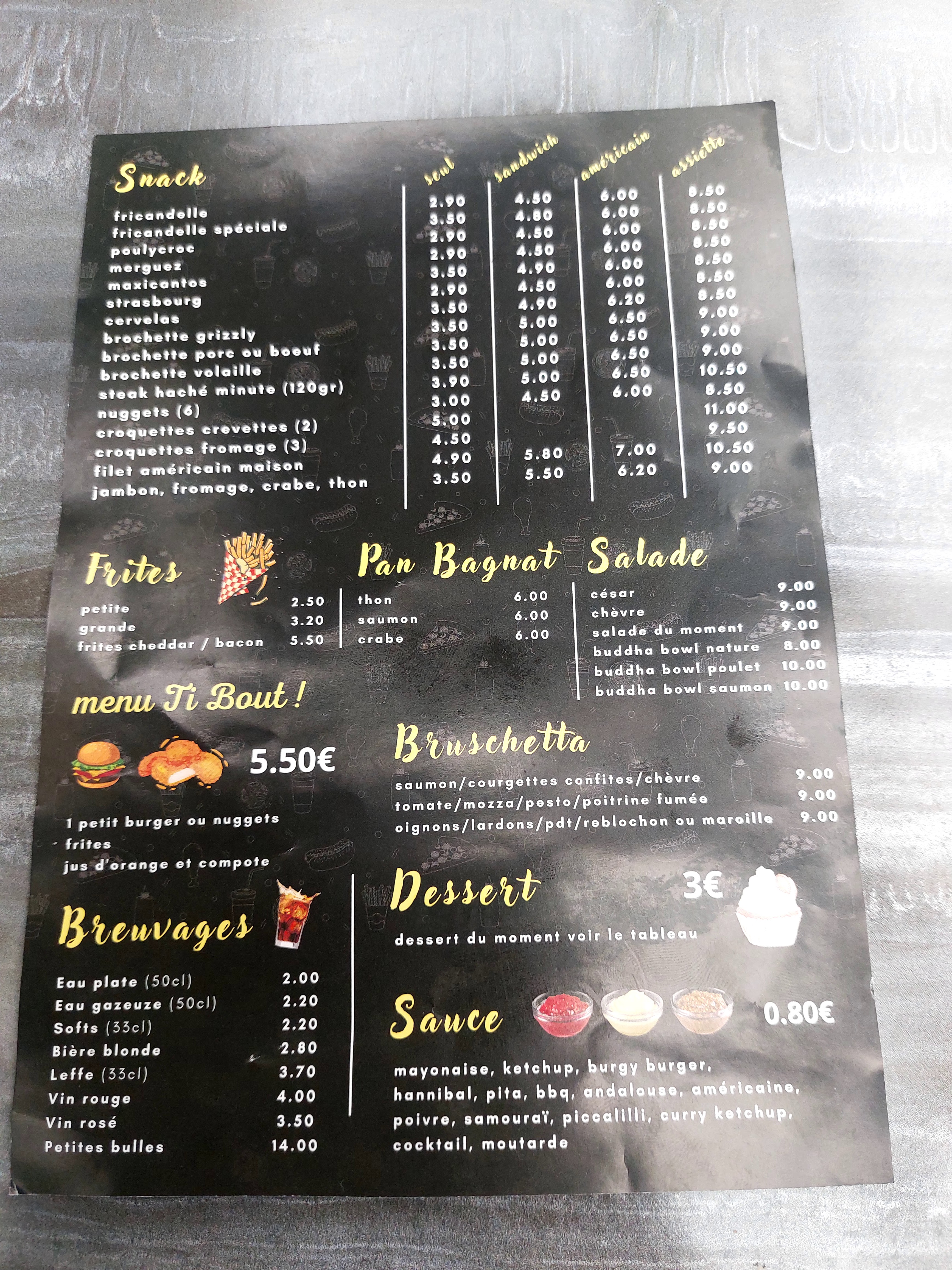 Patron très sympathique. Les sandwichs et Burgers sont délicieux., viande de qualité, oignons maison ! Service rapide, cuisson de la viande à la demande. Petit bémol : - 1 fois sur 2 les frites ne sont pas assez cuites !!! - devoir subir les humeurs de la patronne … on peut comprendre la fatigue après une journée de travail mais cela n’oblige pas à être désagréable.