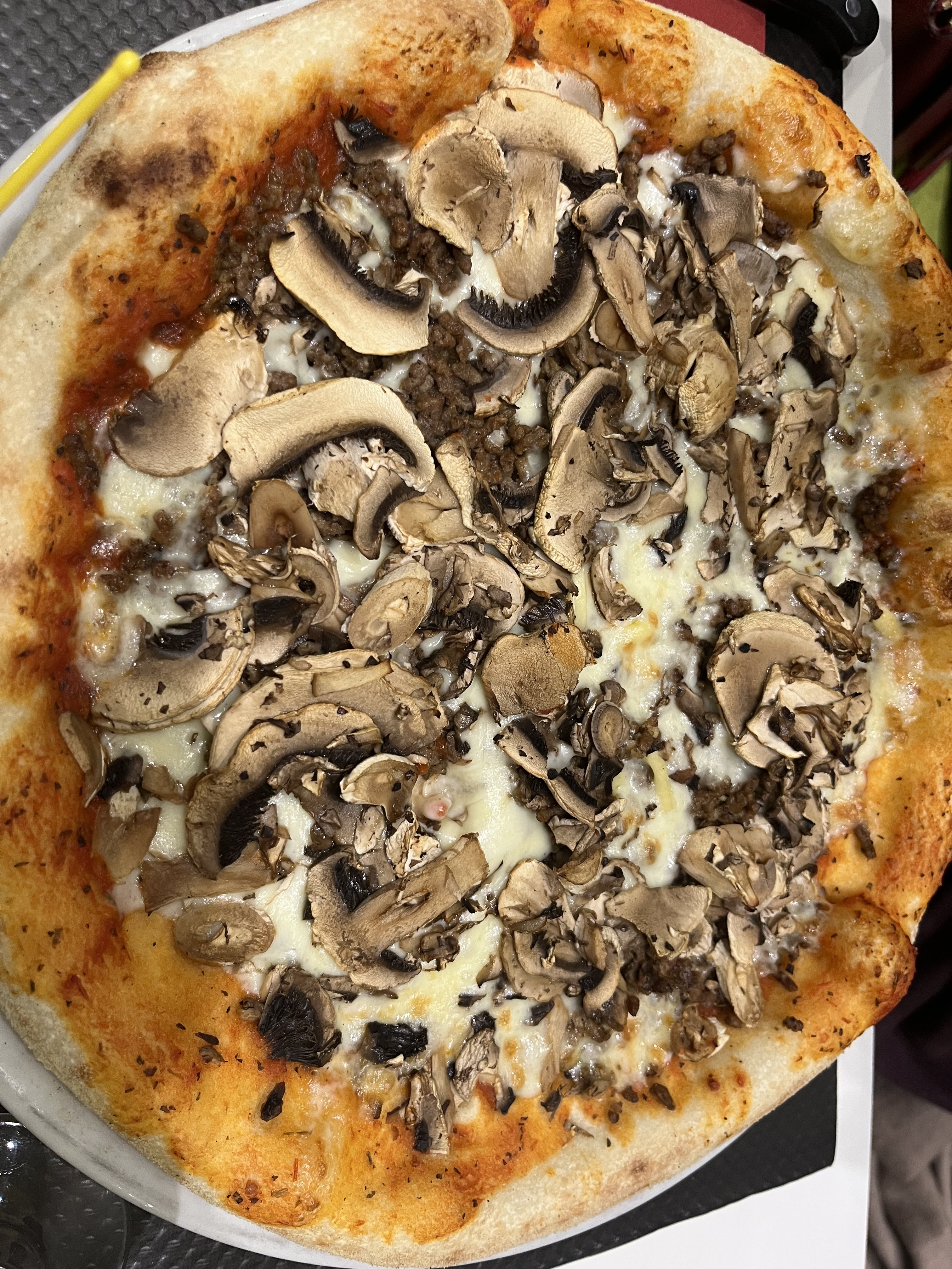 Nous étions 8 à manger là-bas. Le service et l'ambiance sont TOP 👍🏼 Le seul point en moins c'est que ma pizza était « un peu » brûlée.