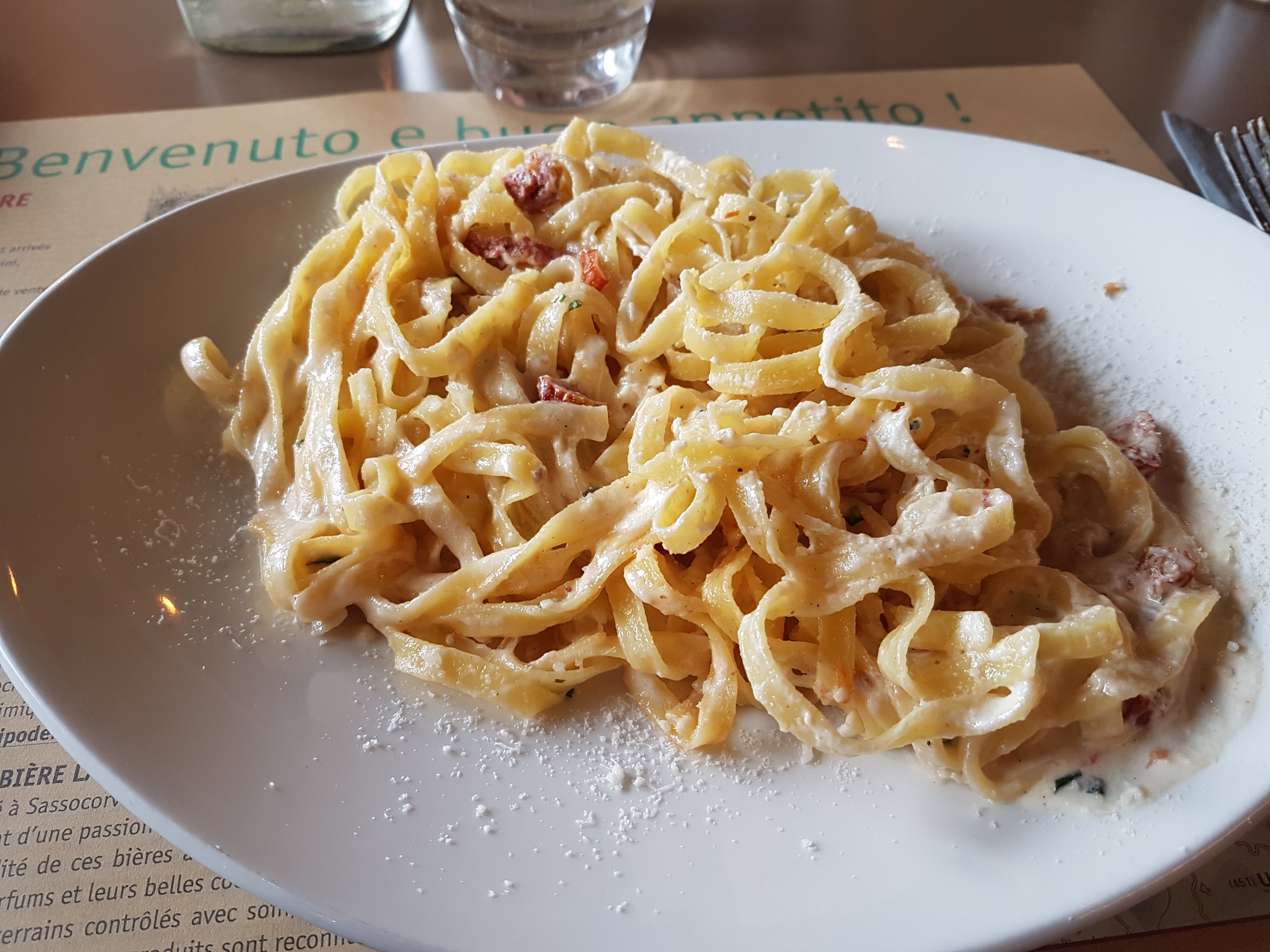 Mangé 2 assiettes de spaghetti façon carbonara tout juste appétissantes pour 35.80€, restaurant à éviter si possible.
