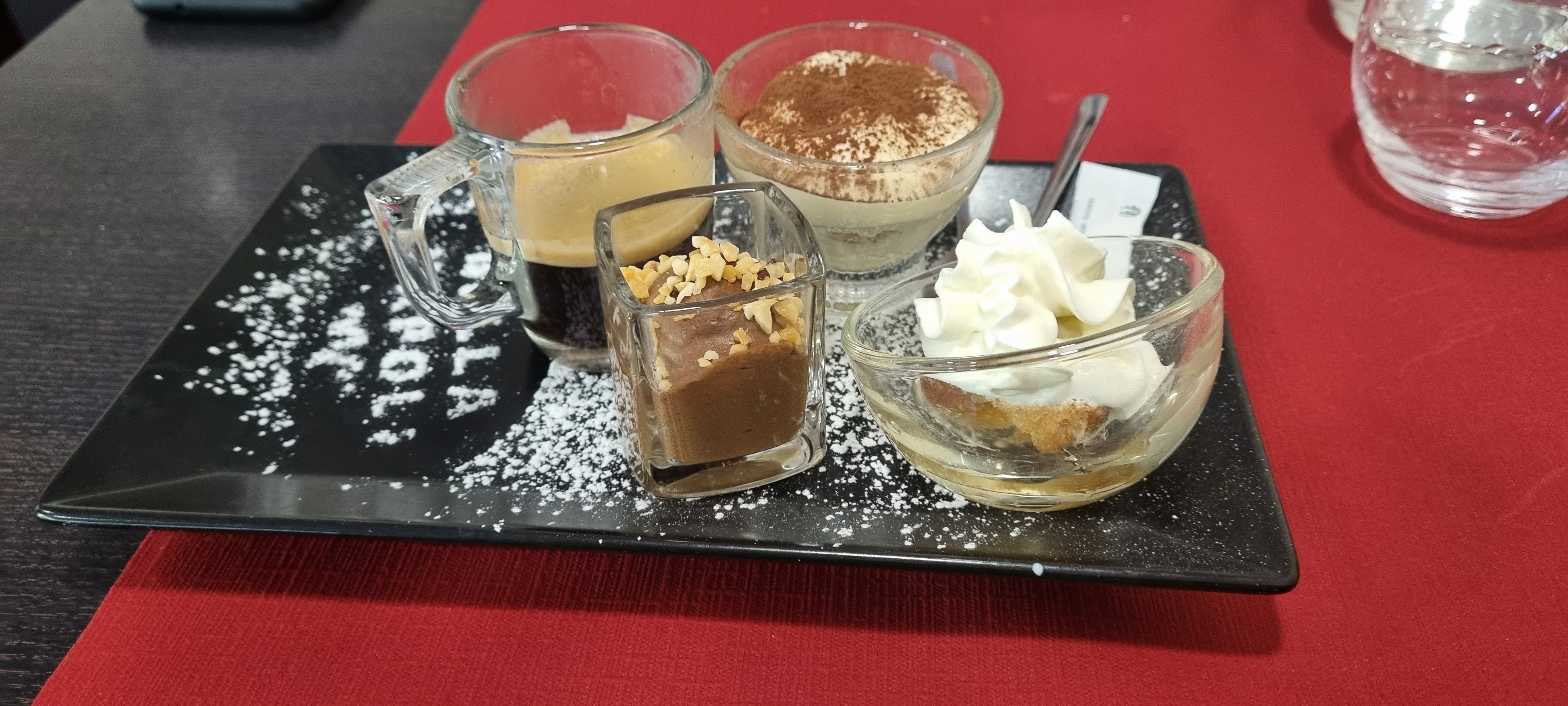 Le repas était excellent : la pizza burratina est un délice et le tiramisu… top top top. Un petit tour de magie du serveur qui apporte la cerise sur le gâteau niveau ambiance. À faire et refaire