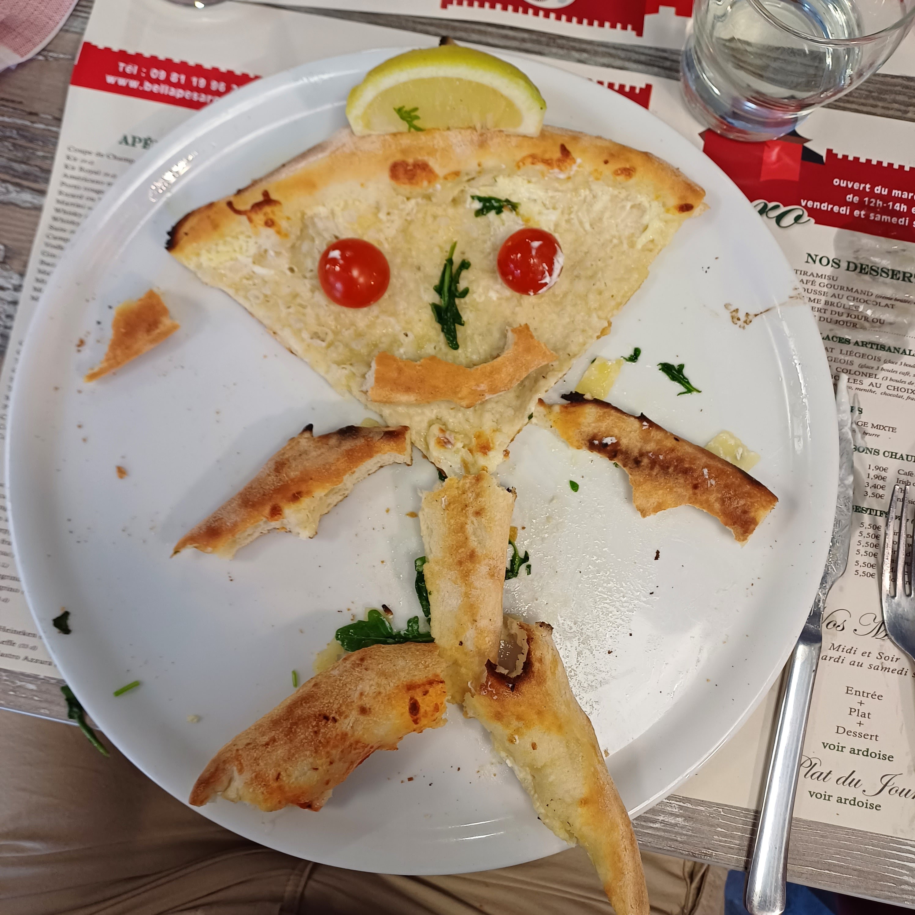 Enfin de vrai pizza avec une bonne pâte et bien fourni. Nous avons testé la pizza aux fromages, la calzone, la saumon et la végétarienne. Un ++ pour la végétarienne avec de vrais et assez gros morceaux de légumes. Par contre attention les menus enfants sont copieux aussi bien les pâtes que les pizzas. Je recommande ++++.
