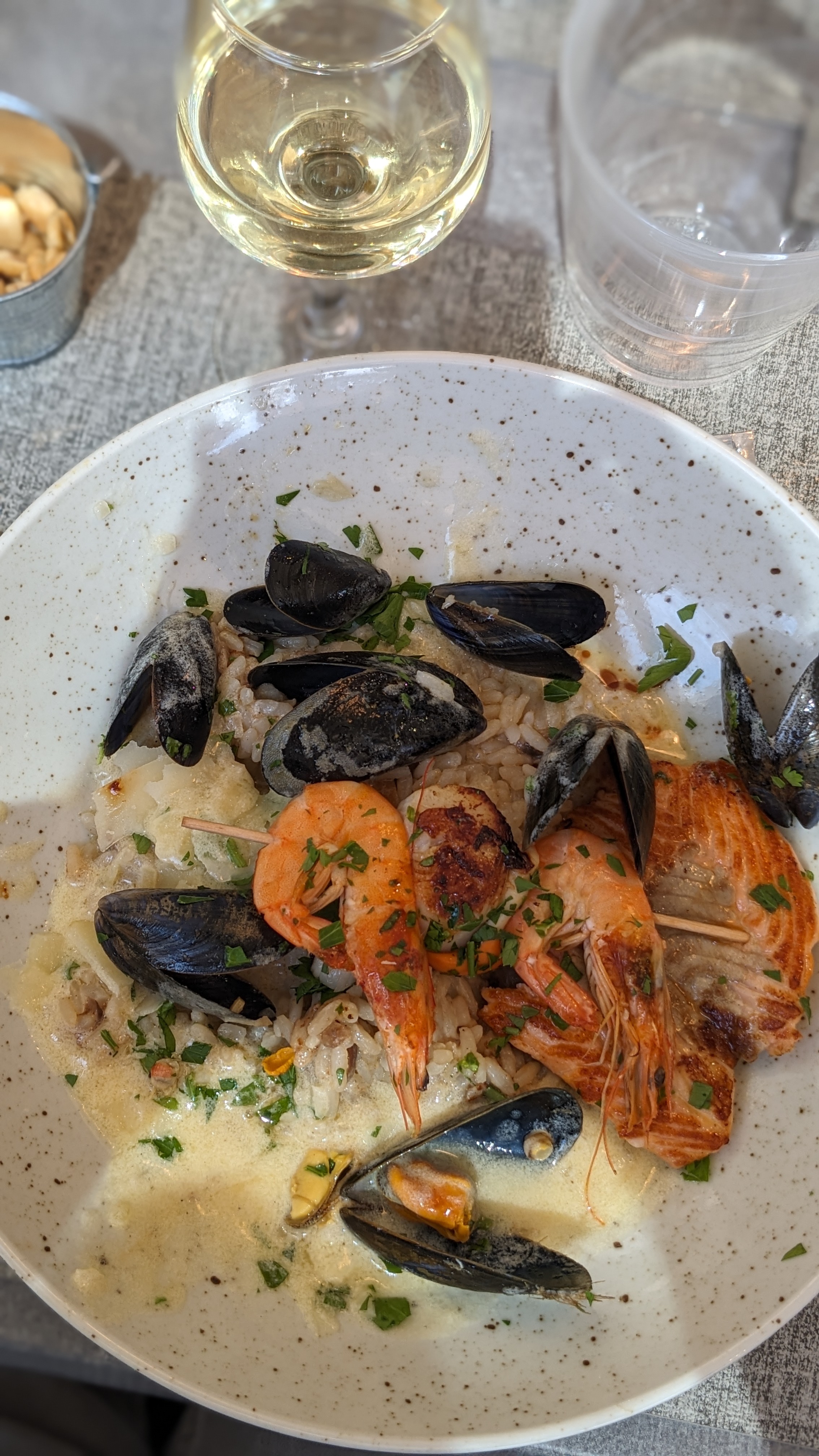 Tout parfait du début à la fin .Moules super et risotto de la mer excellent, très bon rosé. Vous pouvez y aller en toute confiance. 😃