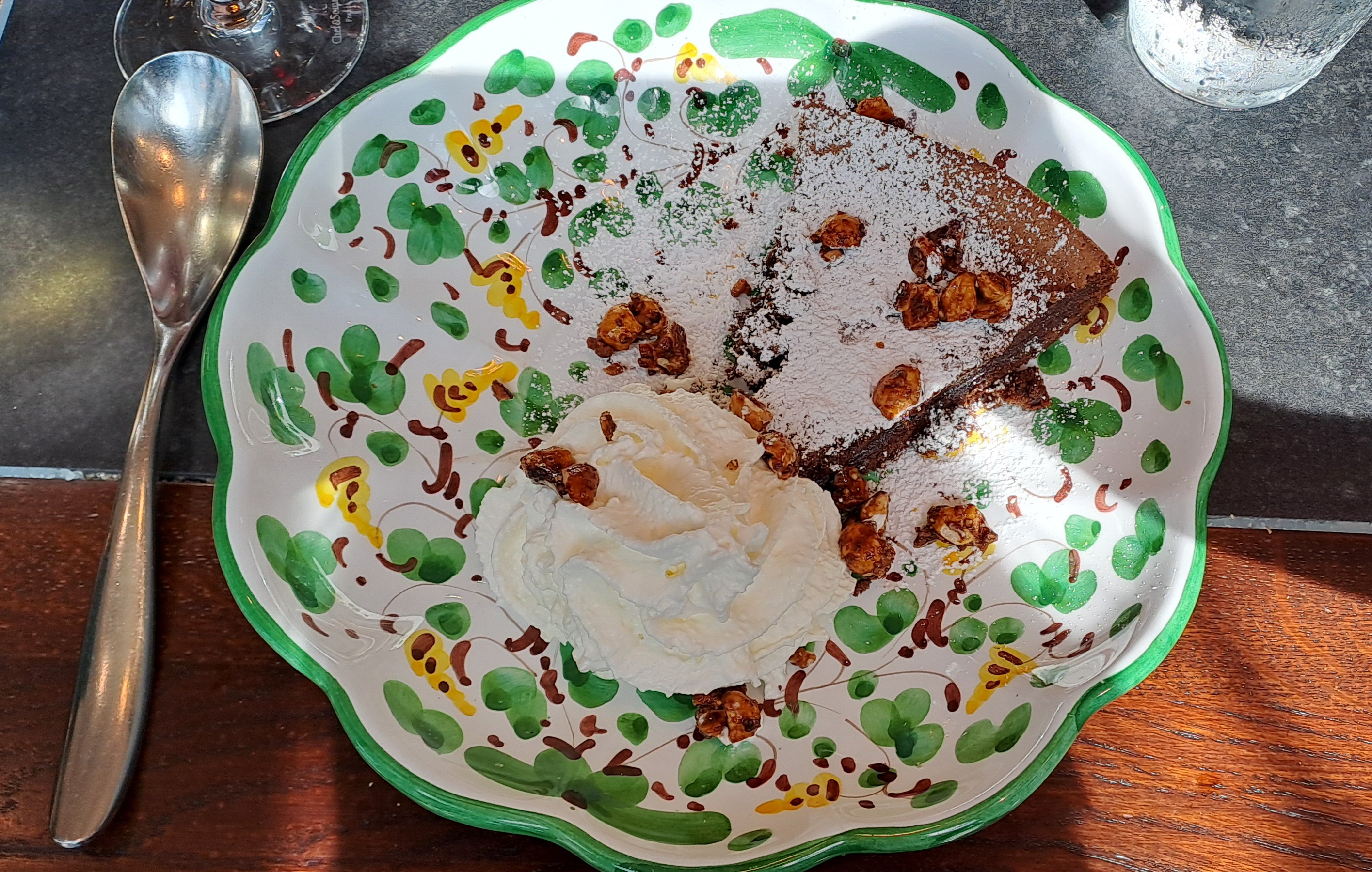 J'ai adoré, nous étions sur la plaza.... 😁 Étant sans gluten j'ai choisi une Insalata bellacitta al salmone.... Une tuerie et en dessert une Coppa limone très bon avec du Moscato d'Asti Blanco en vino... L'ambiance était un rêve en Italie 🇮🇹. Je recommande plus plus plus. L'accueil était très chaleureux et le service très très bien 👍 Merciiiiiii 😍