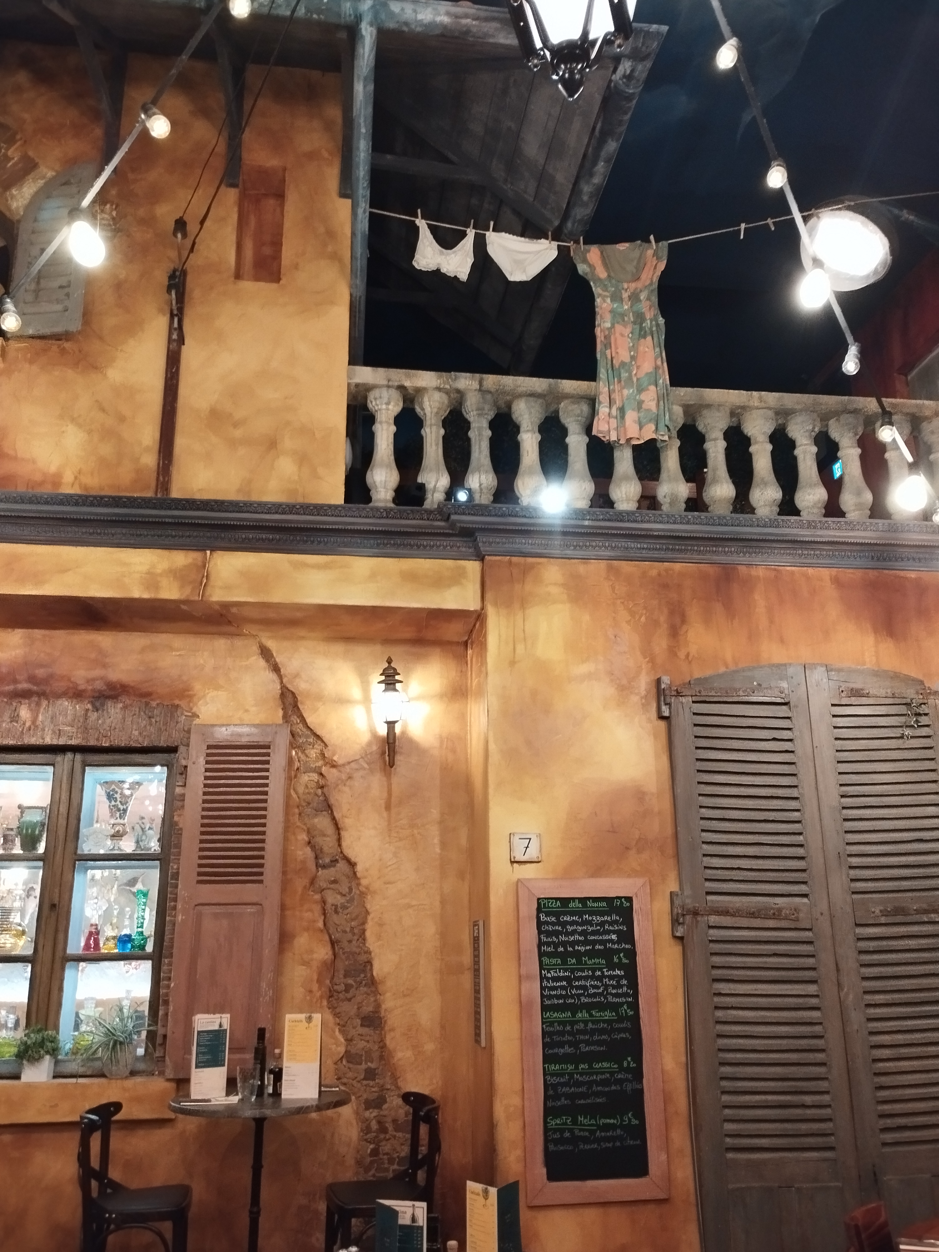 Restaurant italien formidable, plats originaux, service rapide et professionnel et décoration digne des restaurants thématiques du parc Disney (très drôle la culotte de la mama sur le fil à linge au plafond) je recommande vivement.