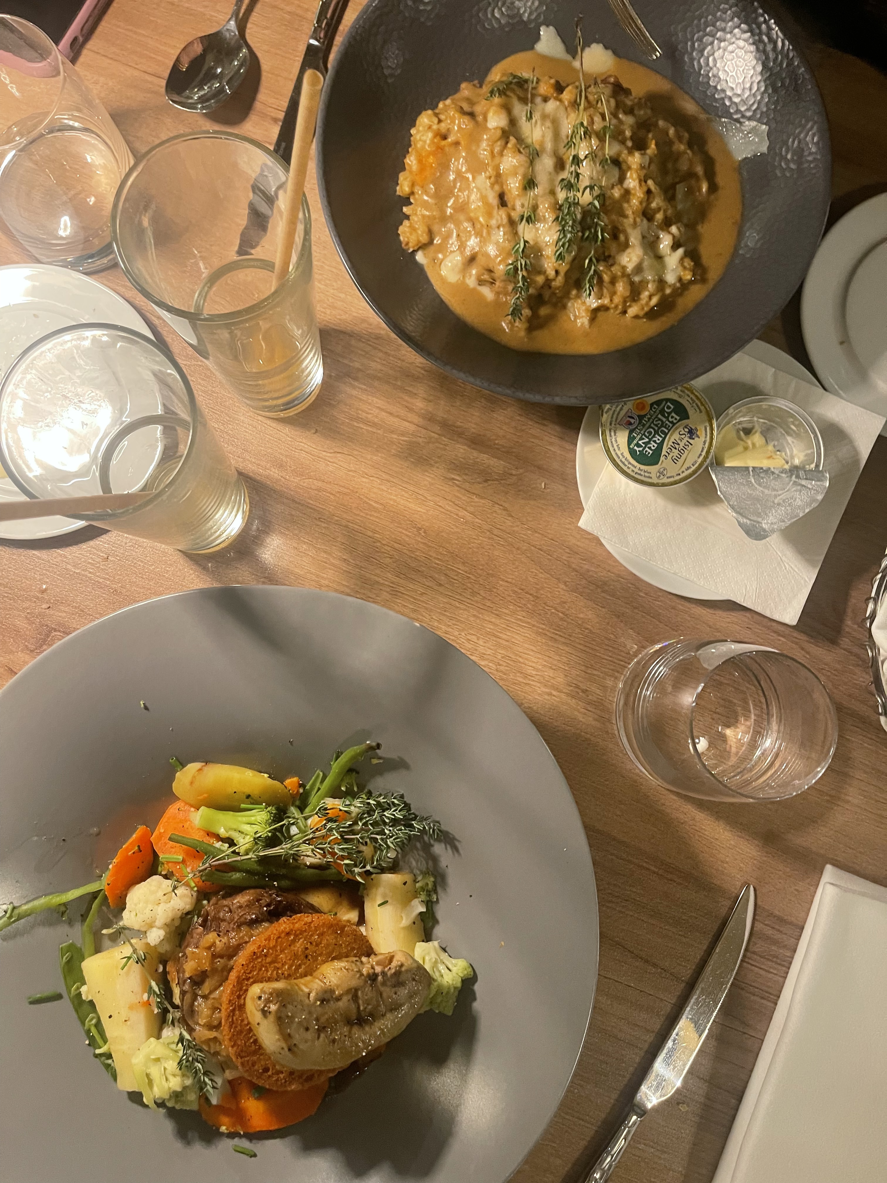 Beau cadre, serveurs agréables mais pas toujours très expérimentés. Par contre les plats sont sans plus. L'os à moelle n'était pas mangeable (dur comme de la pierre ), le menu enfant est au moins deux fois trop cher (18euros des coquillettes à la tomate et une crêpe au chocolat). Ne pouvant consommer de lactose , j'ai été très limité dans le choix des plats car ils en contiennent tous sauf l'assiette vegan et le foie gras.. l'assiette vegan se ne sont que des légumes vapeurs parsemés de graines. Ils ont toutefois essayé de me satisfaire au mieux pour le dessert.