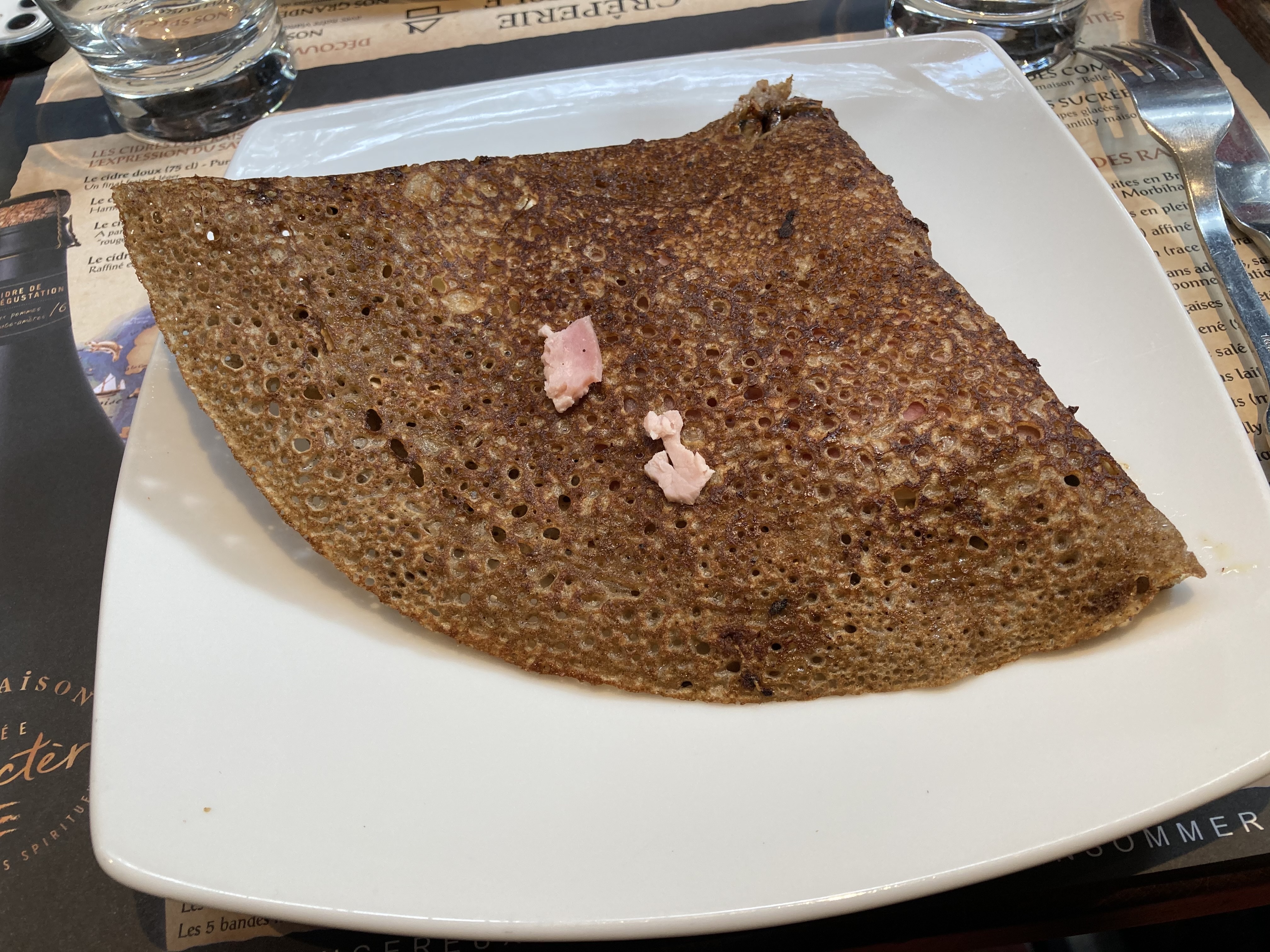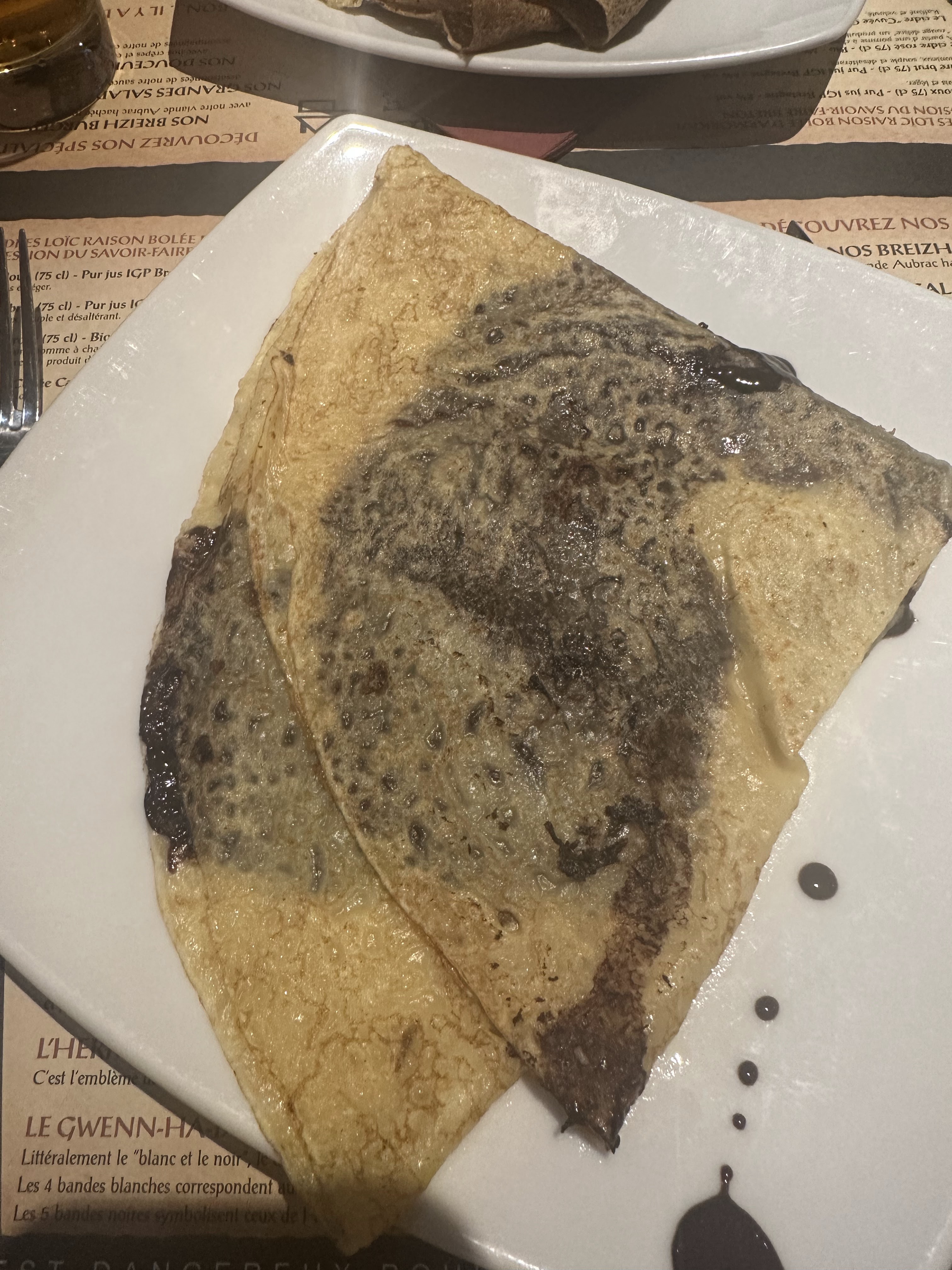 Pate à crêpe de mauvaise qualité. Prix élevé plus de 20 euros pour 2 crêpes simple (2 ingrédients) et un verre de cidre. Par contre service rapide et sympa.