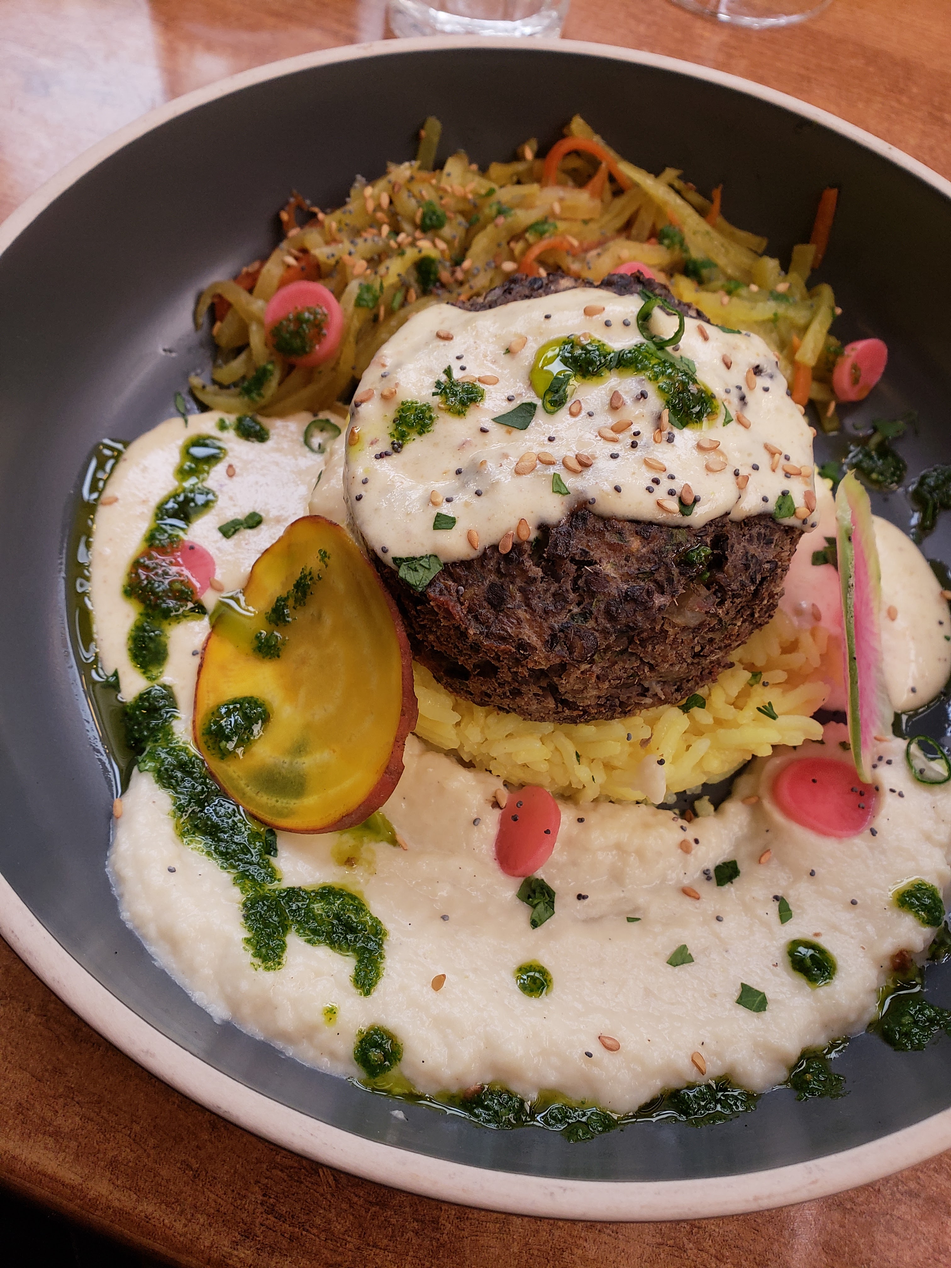 J'ai goûté leur plat végétarien : une galette de lentilles avec sa sauce au parmesan. Et c'était succulent. la Julienne de légumes en accompagnement était aussi bien juteuse