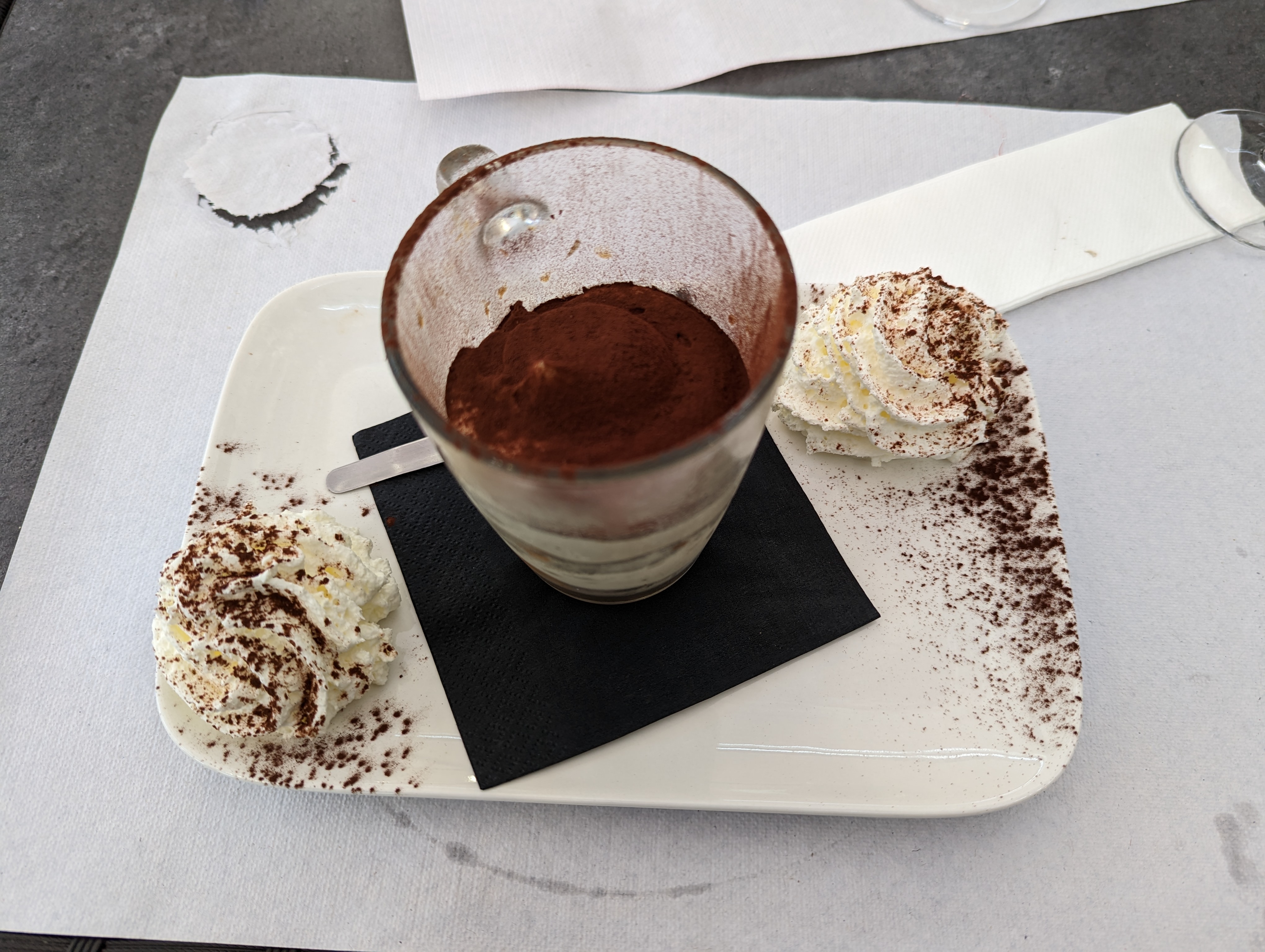 Trop tard pour avoir le droit à une entrée (13h15!), ambiance EHPAD, desserts vraiment pas bons (le tiramisu était du beurre tellement la crème était restée dans le réfrigérateur, biscuit non trempé dans le café / tartelette poire amandes toute petite et toute mollassonne)… il fallait vite que tout le monde ait fini avant 14h visiblement…