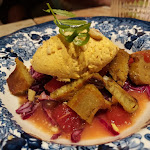 On n'a pas eu de chance j'en suis sûre ! La bouteille de vin que l'on voulait (la serveuse ne sait pas ce que c'est et ne peut donc pas nous en parler) n'est finalement plus disponible et les verres de Beaujolais choisis à la place sont décevants d'autant plus que chichement servis ! (En comparaison de la table à côté de nous...) Ensuite on part sur des pakoras absolument délicieux mais tièdes... Pas grave. On poursuit avec les pork bellies, là aussi c'est très bon mais pas de bol une fois de plus... Je me retrouve avec une tranche entière de gras sans viande ! Un peu hard ! Bref on a préféré partir prématurément. Mauvais karma c'était pas le jour... Autant pas insister... Sinon que dire... Je crois qu'on essayera de revenir pour effacer ce souvenir bof bof. 😉