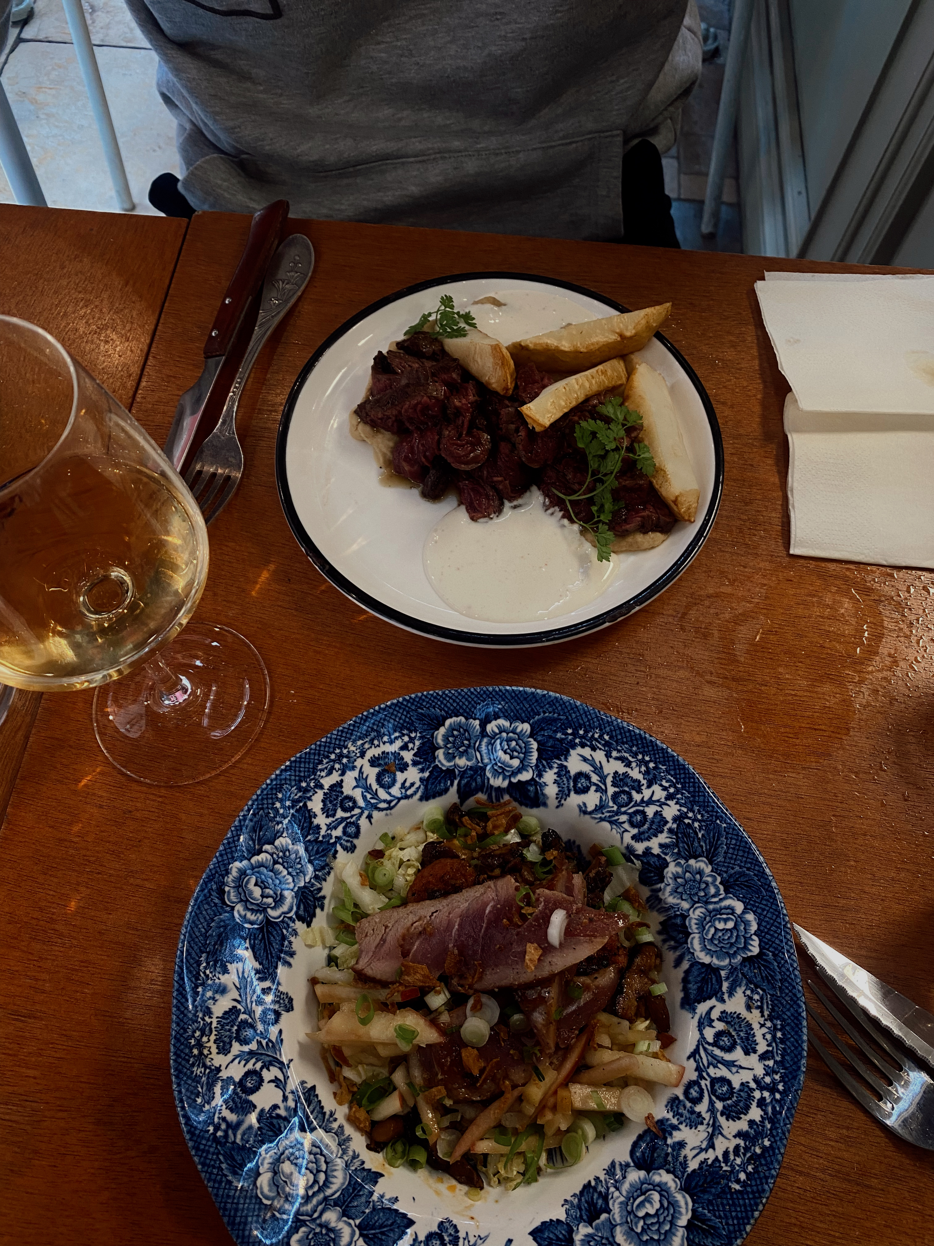Assez moyen dans l'ensemble. Chaque petite assiette coûte le prix d'un plat principal. Et selon l'assiette ça peut être bon mais honnêtement pas fou. Cela aurait pu être 3 étoiles mais : 1. La serveuse était arrogante 2. Nous avons également attendu 40 minutes pour une assiette. Nous l'avons demandé à plusieurs reprises et toutes les tables autour le recevaient bien qu'elles soient arrivées après. Quoi qu'il en soit, c'est un endroit moyen, ne vous laissez pas berner par le battage médiatique hipster, vous pouvez trouver une meilleure nourriture et un meilleur service pour ce prix.