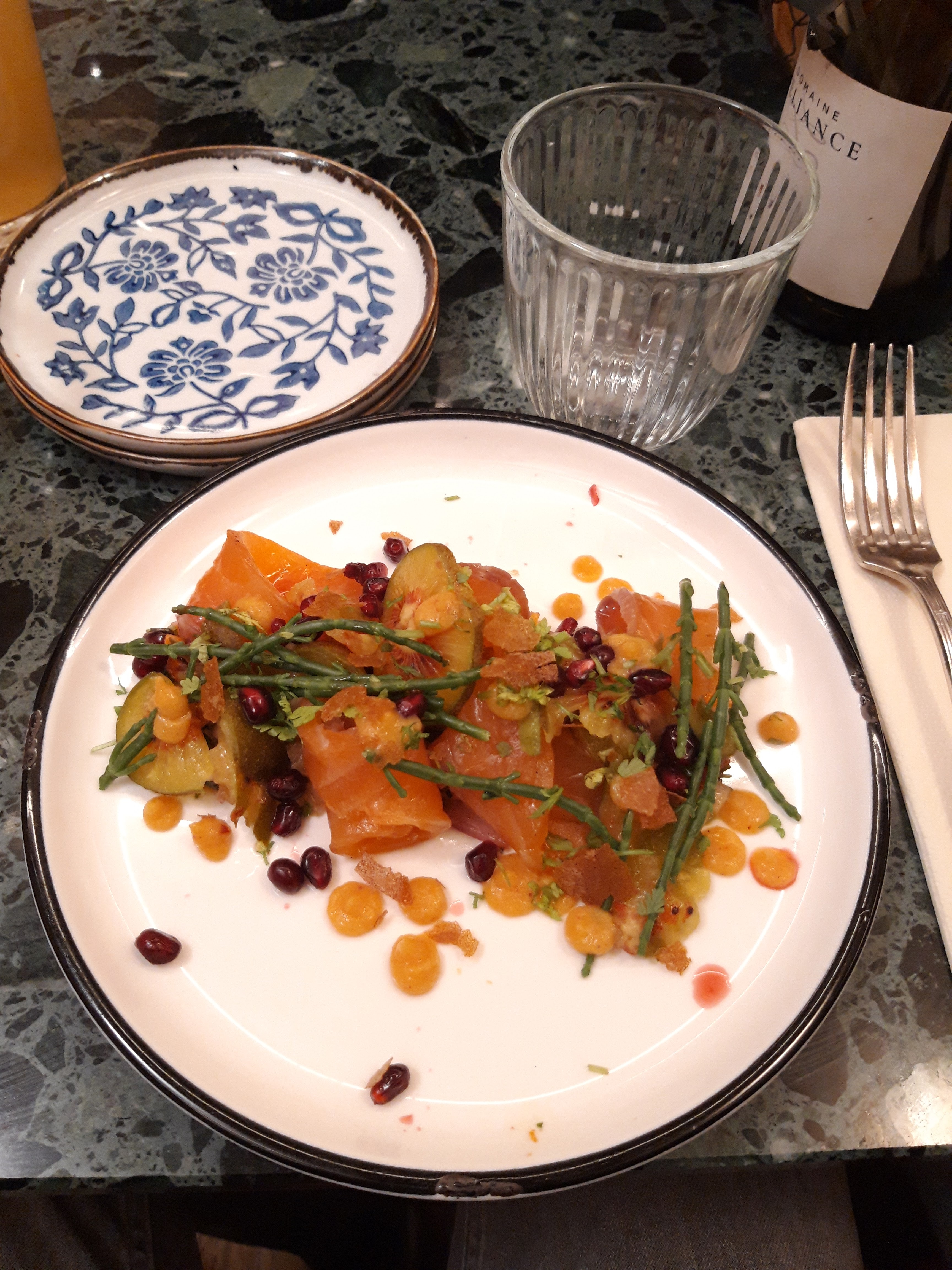 Délicieux et inattendu ! Si vous cherchez de la nouveauté, c’est le bon endroit ! Les plats sont bons avec des saveurs peu « habituelles » mais excellentes combinaisons 😁 ! Ça change de la cuisine « française classique ». C’est frais et relevé (il faut aimer les épices 😋) Par contre, Il faut aimer le cranberry car il y en avait partout 😅