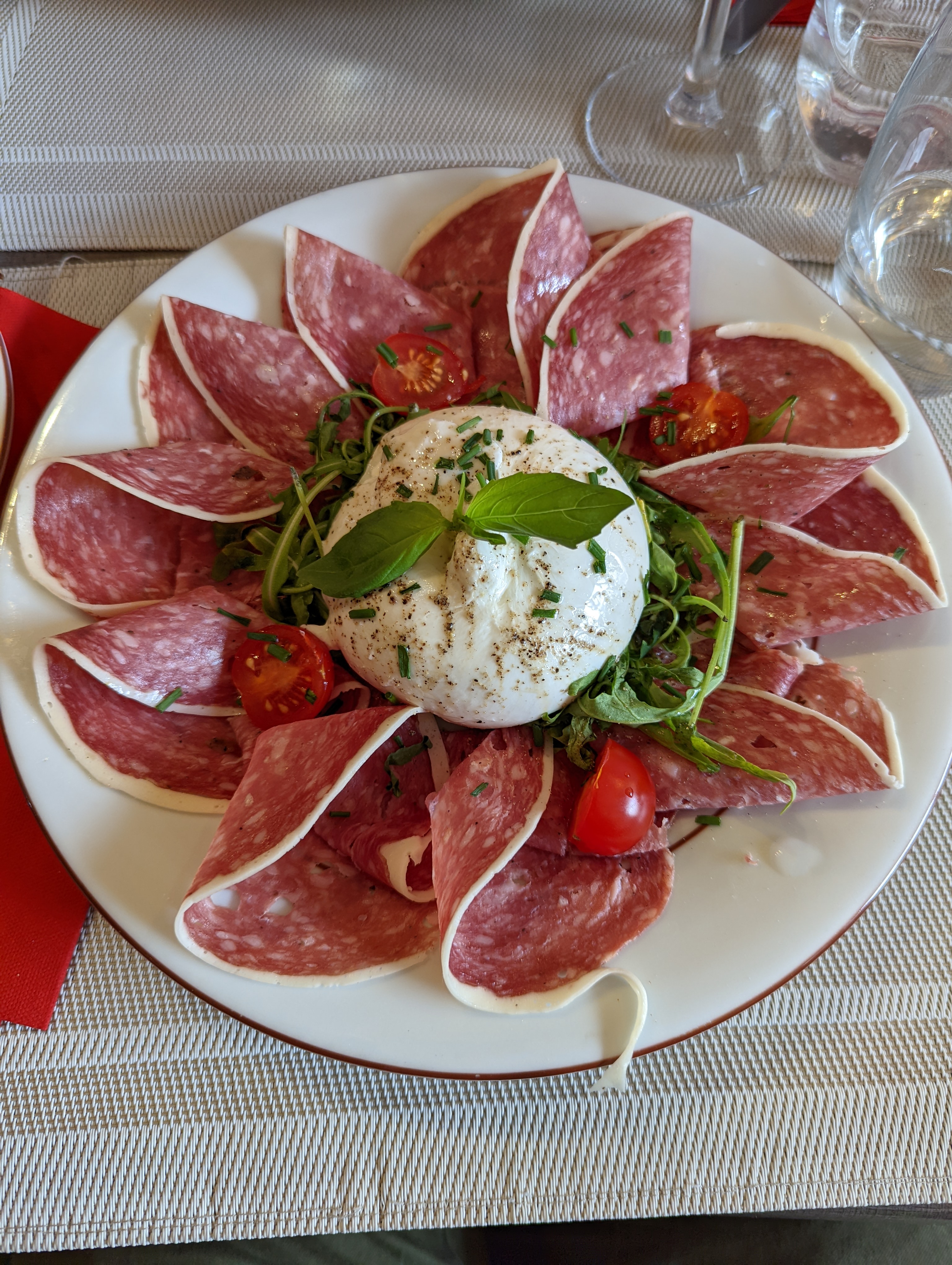 Belle idée que j' ai eue pour l'anniversaire d'une amie : nous avons partagé un plateau apéritif magnifique composé de produits italiens de très grande qualité. Tout était goutu : la charcuterie, les fromages, touuut était divin ! Merci !