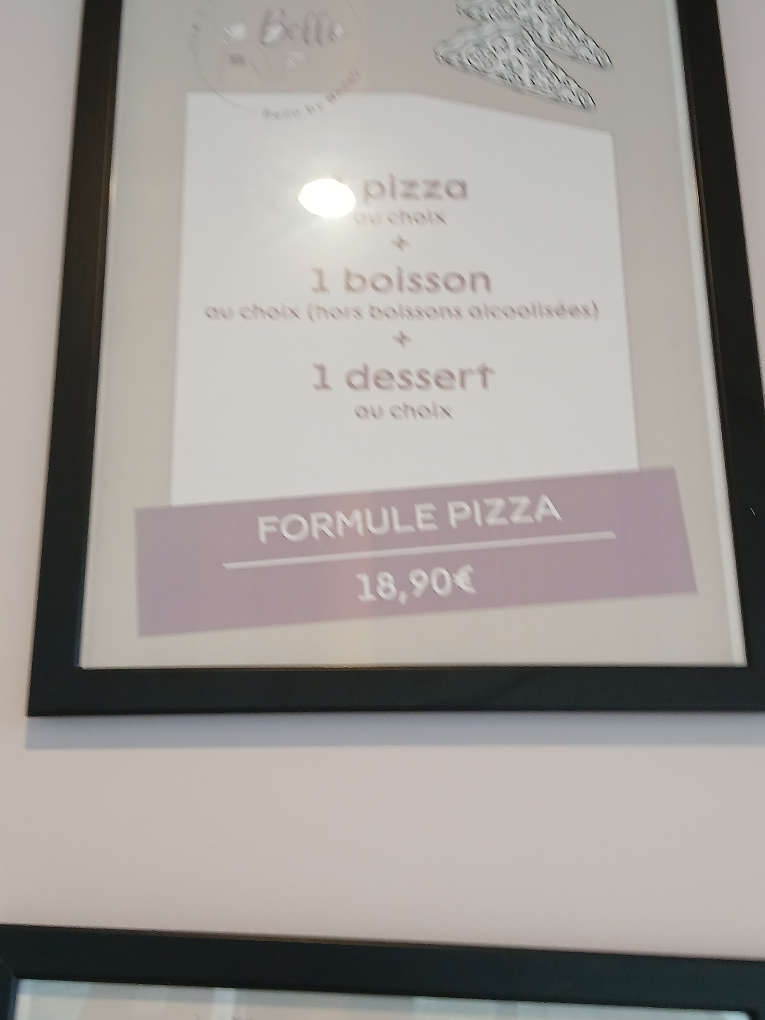 Ce midi découverte de la pizza 4 fromages supplément jambon....un délice. Bonne pâte ingrédients bien fournis chaude et délicieuse. Je vous mets quelques photos très mignon possibilité de manger sur place. Merci beaucoup