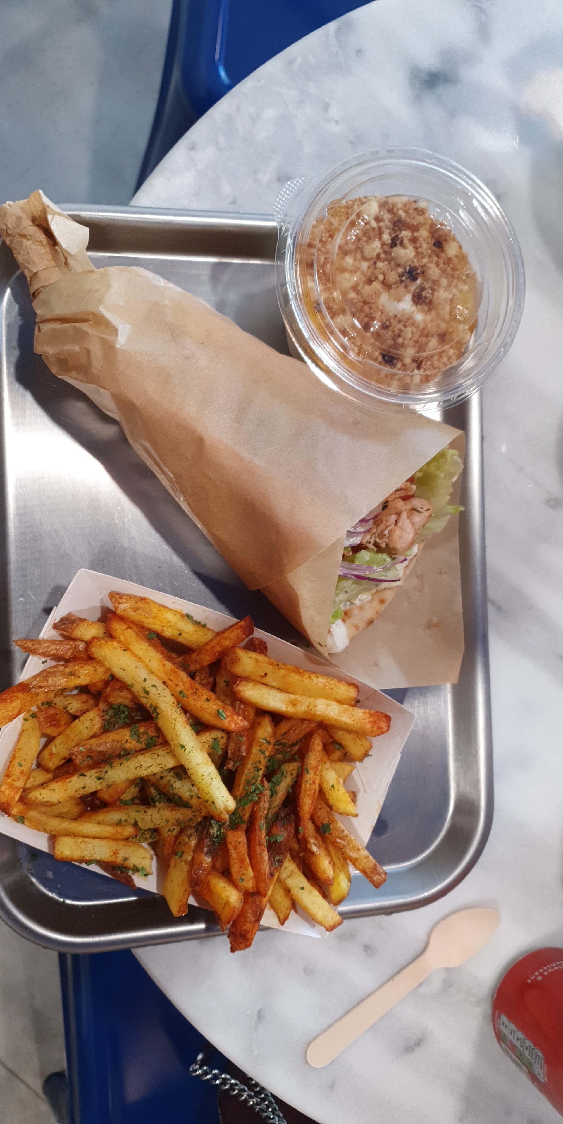 Je vois que les clients n'y voit que du feu... J'ai vécu en Grèce pendant 9 ans et ca n'a rien à voir avec du street food grecque, de plus que les prix sont vraiment élevés pour les quantités servies et l'espace dans le restaurant est très limité. Ce n'est pas en mettant du tzatziki sur des frites que l'on peut appeler ça de la cuisine grecque, et on ne retrouve pas l'authentique pyta-gyro