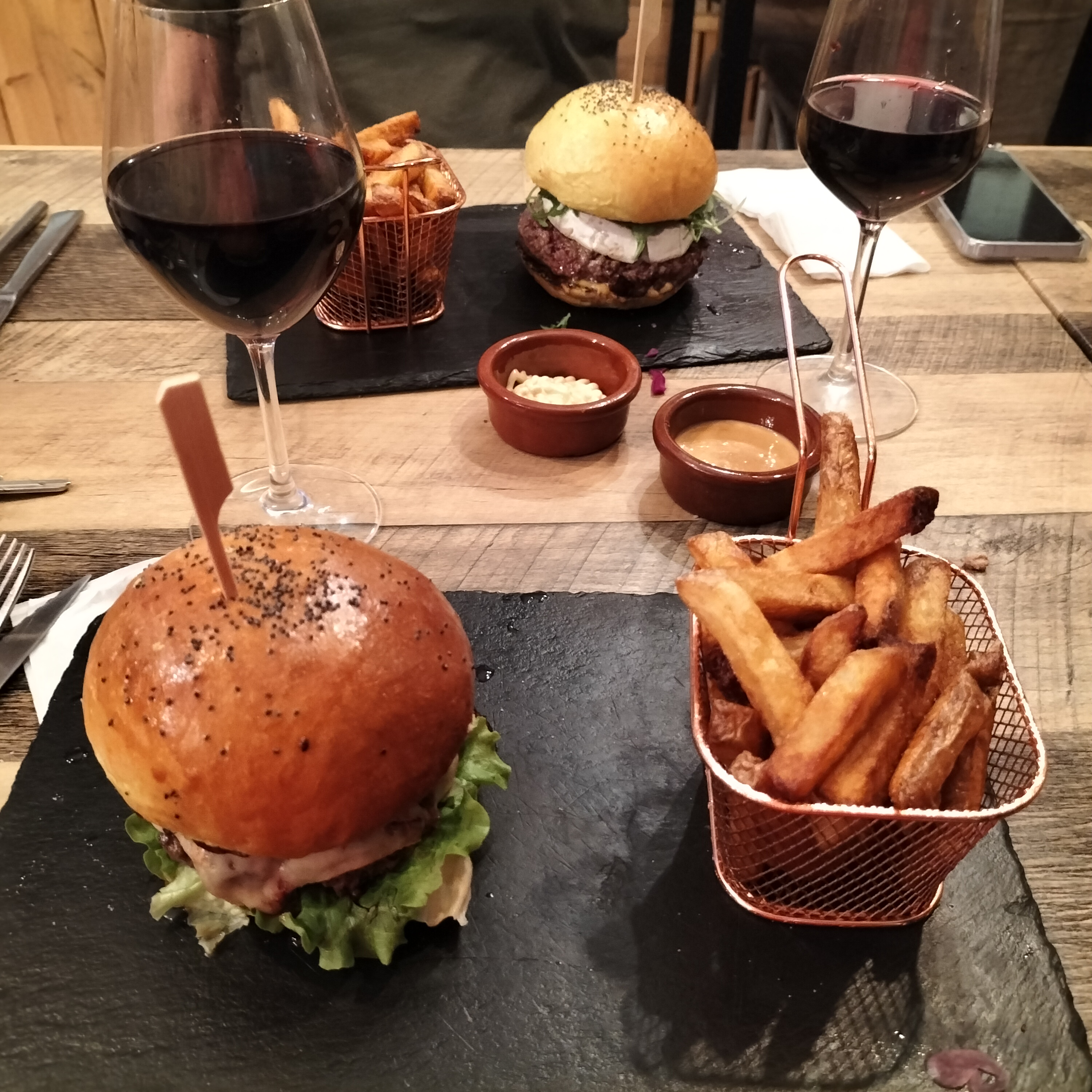 A essayer absolument. Prix plus que raisonnable au vu de la qualité des produits proposés¡¡! Ayant entendu parlé par des amis de ce restaurant avec des burgers de qualité avec des viandes et fromages Aop.Frites fraîches maison. Que du Bonheur. Des planches incroyables et de très bonne qualité prix. Le service très agréable, nous avons été reçu comme a la maison 😁 N hésitez pas pour une soirée verre a vin ou burgers ou les deux. Je recommande a 200 % Vous ne serez pas déçu.