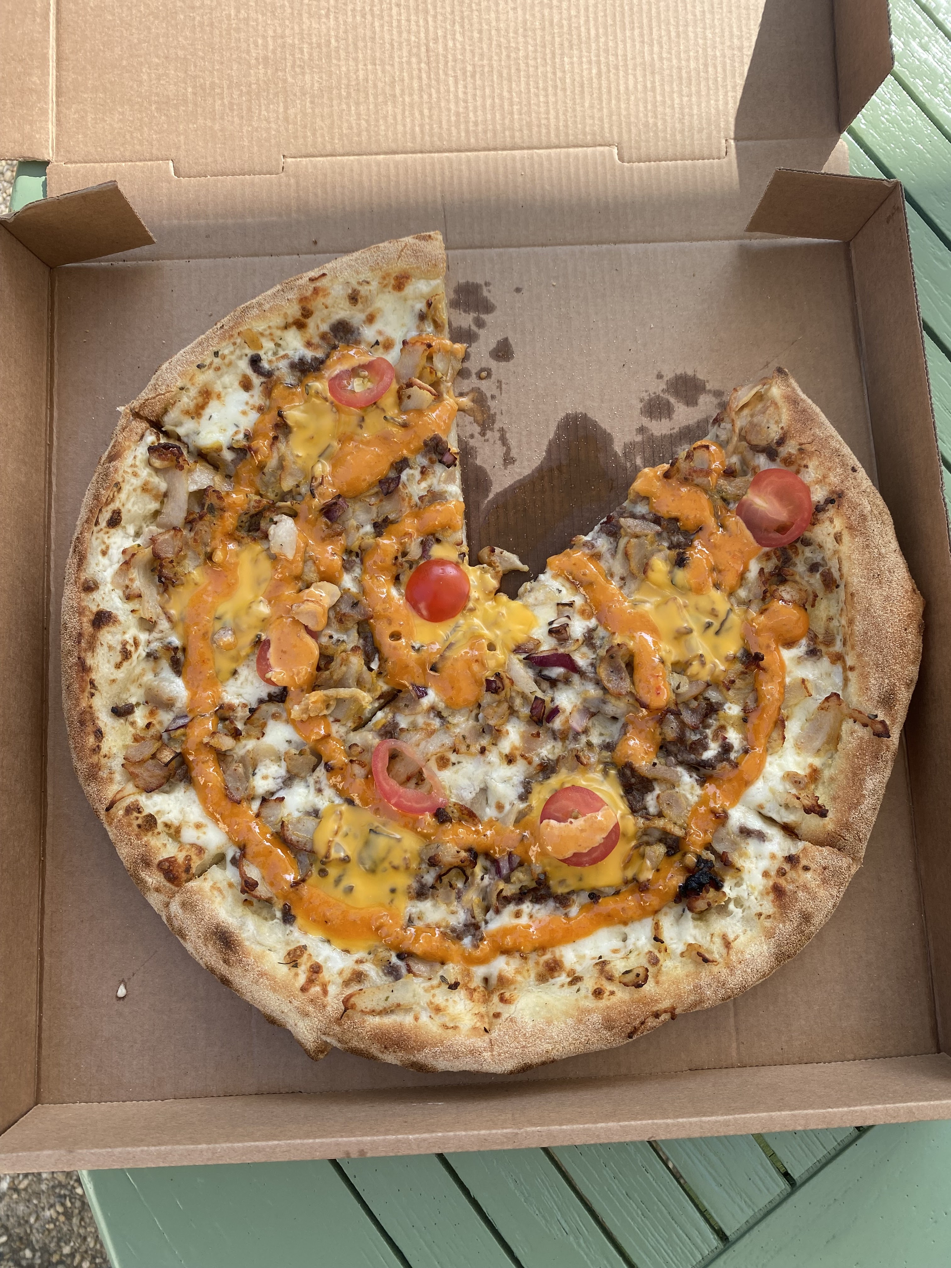 Pizzas super bonnes ! Le monsieur( sans doute le patron ) super sympa ! On recommande vraiment , De plus ils peuvent vous livrez ... c est top ça ... on n a rien dans les alentours de tinténiac st do qui proposent une telle prestation ! Bravo et merci !!