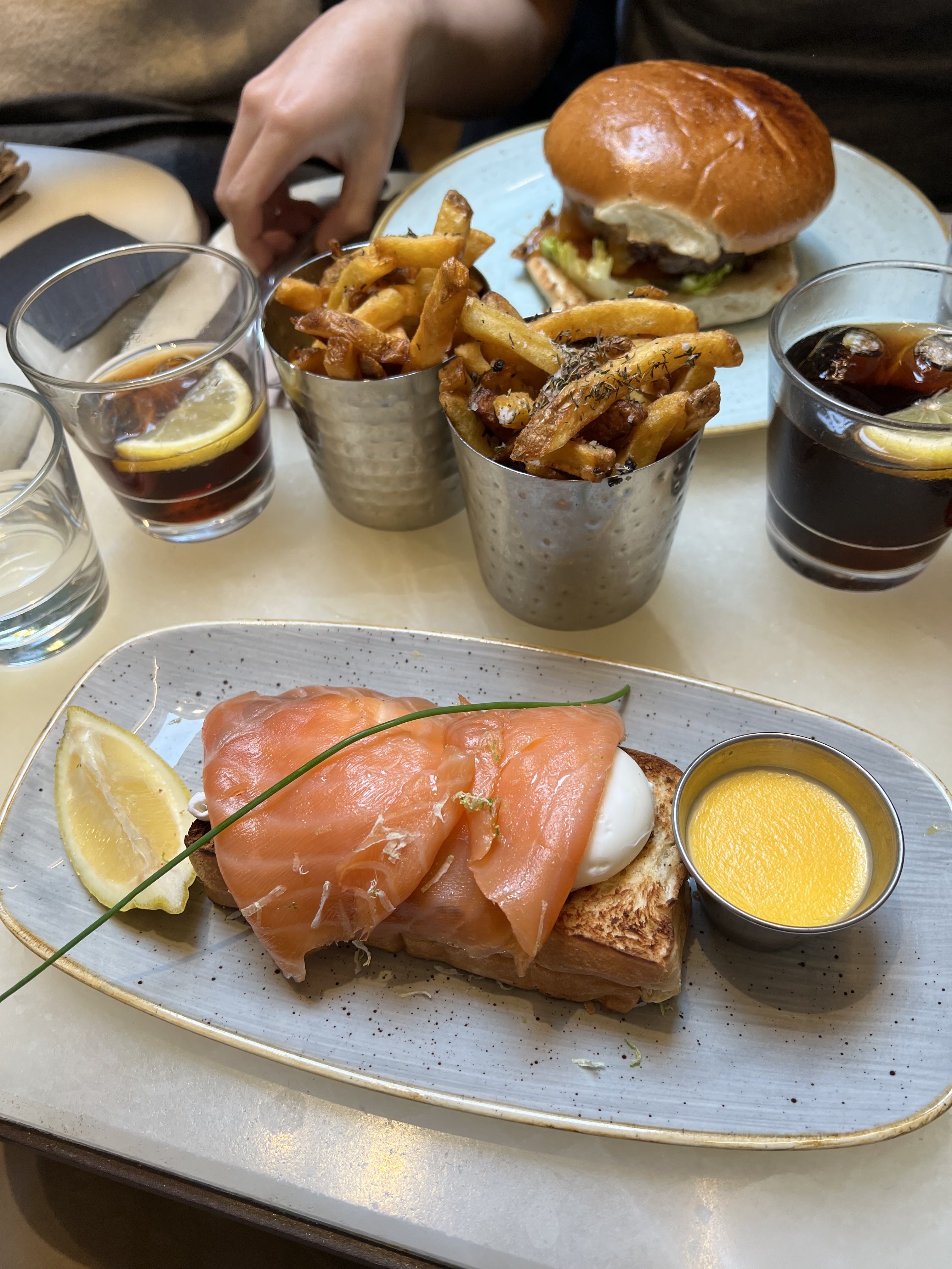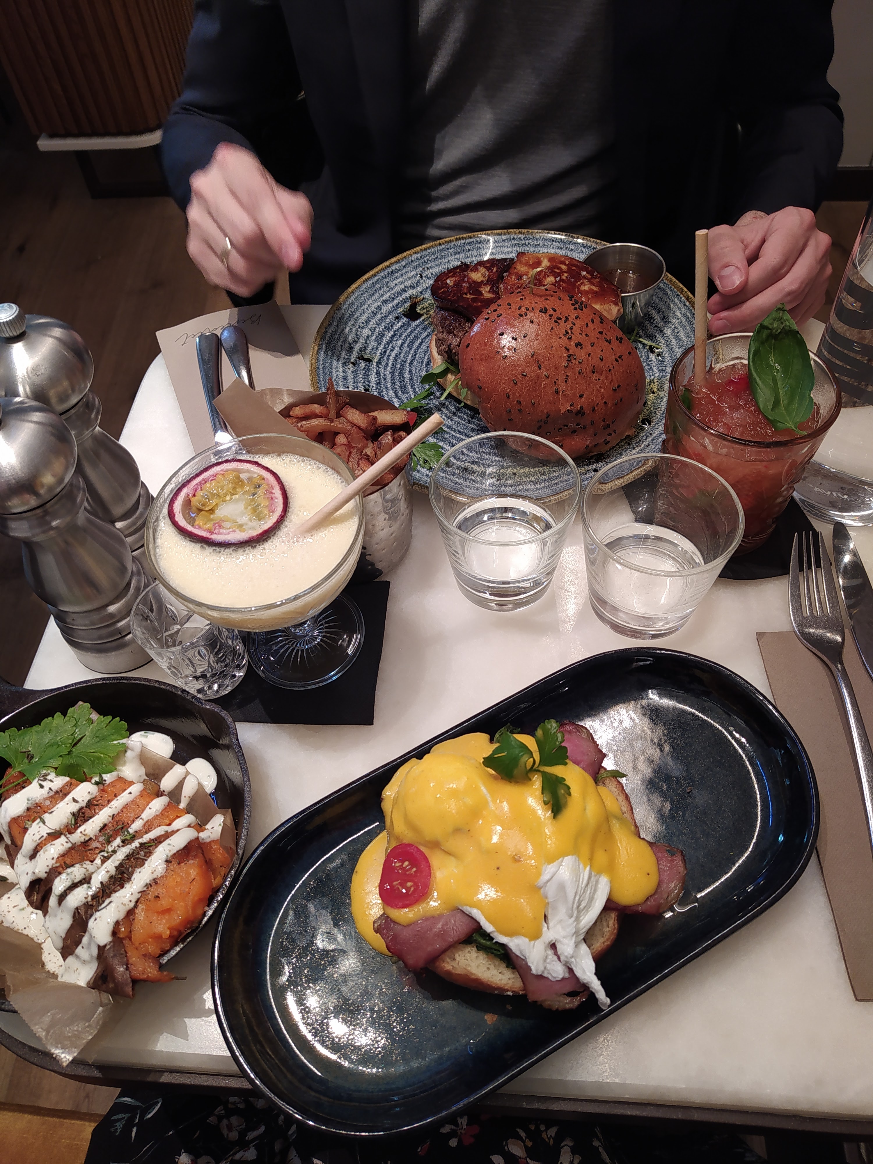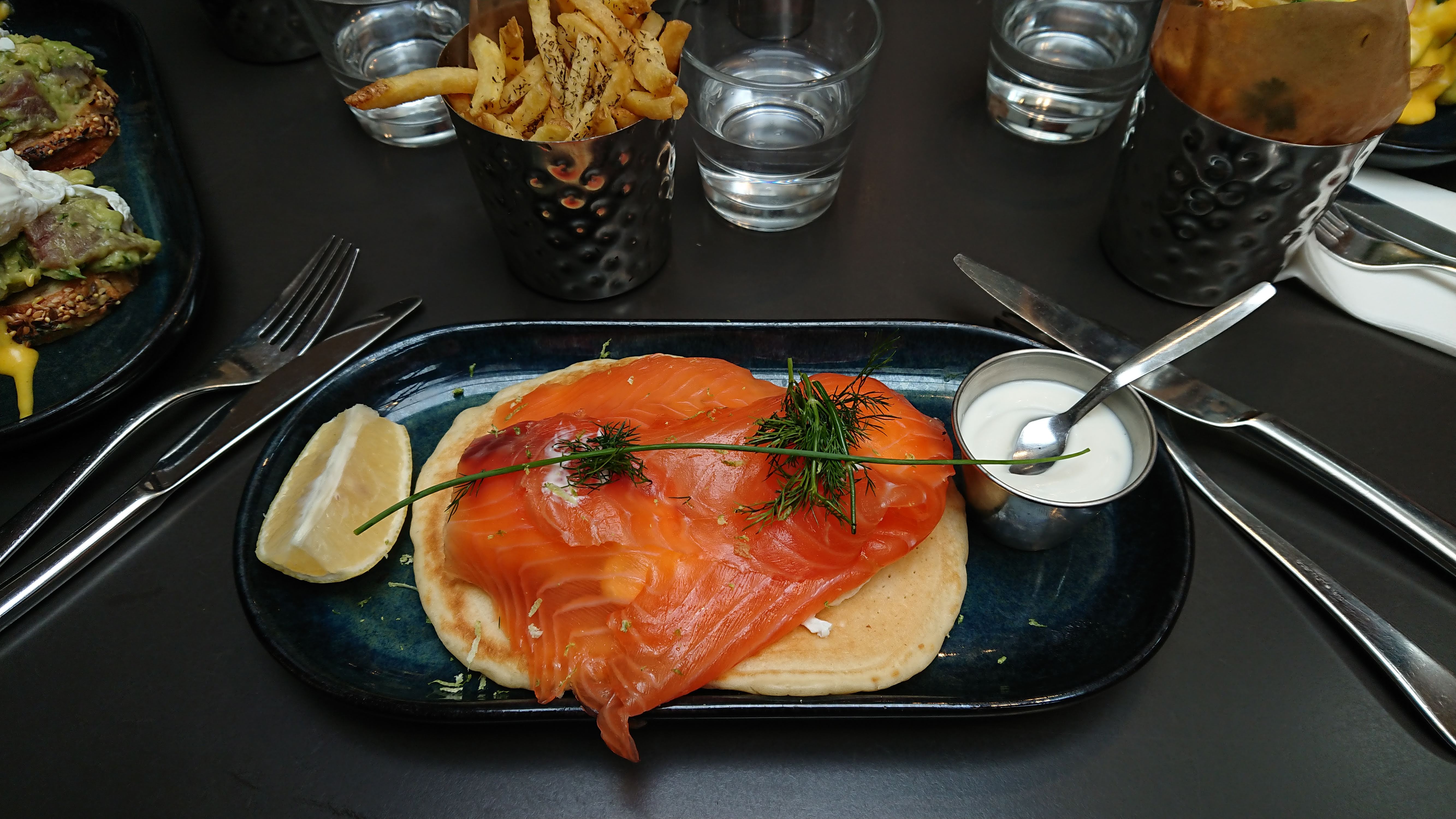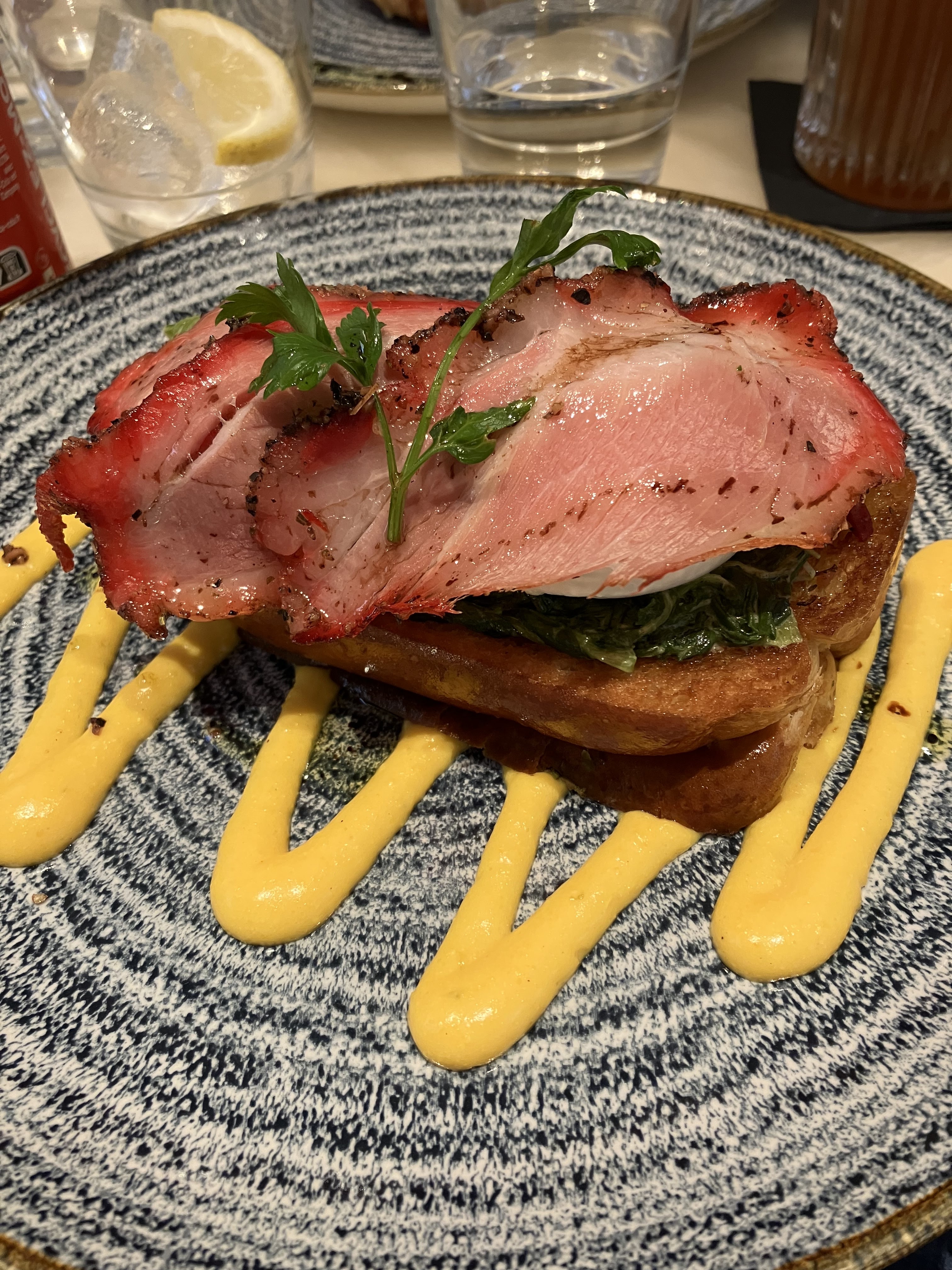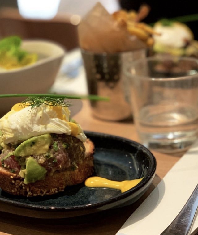 Un resto brunch spécialisé dans l’oeuf benedict, pancakes, burger avec foie gras et sauce truffe. Les patates douces grillées sont super bonnes (sans sauce) et bien sucrées. Framboise de bonnes qualités. Le saumon grillé est bien croustillant au dessus mais la sauce qui va avec est moyenne.