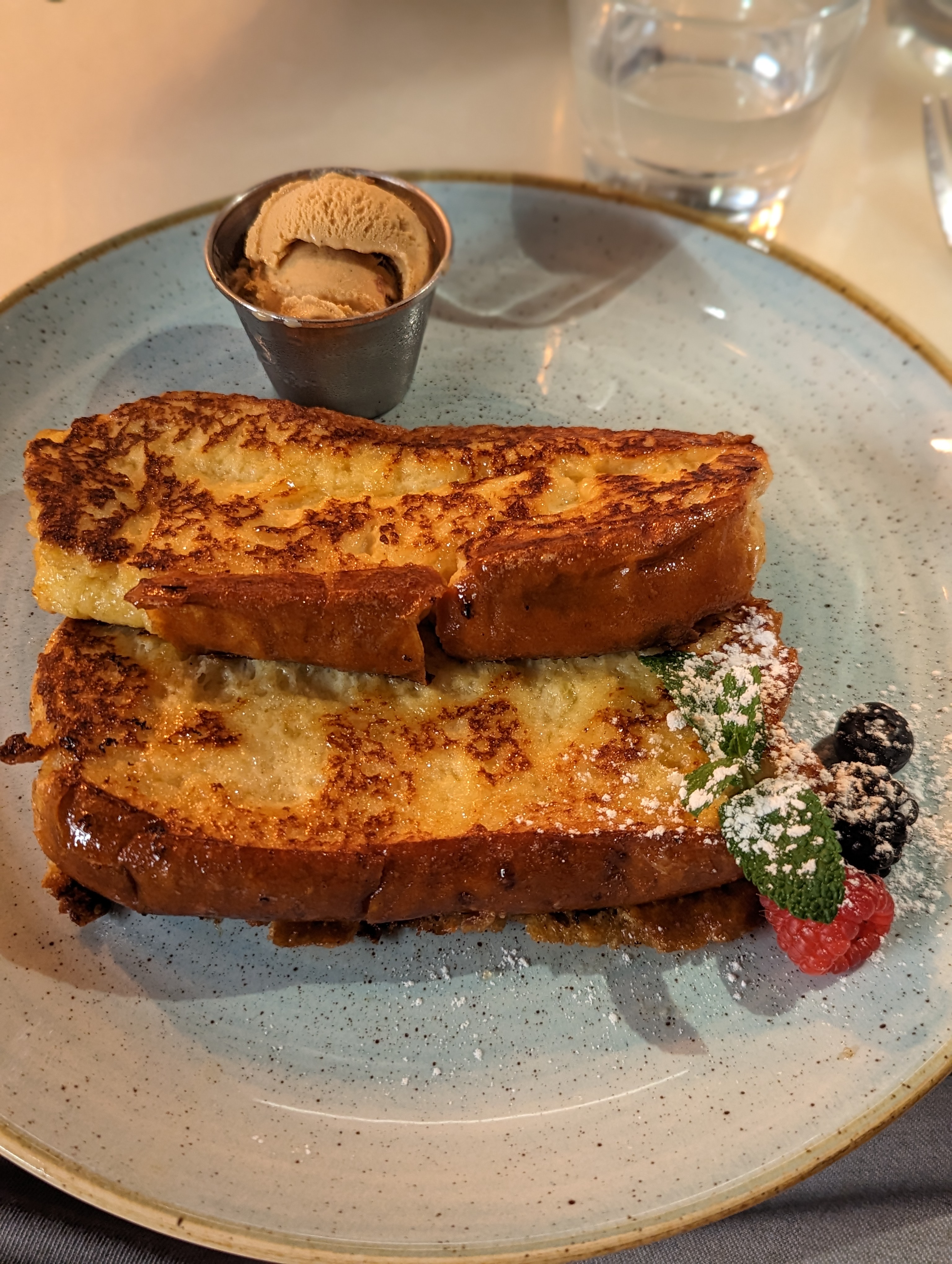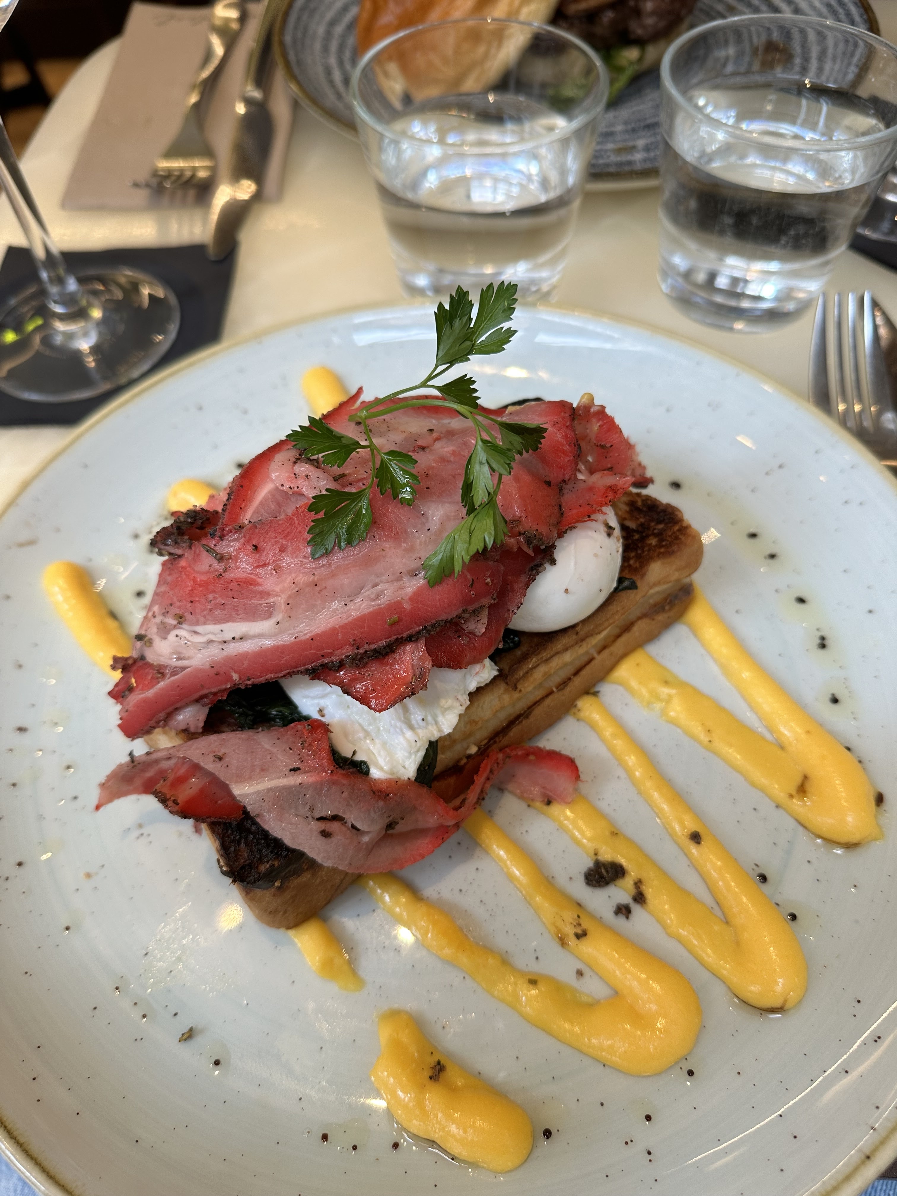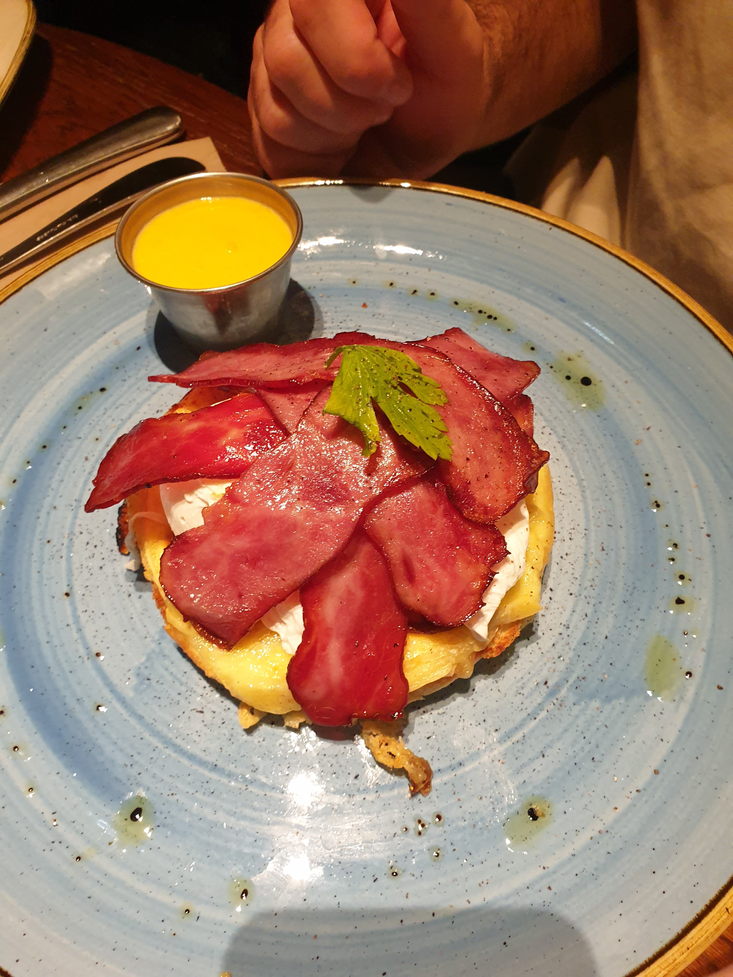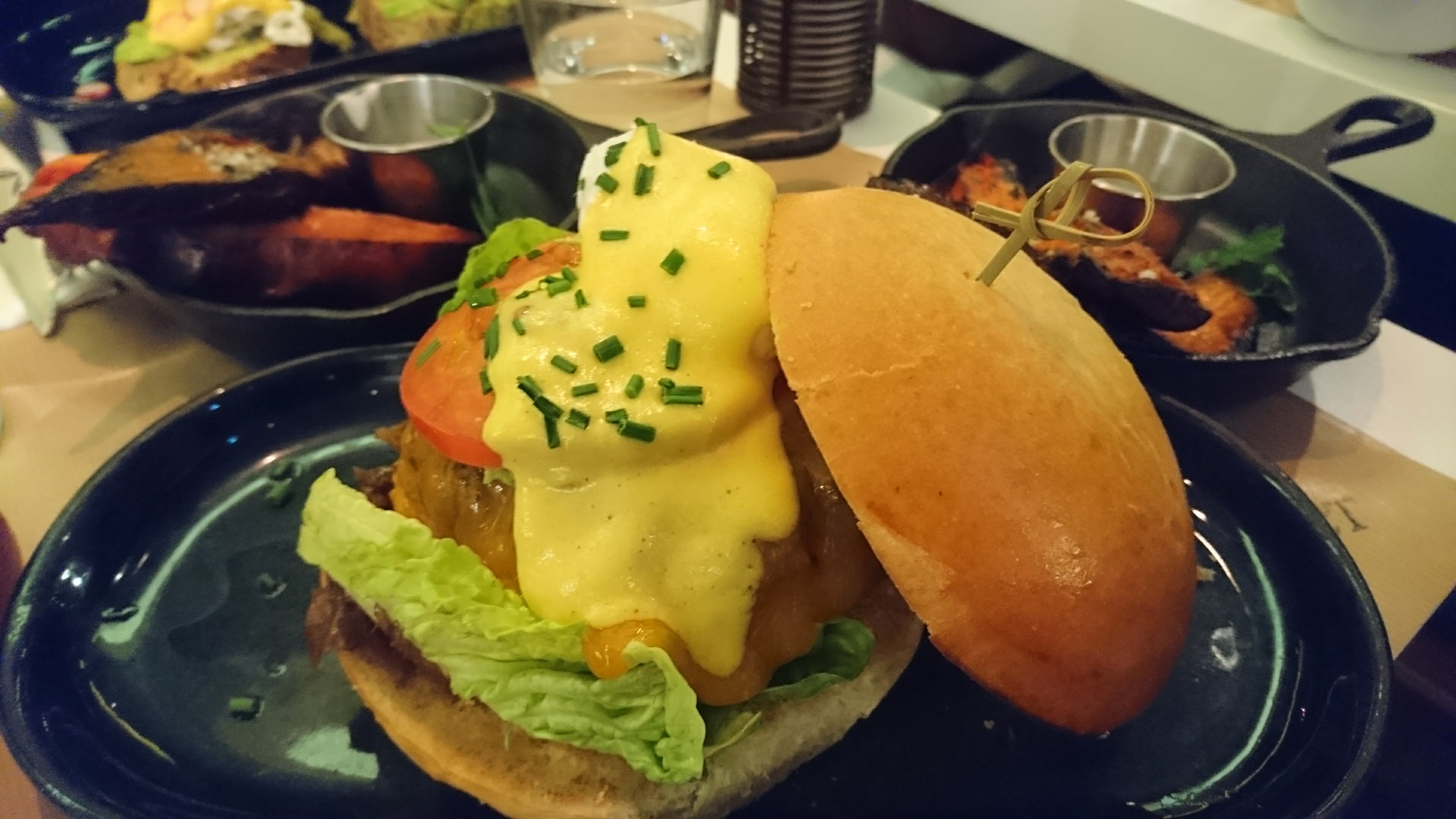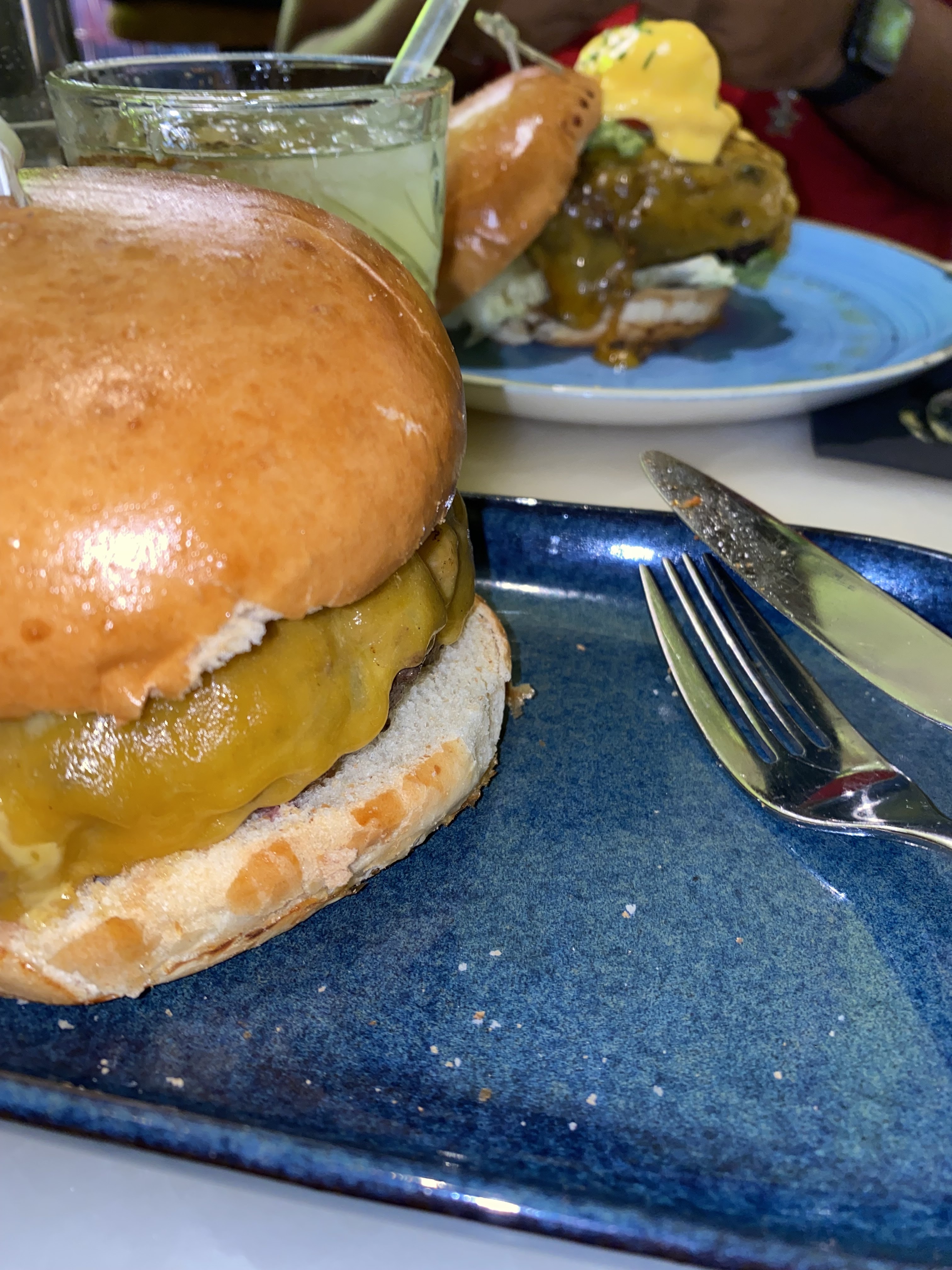 Un resto brunch spécialisé dans l’oeuf benedict, pancakes, burger avec foie gras et sauce truffe. Les patates douces grillées sont super bonnes (sans sauce) et bien sucrées. Framboise de bonnes qualités. Le saumon grillé est bien croustillant au dessus mais la sauce qui va avec est moyenne.