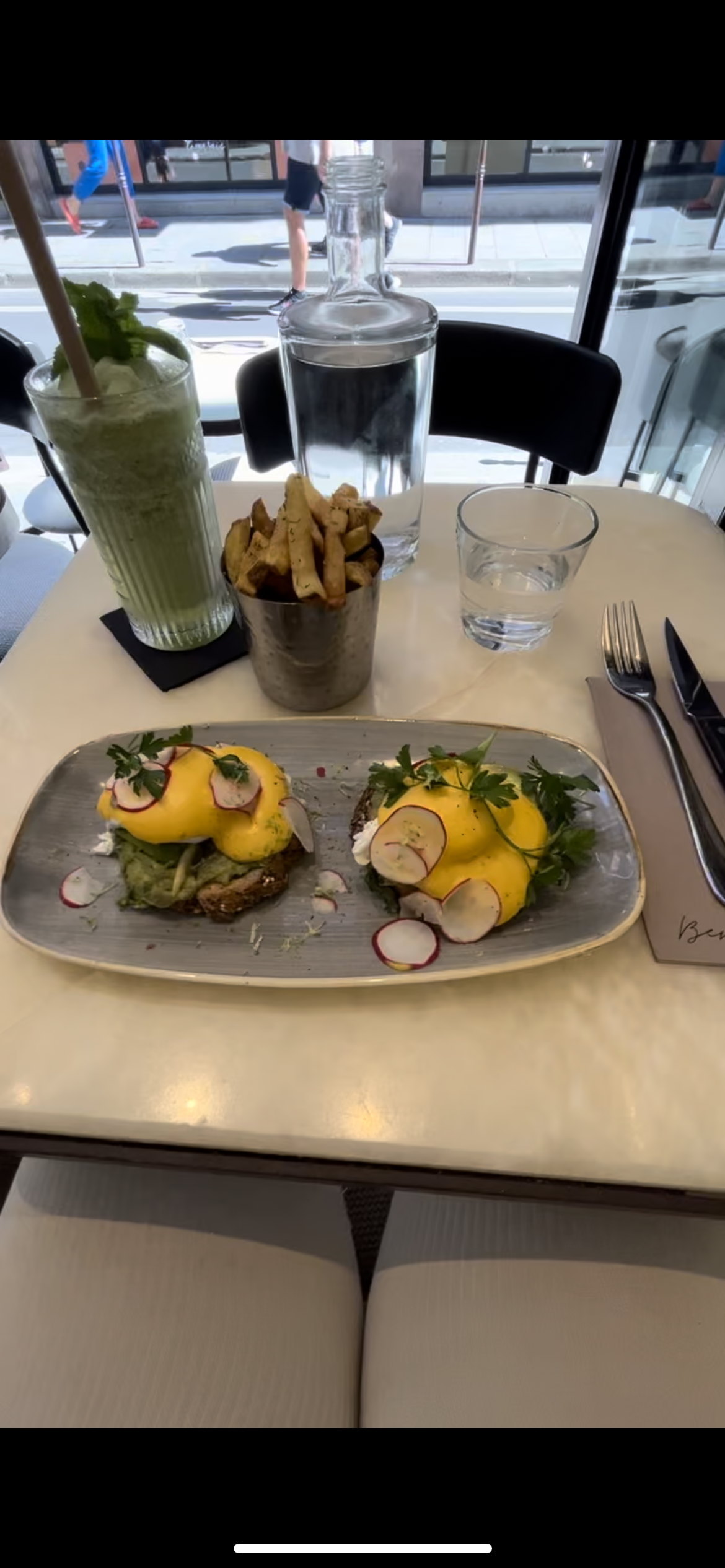 Un sans faute pour Benedict! Une commerçante nous a recommandé le restaurant et nous avons été agréablement surpris: bien que nous arrivions tard pour déjeuner on a attribué une table et servis très chaleureusement. Le personnel est professionnel et sympathique, le service rapide et les plats excellents. Les œufs parfaitement cuits et la sauce excellente. J’ai adoré les patates douces qui accompagnent le plat à merveille. Les prix sont abordables, et le lieu est selon moi superbe. La déco de très bon goût, moderne chic sans en faire trop. C’est un lieu incontournable pour une brunch sur Paris!