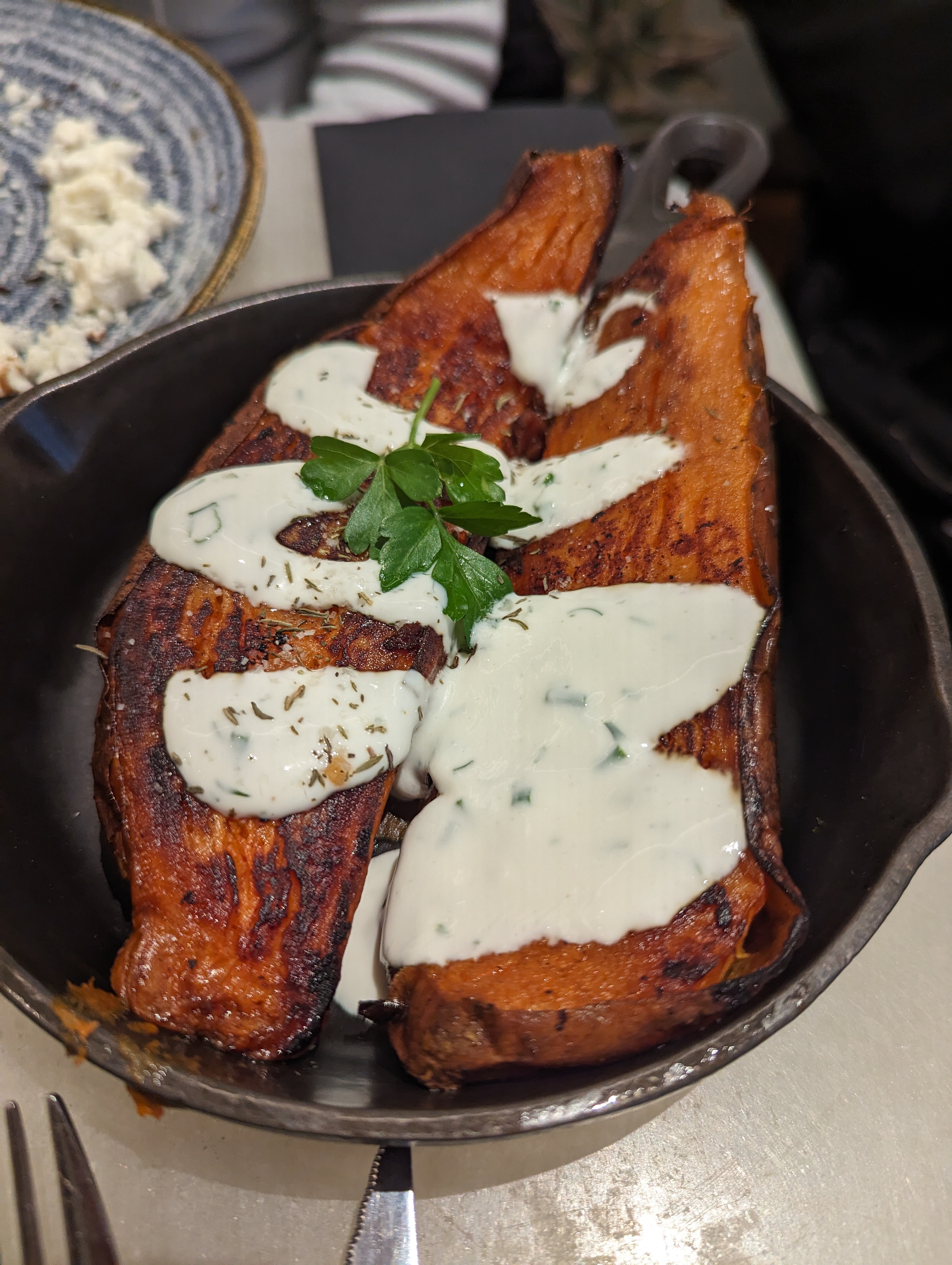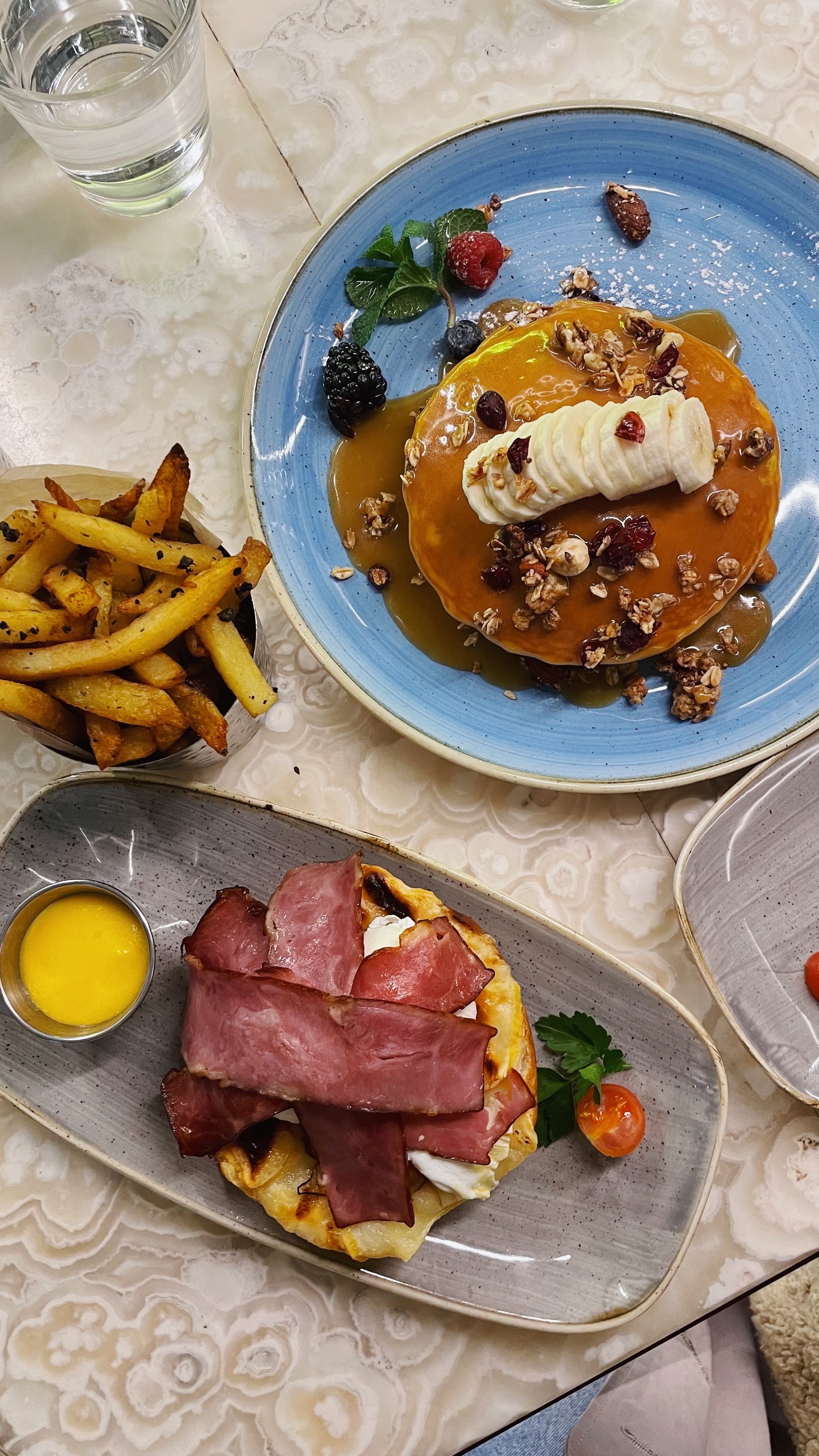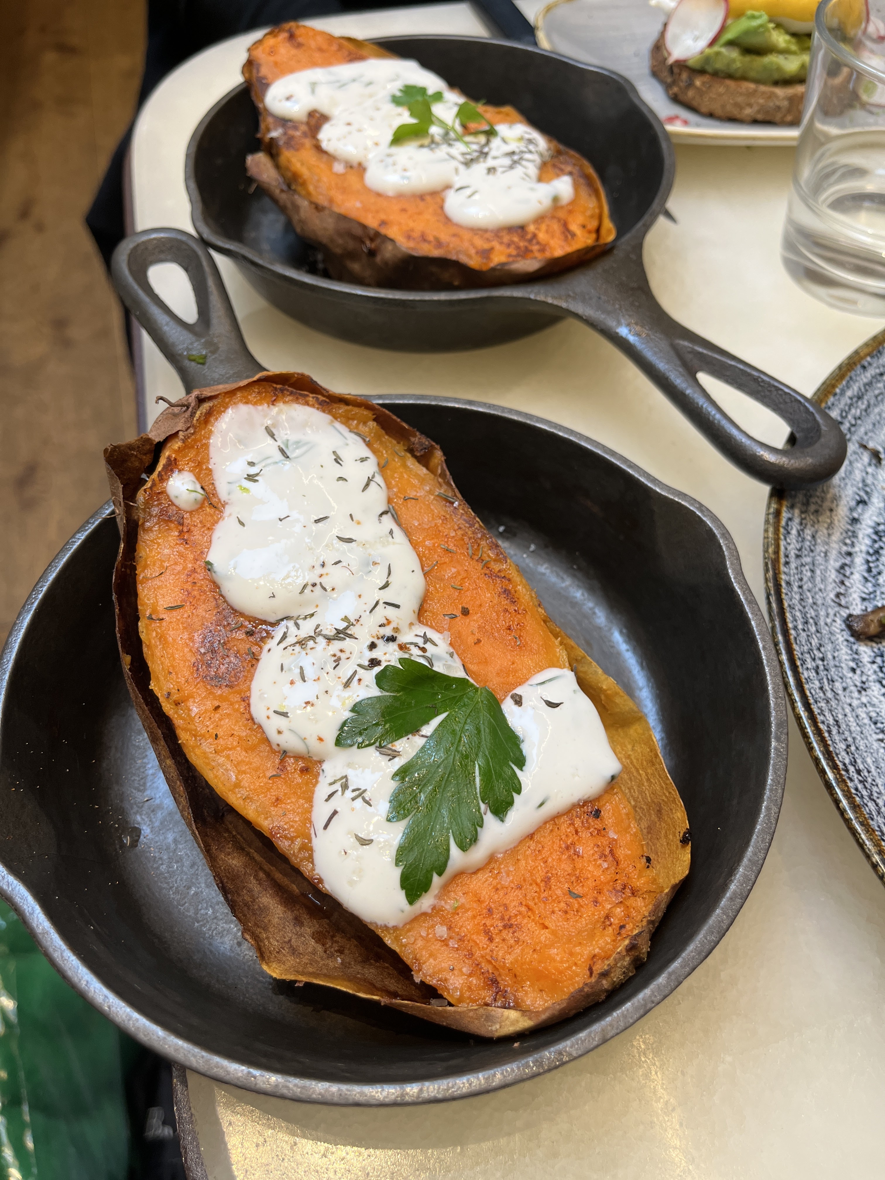 Alors ça me dit recommandé et je ne fais pas déçus vraiment tres bon et j'ai adoré la partie sucrée les pancakes a la banane une tuerie et leur patate douce au four un délice !!! Par contre les.amis un bon conseil !!! Venez avant l'ouverture faites la queue ca le vaut maiq vraiment venez 30 a 15 min avant l'ouverture il y a énormément de monde et beaucoup qui attendent... Il pleuvait ce jour là, donc la file d'attente commençais à l'intérieur tout ce monde qui se disputait la place et qui nous regardait manger (parce que nous étions placé à l'entrée, place à éviter car les courants d'air sont juste horrible..), c'était limite malaisant mais ça ne nous a pas empêcher de déguster nos plats avec engouement !Je recommande lors d'un dimanche pluvieux et lorsque l'on a du temps et pas une faim de loup 😁parce que ce soit être très dure de patienter ahahhah !