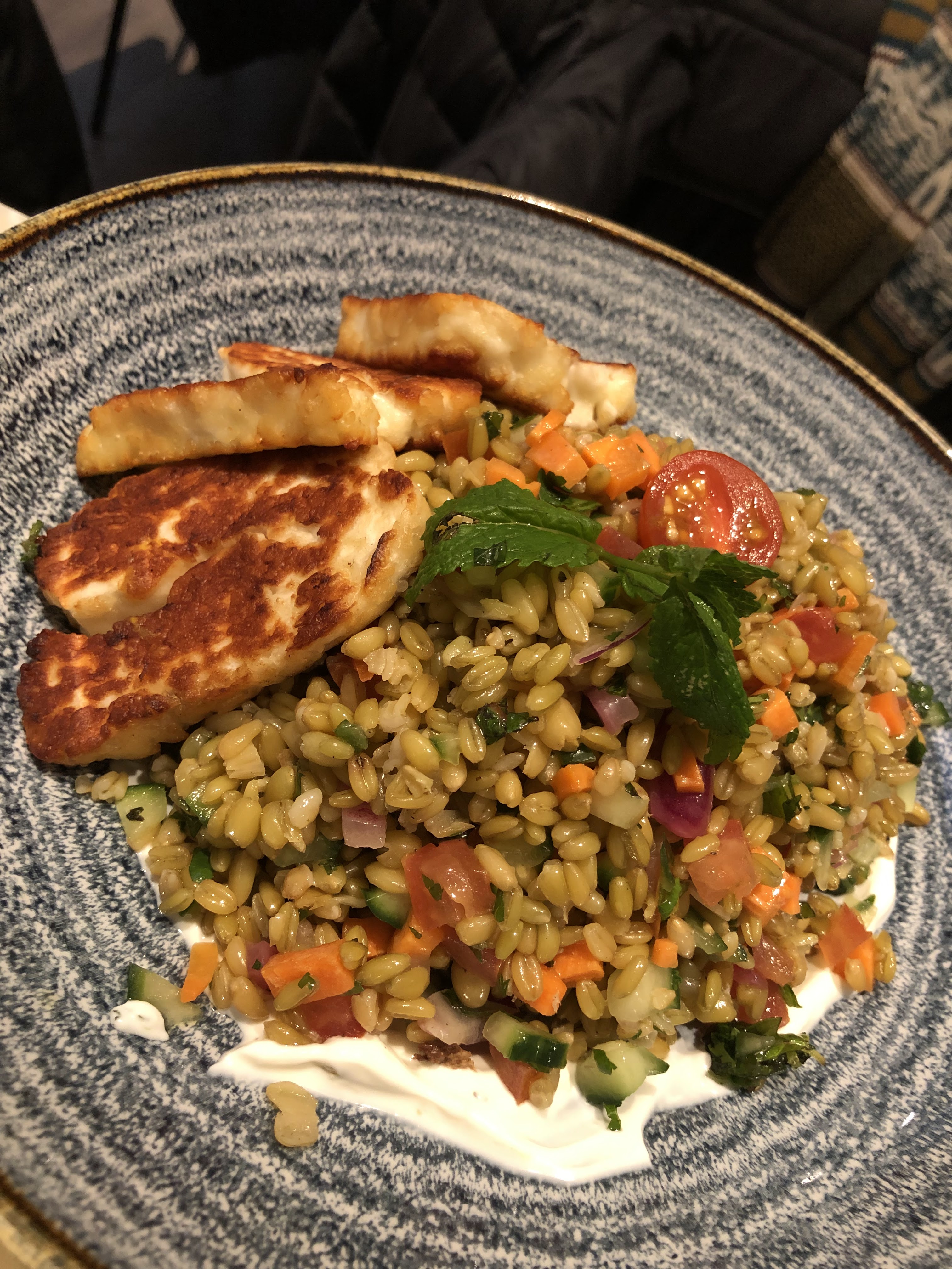 Lieu situé dans un très beau quartier et très fréquenté. Un peu d’attente mais ça en valait le coup. Leurs plats sont non seulement délicieux mais en plus très créatifs! La Salade Freekah (freekah = variété de blé riche en fibres, protéines, vitamines) est un très bon exemple de leur créativité avec des ingrédients qu’on ne retrouve habituellement pas dans des salades ordinaires. En plus d’être un plat riche en fibres et vitamines, il l’est également en saveurs grâce au concombre, à la carotte et la grenade qui donnent un côté croustillant à ce plat. Le yaourt grec et halloumi l’adoucissent avec une texture fondante. J’ai choisi le Reblochon avec des pommes de terre croustillantes, oignons confits, bacon de dinde, un reblochon gratiné aux merveilles et une sauce hollandaise. Un vrai délice ce plat et je remercie d’autant plus le dynamisme des serveurs, un personnel qui rend votre expérience au top!