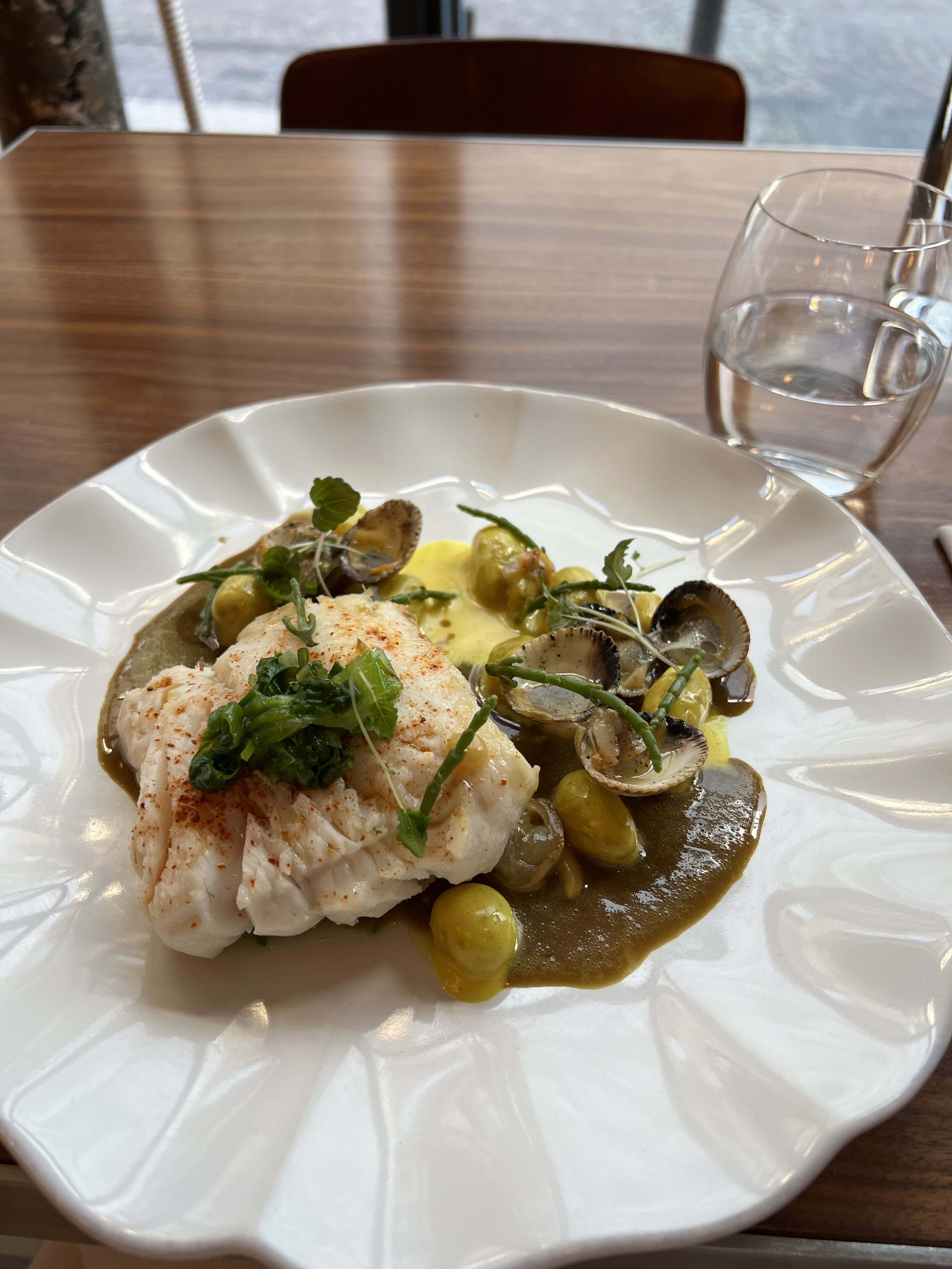 J’ai passé un merveilleux déjeuner ! C’est la deuxième fois que je viens et c’est toujours un délice. Le lieu est super beau, il y a beaucoup de lumière venant de l’extérieur et des grandes fenêtres qui laissent passer le soleil, cadre rafraichissant et agréable pour un déjeuner tout aussi bon. J’ai pris une formule déjeuner, avec une entrée succulente : salade d’haricots verts, œufs de truite, ail noir et autres subtilités, très frais en bouche, plein de saveurs. Le plat du jour : poitrine de veau, avec gnocchis, légumes de saison et sauces très bonnes - la viande était grillée, croustillante et fondante comme j’aime. Un délice. On m’a conseillé un vin très bon, qui allait parfaitement avec les assiettes (de souvenir un rouge d’Espagne, 100% grenache). Et pour finir, la mousse au chocolat tiède avec coeur praliné froid, vraiment très bon. Le service est tout aussi parfait, on se sent à l’aise et bienvenus. Je recommande et j’y retournerai pour sûr… j’ai déjà hâte!