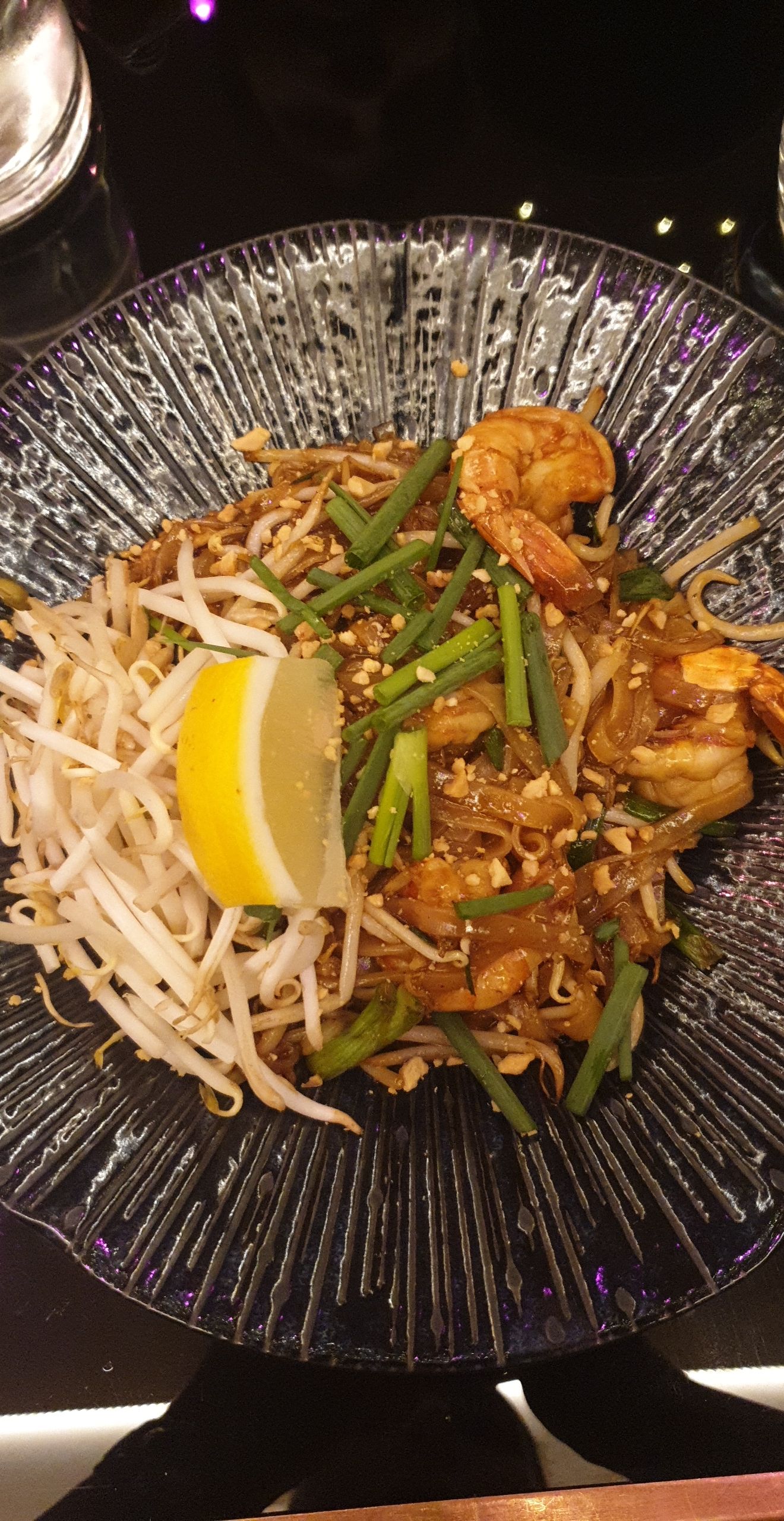 Une bonne déco, à la fois sobre et élégante et ambiance intimiste agréable. Accueil très sympathique et service rapide malgré mon arrivée proche de la fin de service. Jolie présentation de plat. J’ai pris : - un tartare de saumon frais, délicieux, riche en saveur, on sentait vraiment la note de citron et gingembre, le riz grillé moulu, avec la touche de piment! Il manquait seulement un peu de sauce soja, hélas ! Le riz un peu sec. - un PAD THAÏ SEE EW au crevettes, les légumes et crevettes était au rendez- vous avec un bon goût, néanmoins les pâtes étaient sèches, collés et un peu caoutchouteuses. Dommage 😕
