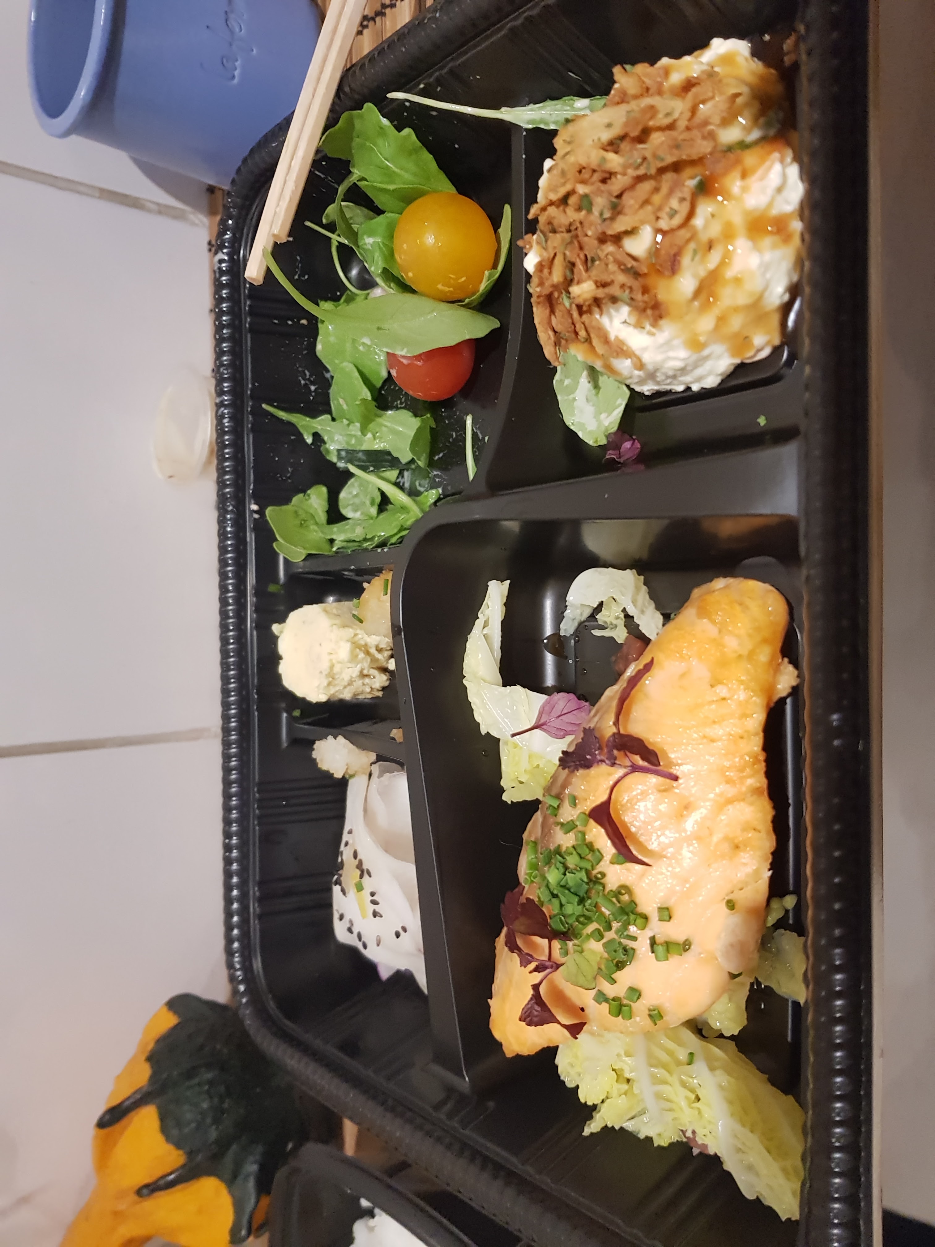 Délicieux déjeuner asiatique. Bon rapport qualité prix. L’inconvénient est la quantité d’emballages plastiques, mais cela fait peut-être partie du concept.