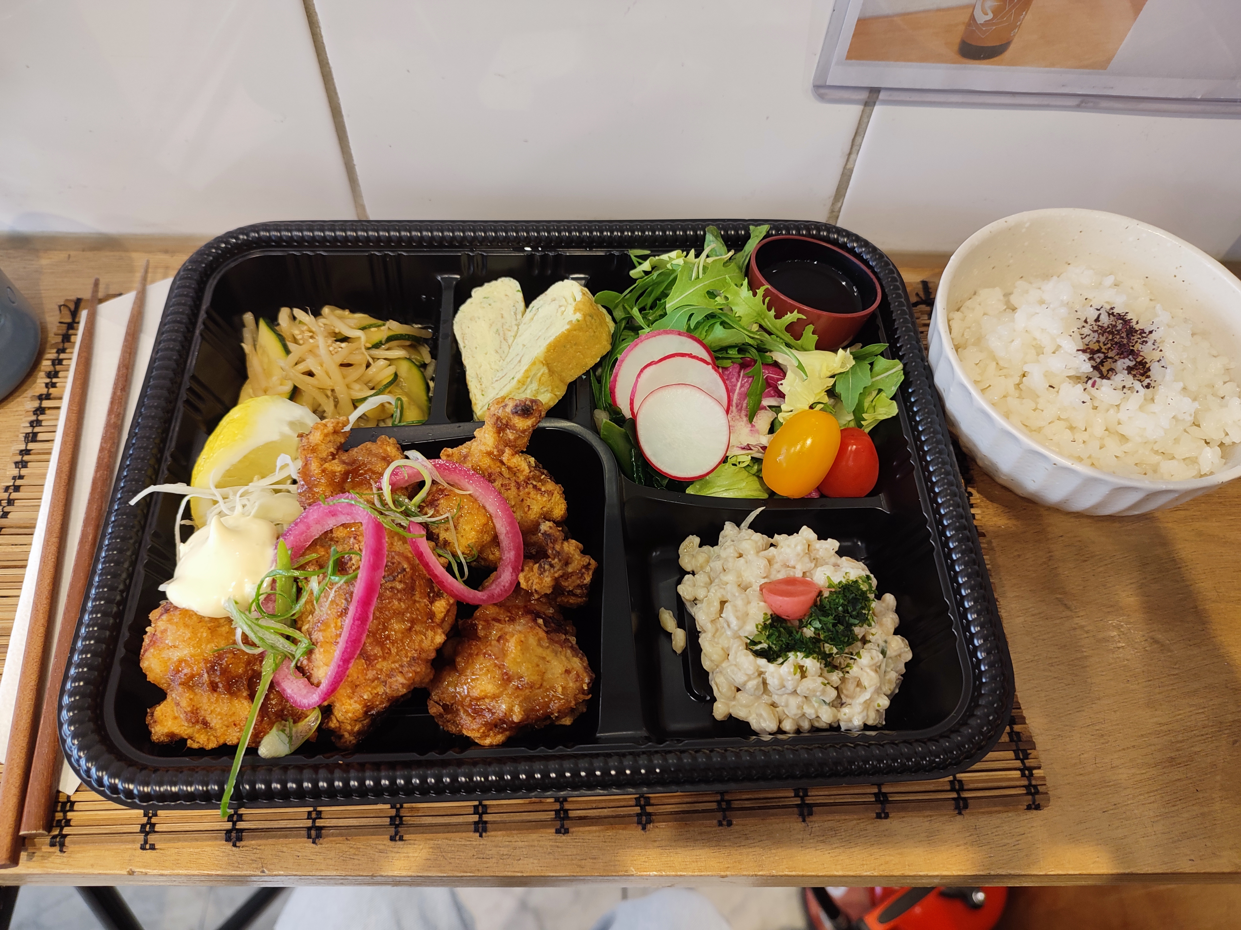 C'était une boîte à lunch vraiment délicieuse. Le riz et les plats d'accompagnement étaient tous délicieux et préparés avec beaucoup de soin. Quand j'attendais mes plats à emporter au magasin, ils m'ont donné du thé chaud, et le service et l'ambiance du magasin étaient agréables. Je reviendrai certainement !