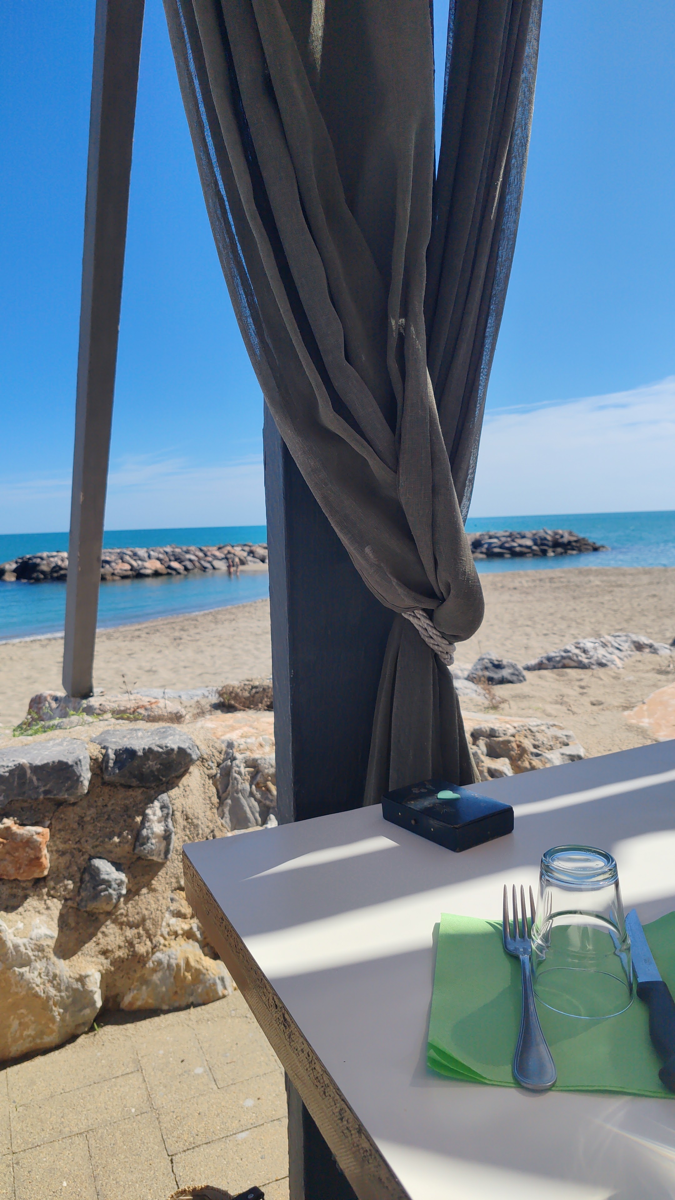 Cadre les pieds dans l'eau bleue de la Méditerranée... Accueil simple et chaleureux 🤗... Assiettes goûteuses ... Régal dans une petite bulle de Bonheur sous le ciel du Sud☀️