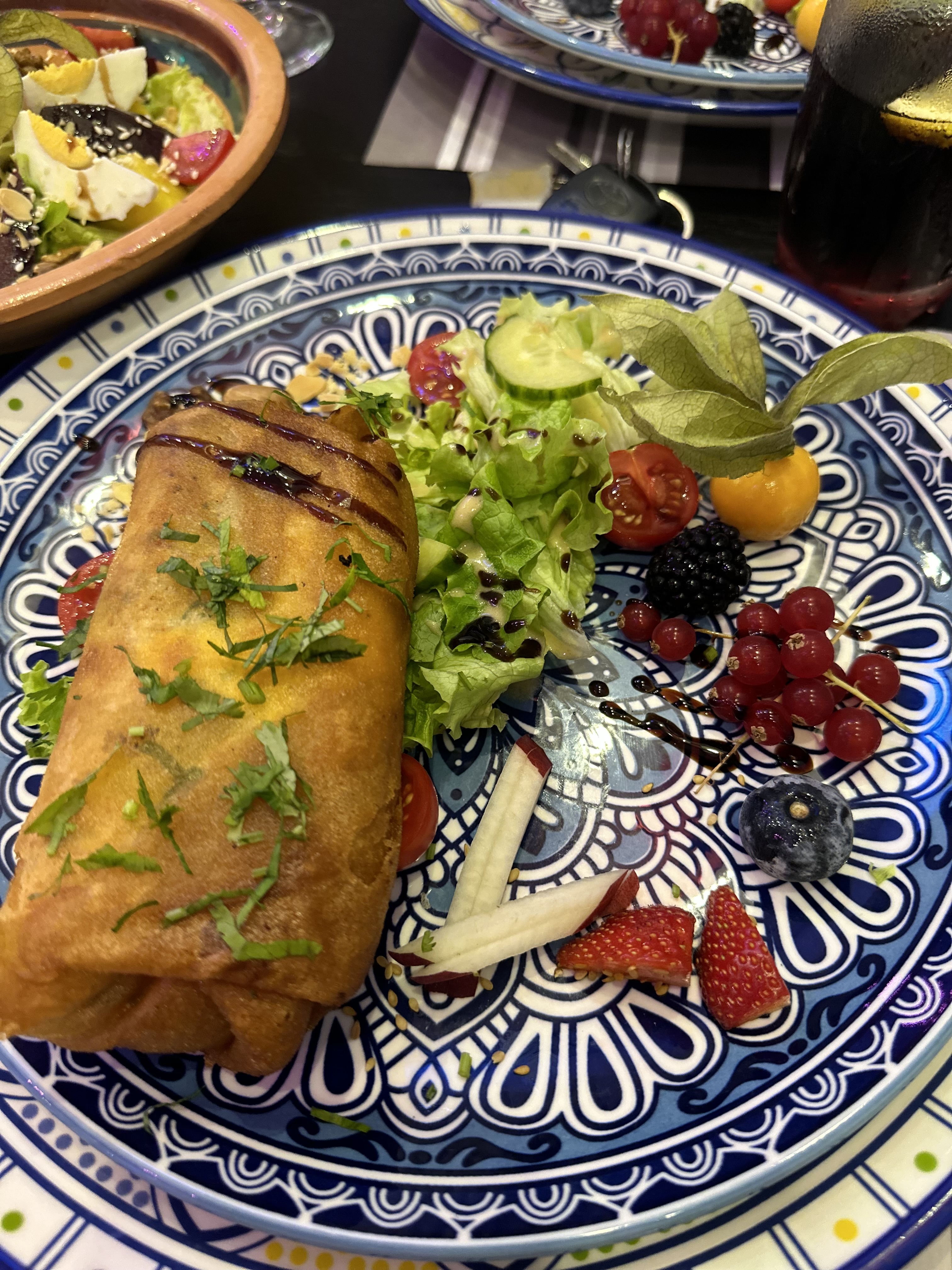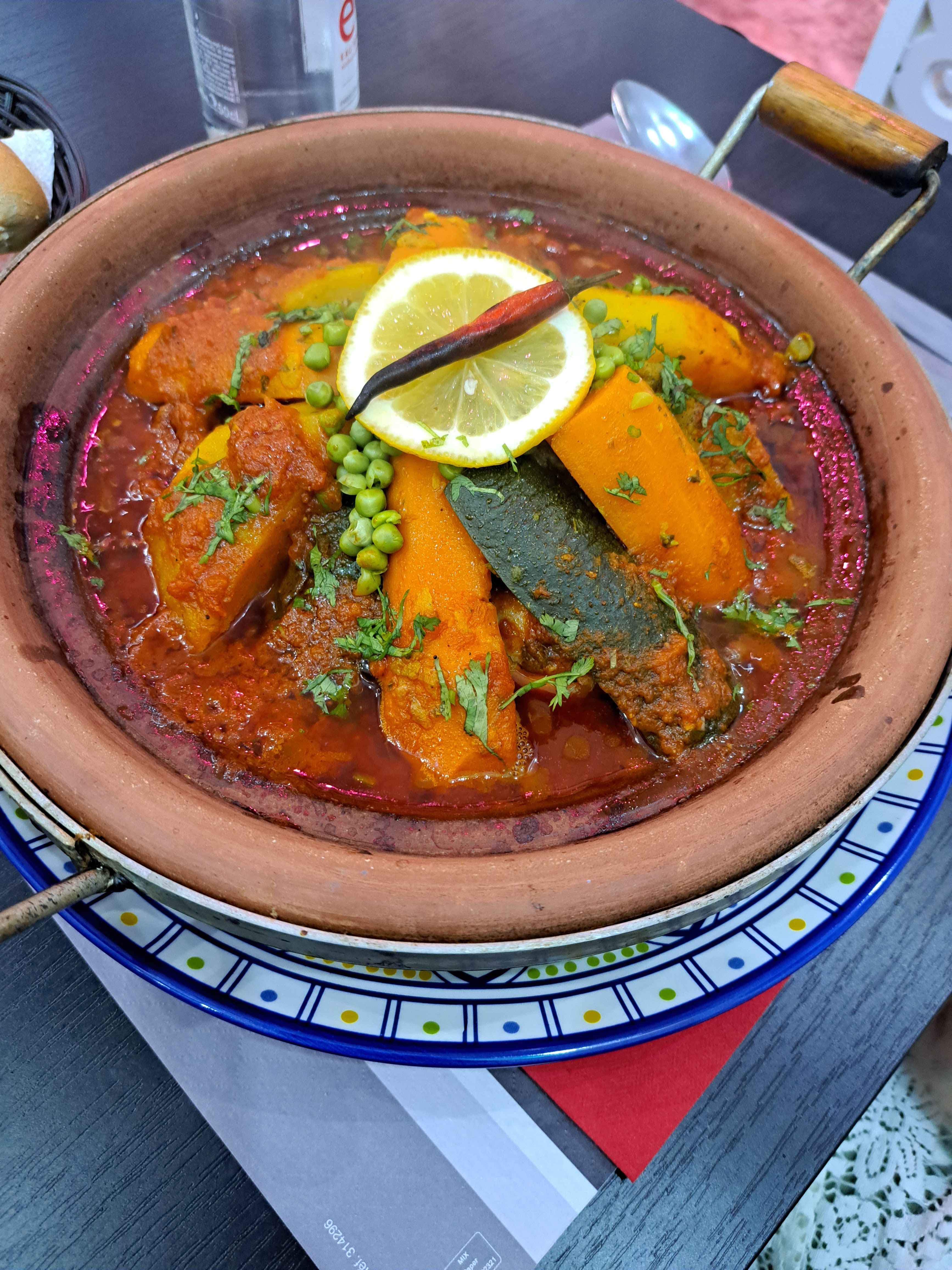 Ambiance agréable , décor magnifique , personnel très accueillant , plats excellents et copieux Seul point d’amélioration : ça aurait été super s’il y avait du vrai pain à tajine (Khobz) au lieu de la baguette 😉 Nous reviendrons 😁