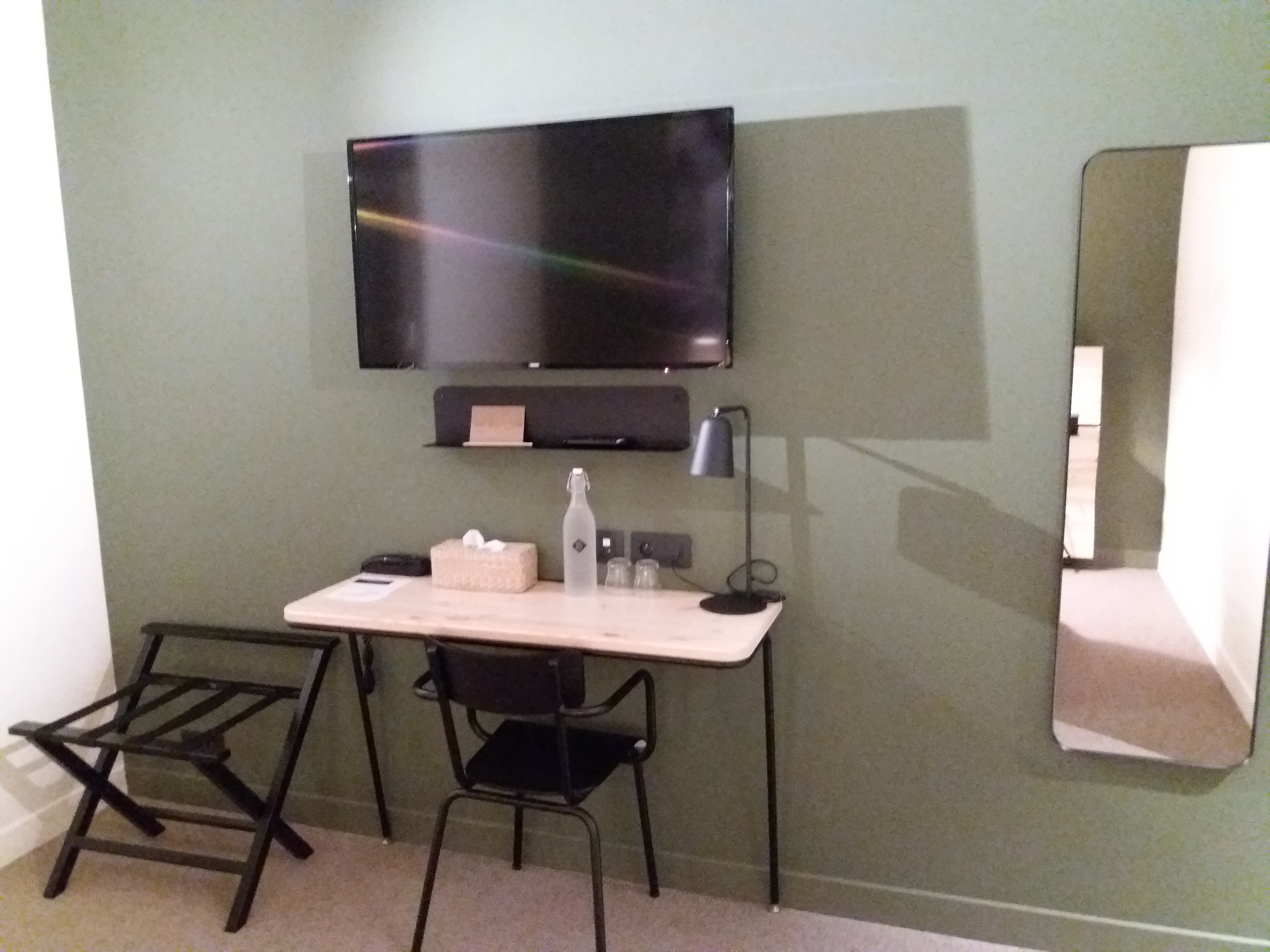 Personnel de nuit pas au point lors de notre séjour. Nous étions beaucoup à être logés dans cet hôtel pour un marriage. Il a attribué notre chambre à un couple qui est donc entré dans la chambre en pleine nuit à 2h50. Assez effrayant de se rêveiller à 2h50 car la lumière s'allume et de voir 2 inconnus dans la chambre qui était vérouillée ! (Une autre couple a également eu une chambre déjà occupé et est entré puis ressorti en voyant les affaires des gens déjà installées dans la chambre). Au check-out, on nous a proposé de nous offrir un café ou un thé en dédommagement mais cela n'avait pas de sens car nous partions quelques minutes après pour le brunch du marriage. Et rien d'autre n'a été proposé pour dédommager le réveil en pleine nuit et la frayeur puis stress générée. Autrement, les chambres sont très sympa, très modernes et propres. Lit confortable (plutôt du côté moelleux que ferme) et très grande douche très agréable. Par contre il faisait trés chaud, même en baissant le thermostat.