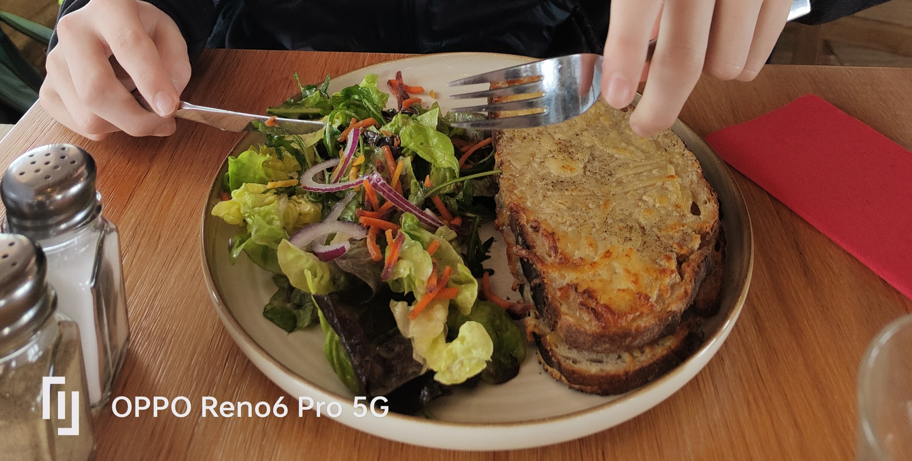 Accueil super et service attentionné. Après une belle marche, kir,œufs mimosa lentilles très bien, croque monsieur et pour mr cochon avec une sauce aux cèpes succulente. Les desserts panacotta et tiramisu excellents. Vraiment très agréable de pouvoir profiter de la terrasse plein soleil dans ces conditions.