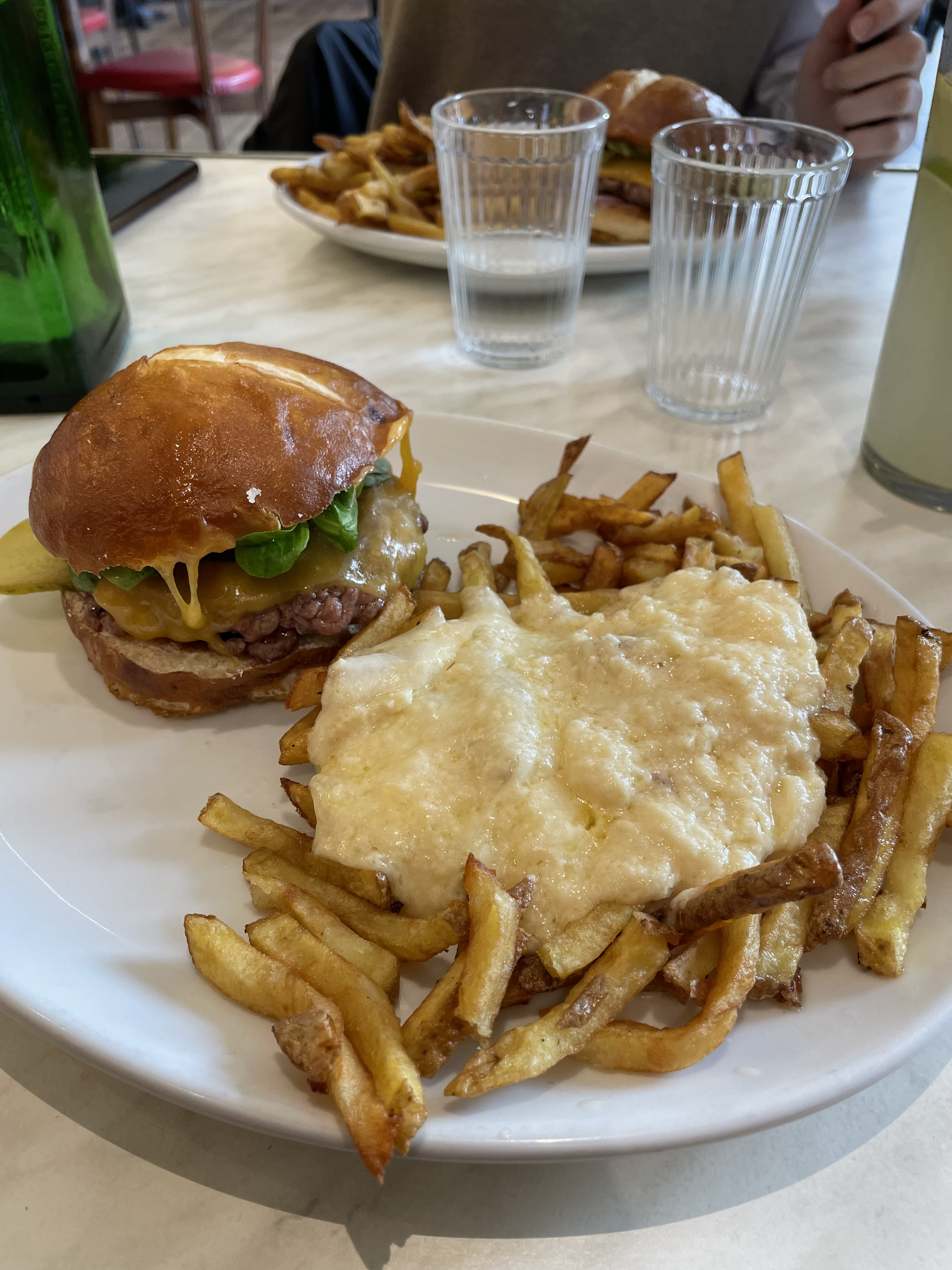 Les frites au munster sont bonnes. Pour les burgers par contre, grosse déception, la garniture est quasi inexistante : une tâche de ketchup histoire de dire, une tranche de cornichon, etc. Du coup c'était plutôt fade tout ça. Attention à ne pas venir trop tard car même avant 13h le personnel est débordé, et le lieu est bruyant.