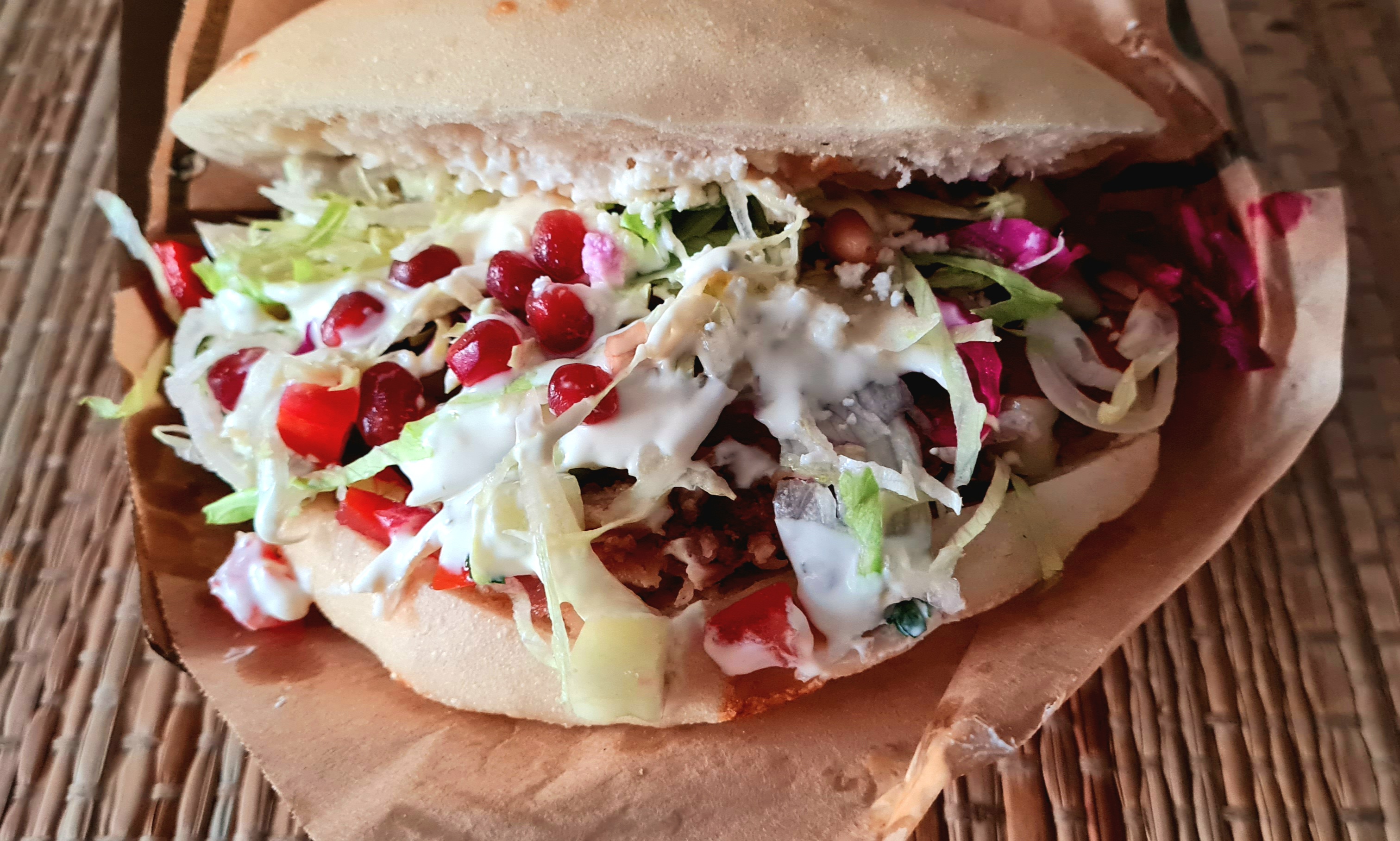 Au top la pita 100% veggie… non plus sérieusement où est passée la viande? J’ai dû creuser pour la trouver et je la cherche encore
