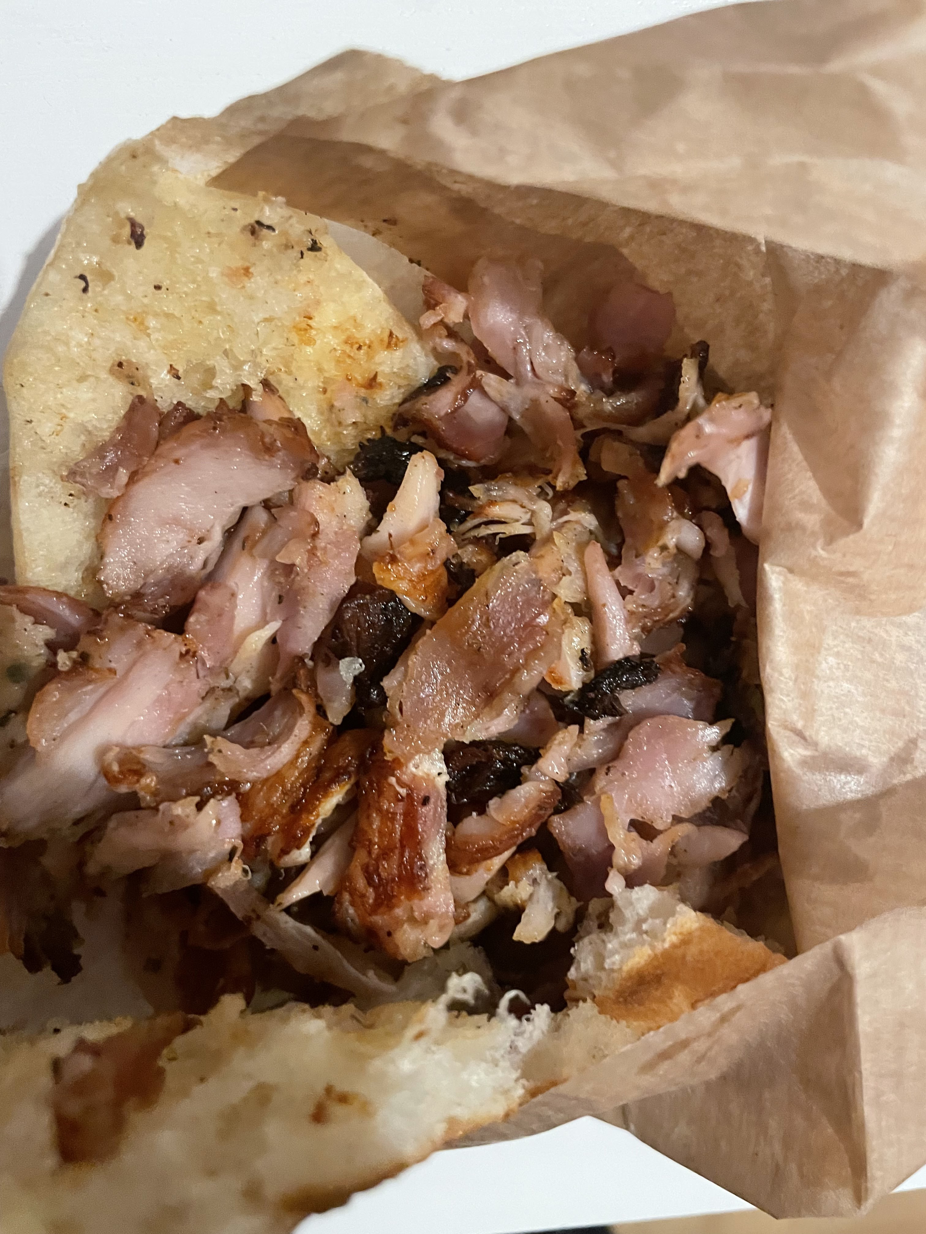 La viande est prédécoupés de la broche vraiment pas le même goût complètement réchauffé dommage de faire cela !! Ce sont des méthodes de kebab rue St Denis a paris vraiment pas bon . En plus la viande est haché comme si c'était un hachi parmentier. Plus jamais !!!!