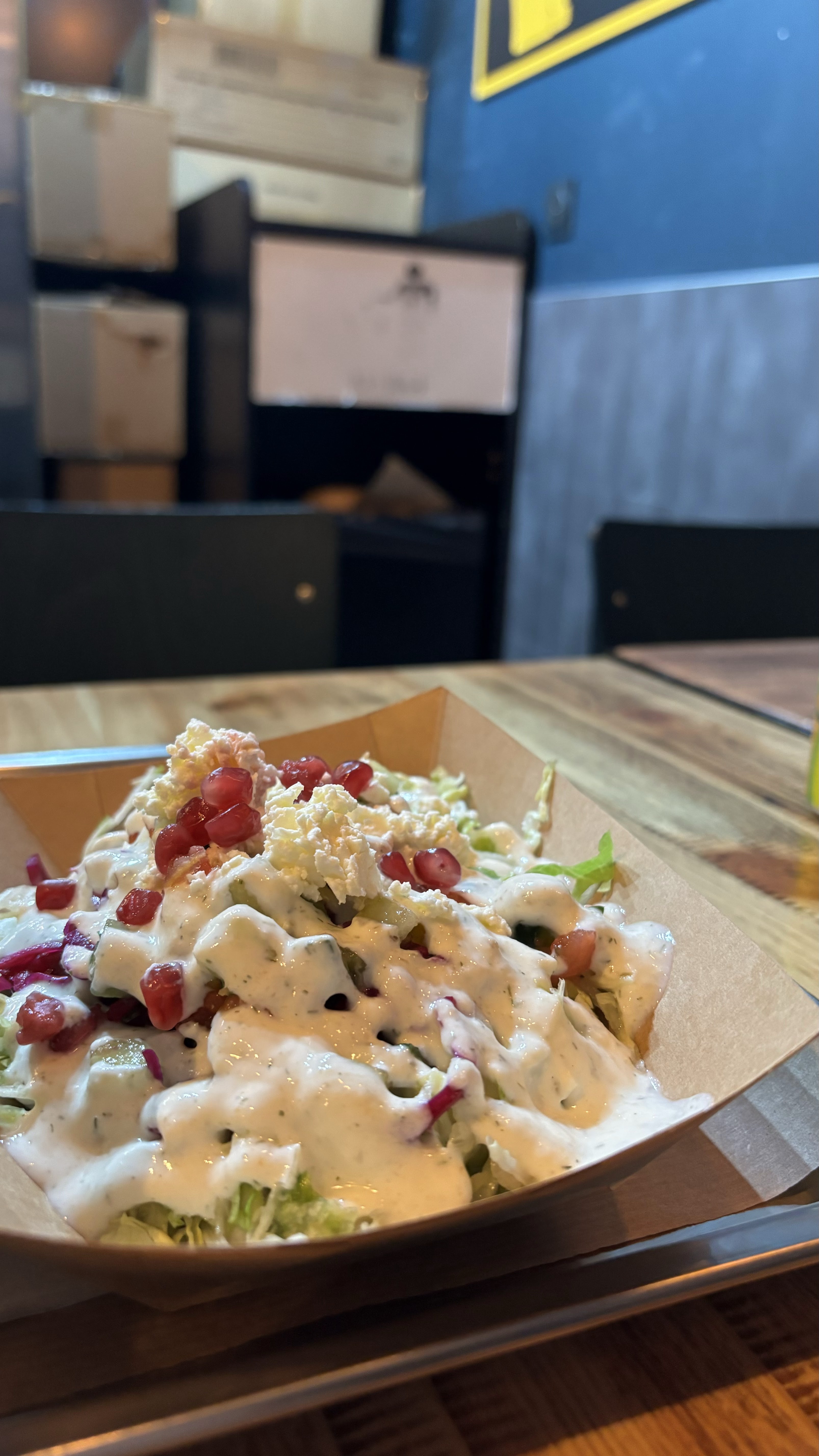 Super cool, à tester au moins une fois ! Les ingrédients sont plutôt originaux, cela surprend agréablement en bouche. On peut par exemple retrouver de la grenade. Les salades en accompagnement sont très sympa mais rappelle un peu trop le plat à côté à mon goût. Néanmoins cela change des frites et habituels accompagnement (à noter que ces accompagnement sont également disponible).