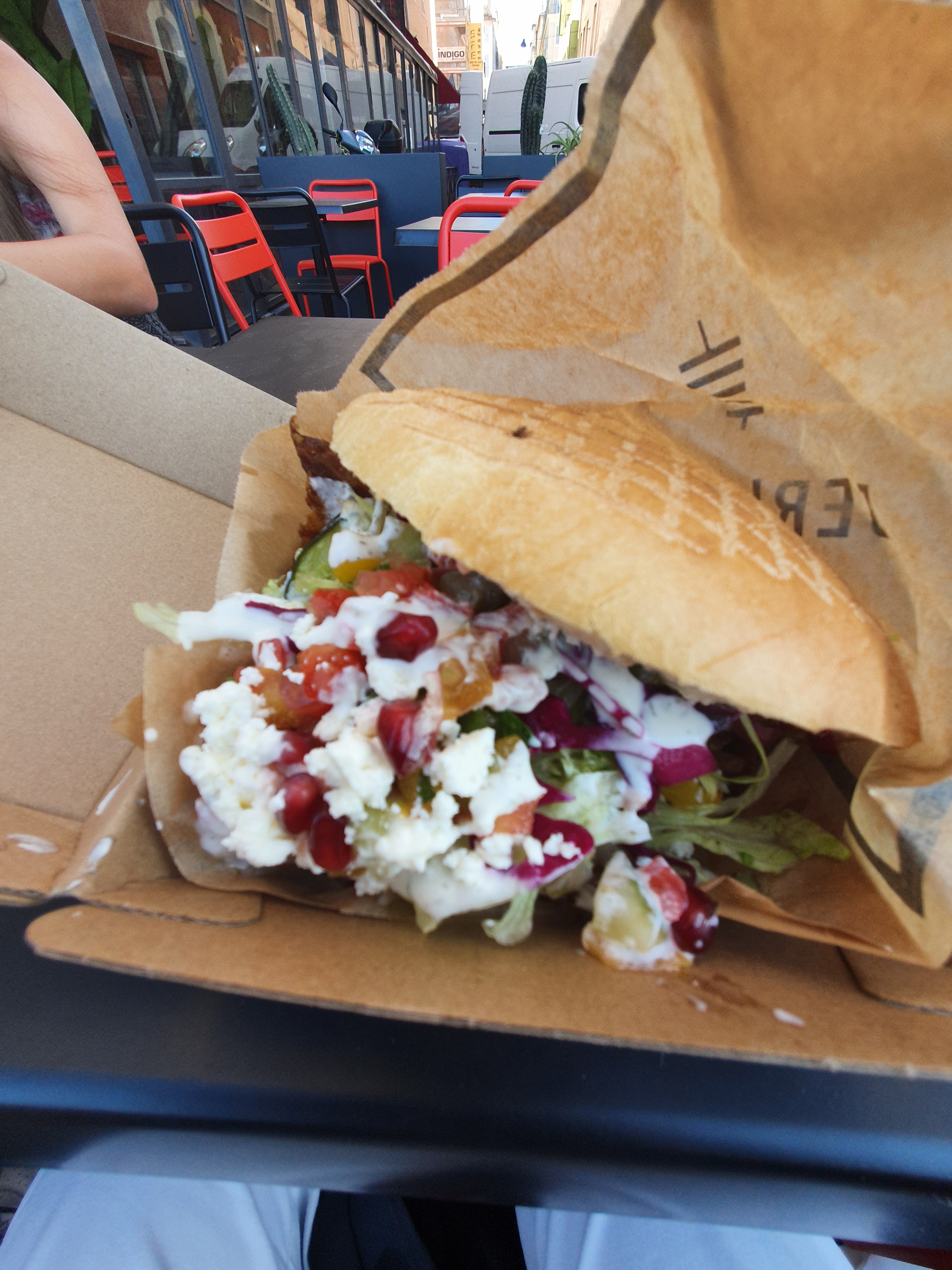 Meilleur restauration de Marseille, le pain pita avec ces crudités passe super bien en été. Au top