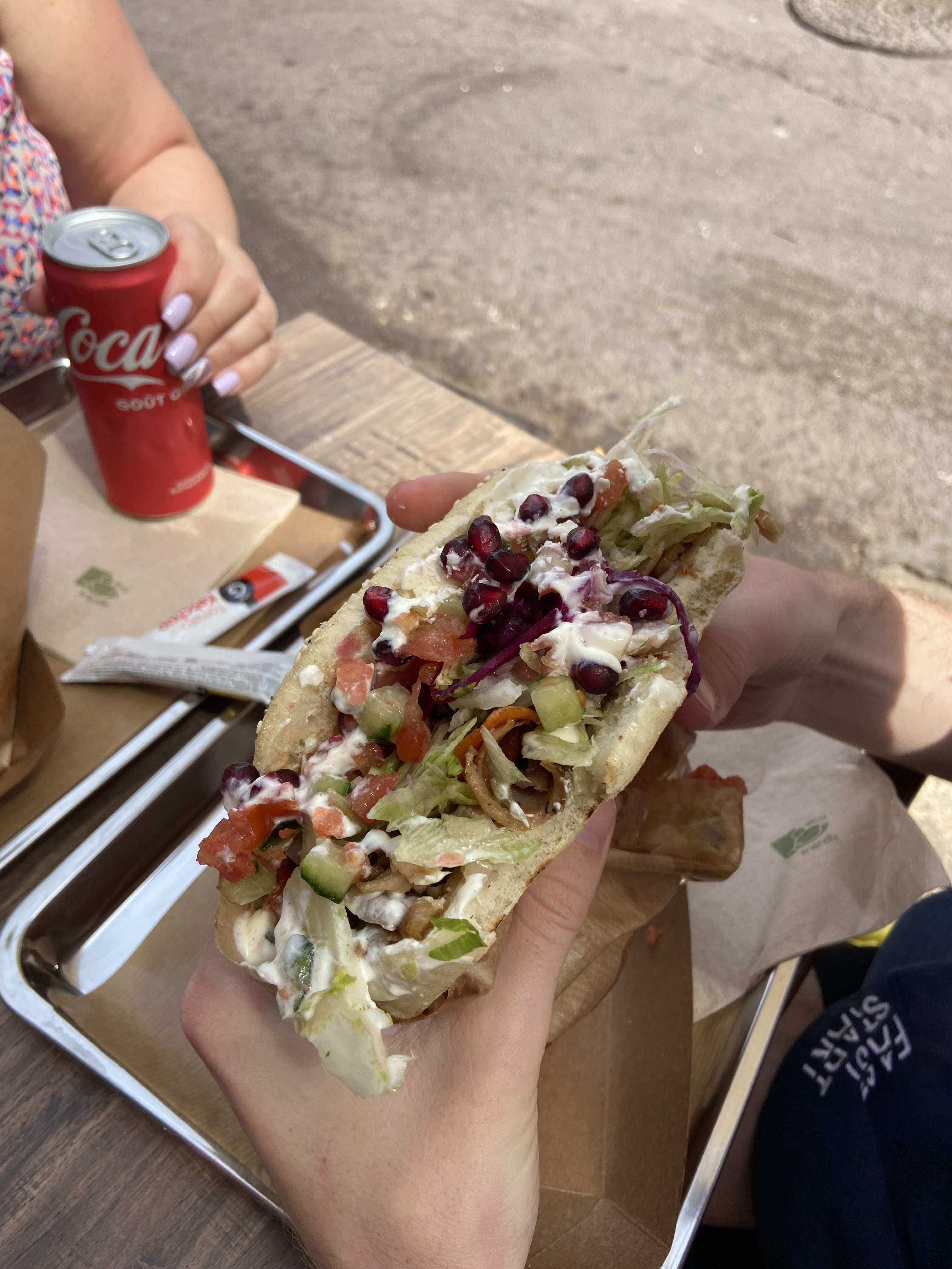 Pour un week-end à marseille nous sommes venus 2 fois . Ça change totalement du kebab classique avec un pain délicieux et des légumes à l'intérieur . Un très bon assaisonnement pour ce sandwich. Je recommande cette adresse...pile sur le vieux port