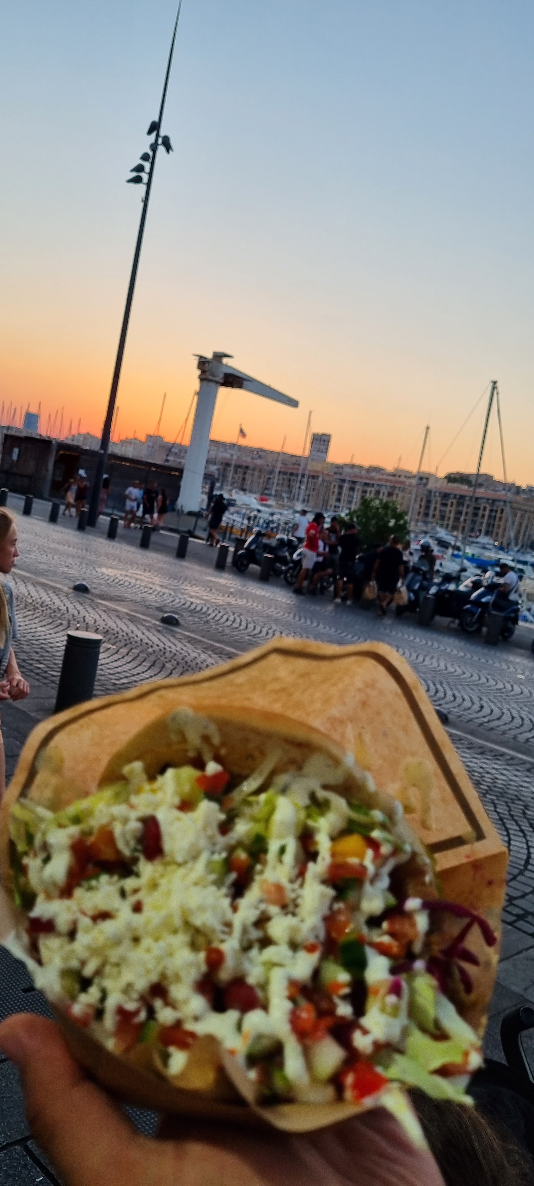 Belle découverte sur le port de Marseille. Des wraps et des pitas traditionnels. Par contre, un accueil glacial, sans un mot amical ni courtois.